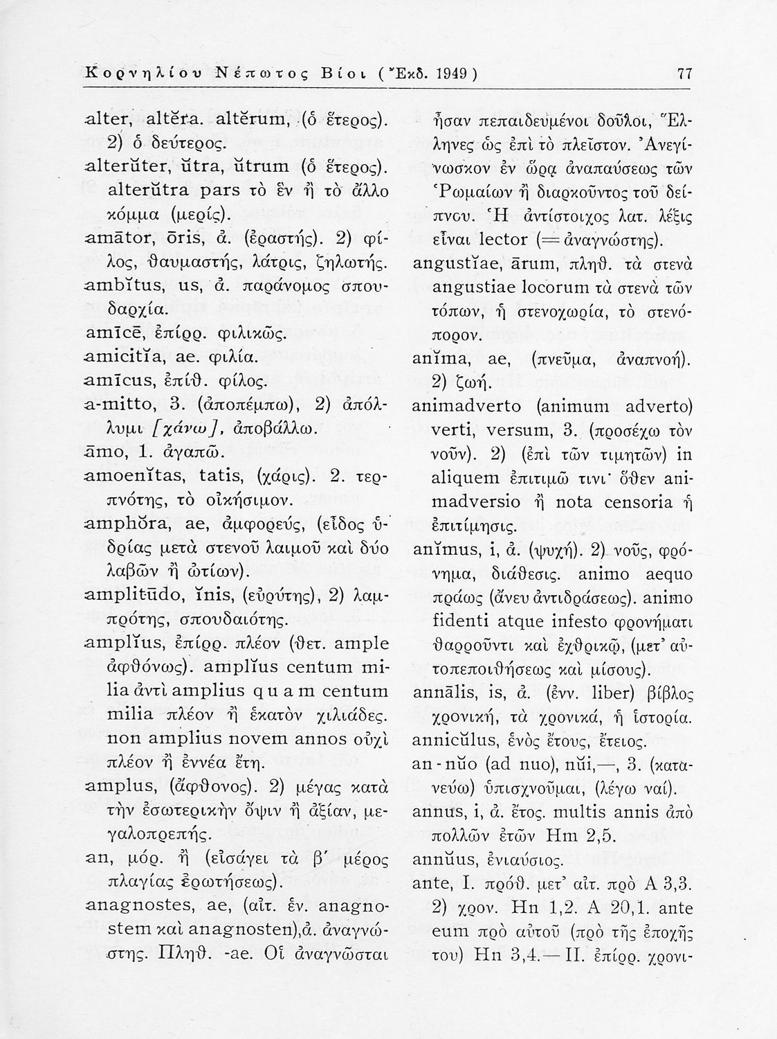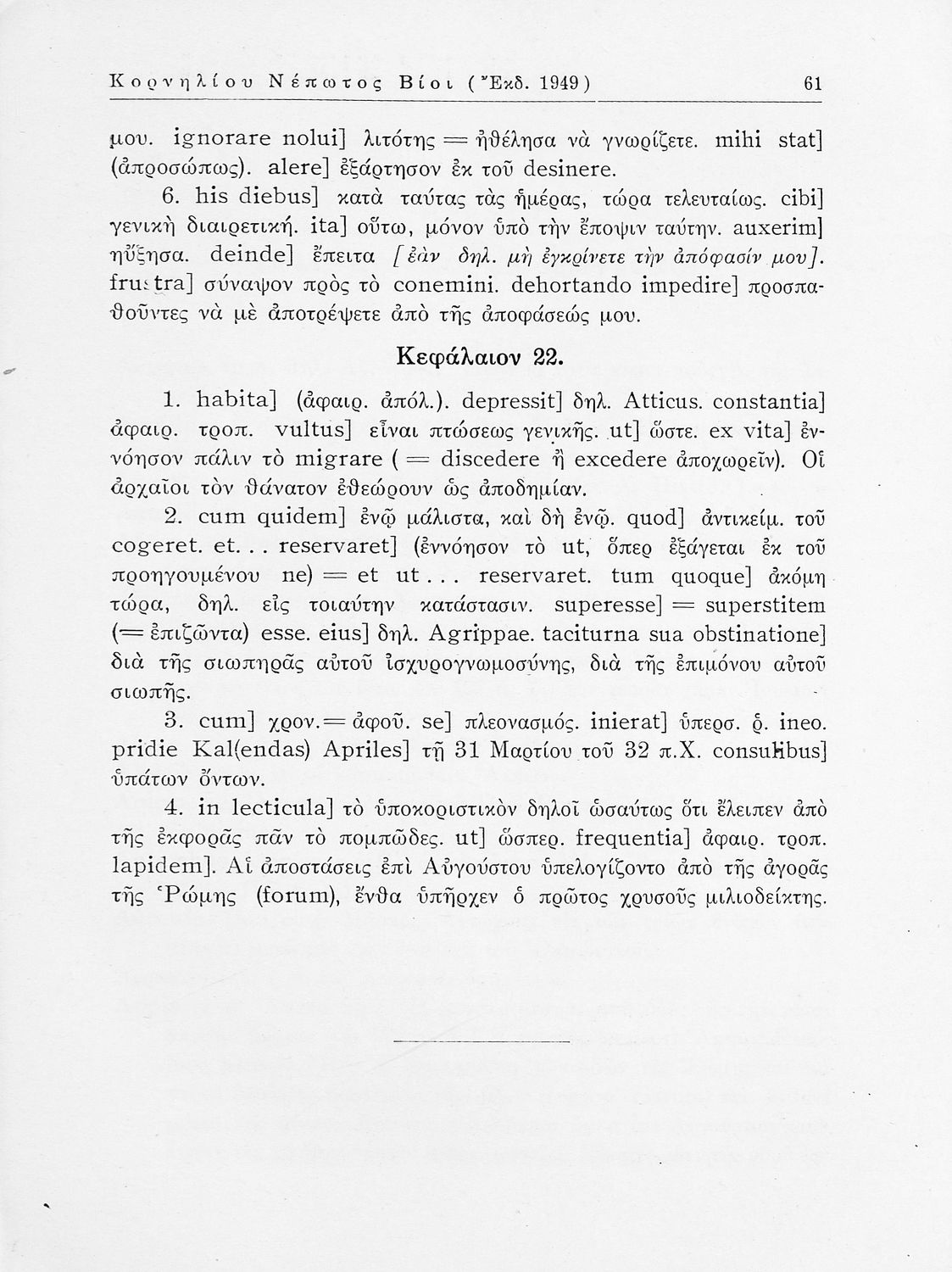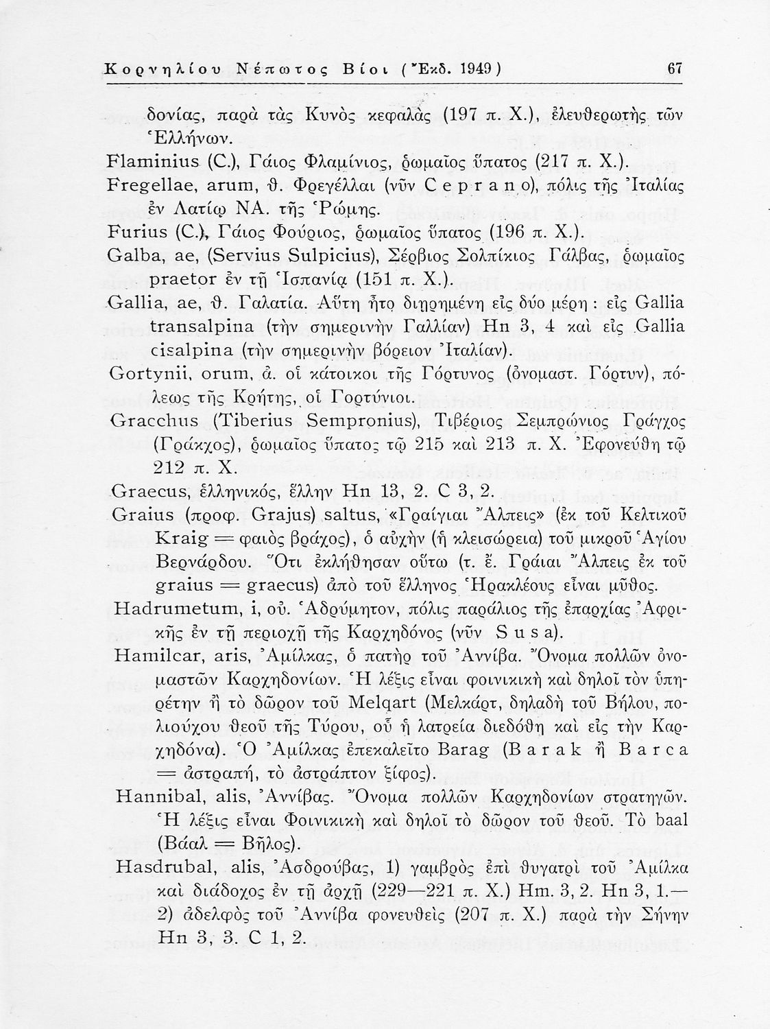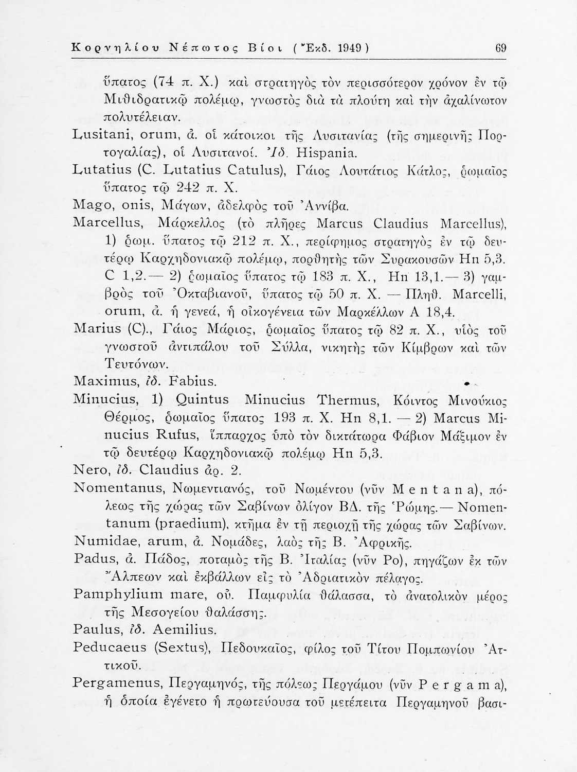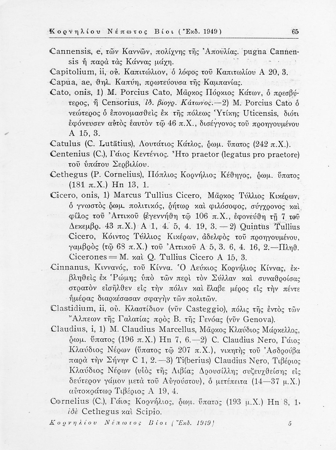 Σχολικό εγχειρίδιο Λατινικών Δ΄ Γυμνασίου που περιέχει σύντομο βιογραφικό σημείωμα του Νέπωτα, αποσπάσματα από τα έργα Αμίλκας, Αννίβας, Κάτων και Αττικός, ιστορικό και γεωγραφικό πίνακα και λεξιλόγιο. Ο συγγραφέας ήταν καθηγητής της Λατινικής Φιλολογίας στο Πανεπιστήμιο Αθηνών
