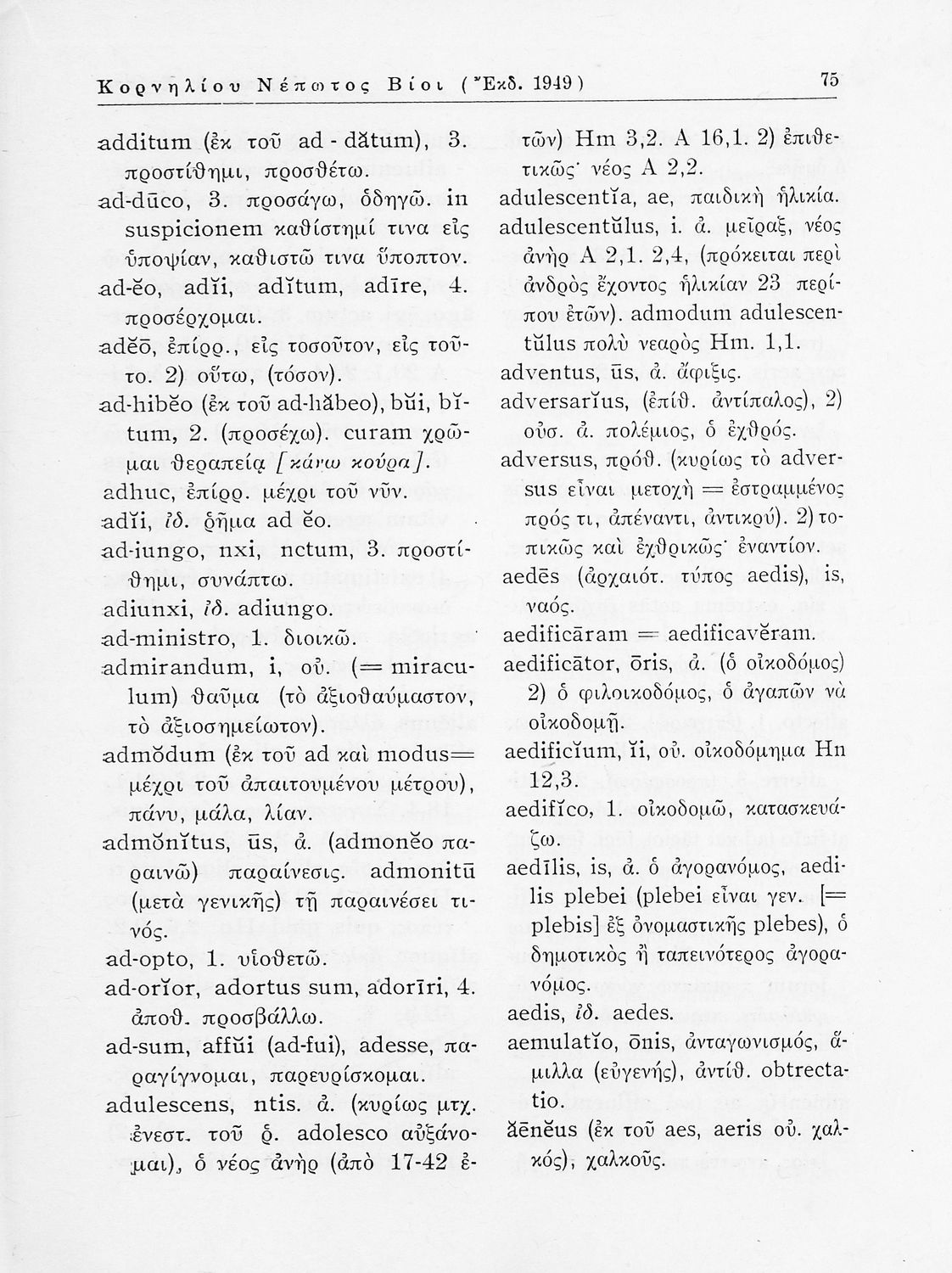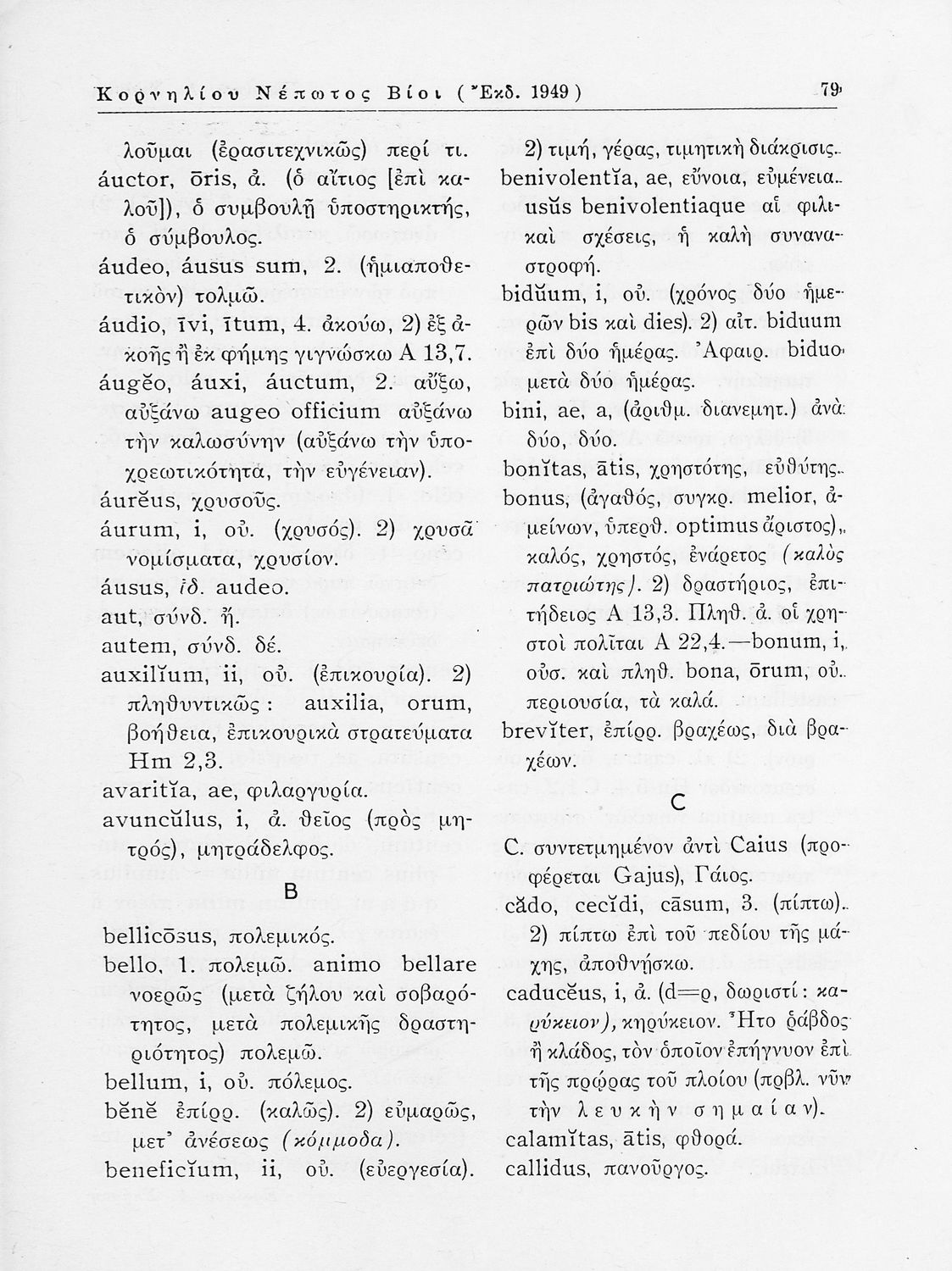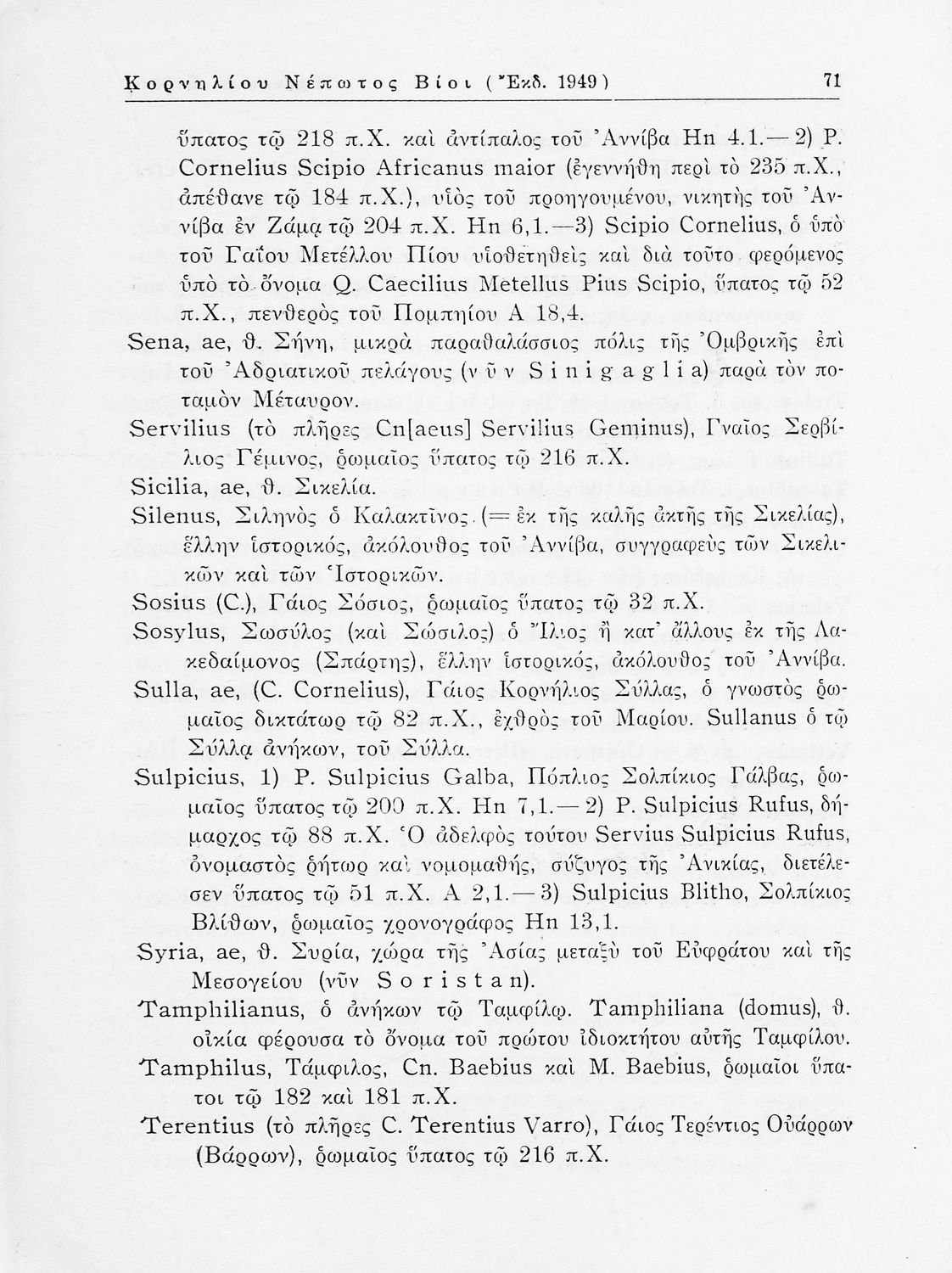 LDR 01336 2200193 4500 035 ## _a01-17355 040 ## _aΙνστιτούτο Εκπαιδευτικής Πολιτικής 041 ## _ael 100 ## _aΚορνήλιος Νέπως (Cornelius Nepos) _aΕρρίκος Α. Σκάσσης (σχόλια) 110 ## _a17355 245 0# _aΚορνηλίου Νέπωτος Βίοι (Εκλογαί) δια την Δ΄ τάξιν των Γυμνασίων παλαιού τύπου 260 ## _aΑθήνα _bΟργανισμός Εκδόσεως Σχολικών Βιβλίων _c1949 300 ## _a134 _c20 520 ## _aΣχολικό εγχειρίδιο Λατινικών Δ΄ Γυμνασίου που περιέχει σύντομο βιογραφικό σημείωμα του Νέπωτα, αποσπάσματα από τα έργα Αμίλκας, Αννίβας, Κάτων και Αττικός, ιστορικό και γεωγραφικό πίνακα και λεξιλόγιο. Ο συγγραφέας ήταν καθηγητής της Λατινικής Φιλολογίας στο Πανεπιστήμιο Αθηνών 521 ## _aΔ' Γυμνασίου παλαιού τύπου 522 ## _aΕλλάδα 546 ## _aΚαθαρεύουσα 563 ## _aΜαλακό Εξώφυλλο 650 #4 _aAtticus _aCato _aHamilcar _aHannibal