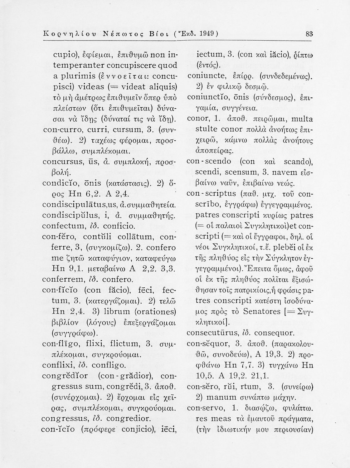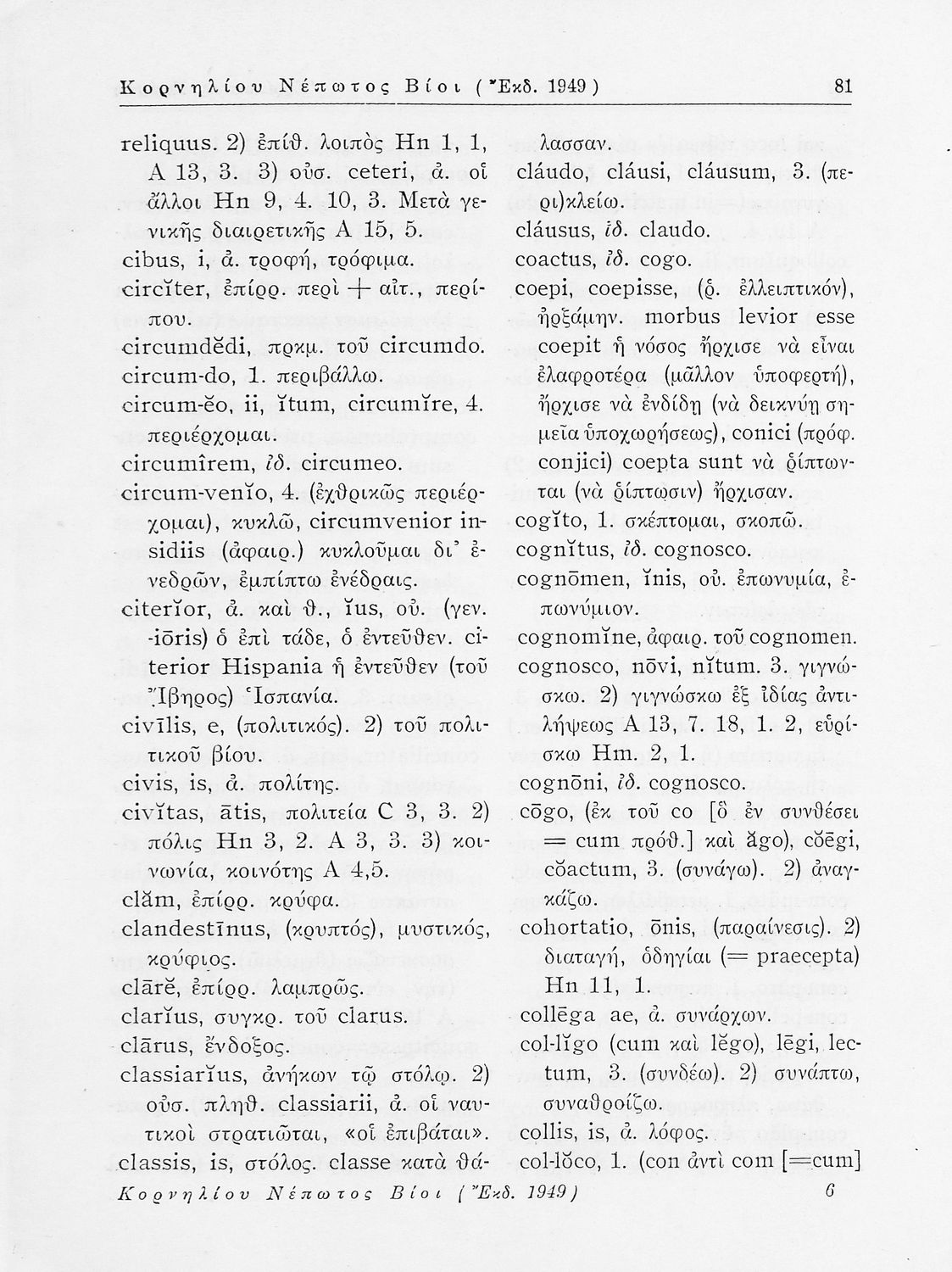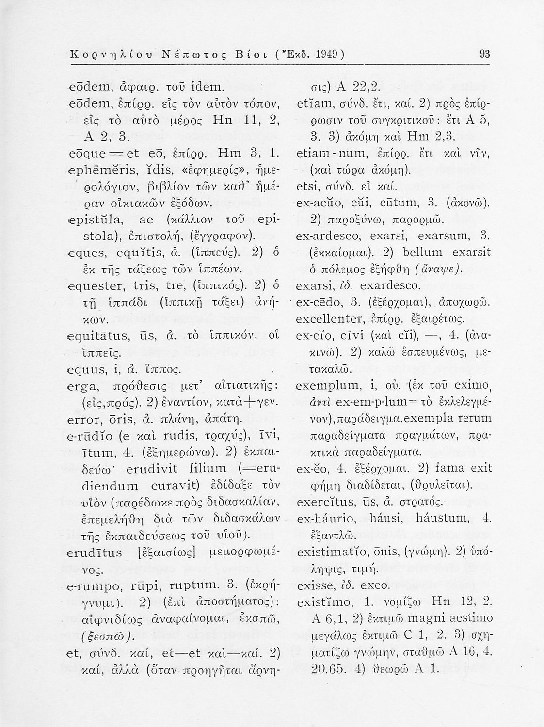 LDR 01336 2200193 4500 035 ## _a01-17355 040 ## _aΙνστιτούτο Εκπαιδευτικής Πολιτικής 041 ## _ael 100 ## _aΚορνήλιος Νέπως (Cornelius Nepos) _aΕρρίκος Α. Σκάσσης (σχόλια) 110 ## _a17355 245 0# _aΚορνηλίου Νέπωτος Βίοι (Εκλογαί) δια την Δ΄ τάξιν των Γυμνασίων παλαιού τύπου 260 ## _aΑθήνα _bΟργανισμός Εκδόσεως Σχολικών Βιβλίων _c1949 300 ## _a134 _c20 520 ## _aΣχολικό εγχειρίδιο Λατινικών Δ΄ Γυμνασίου που περιέχει σύντομο βιογραφικό σημείωμα του Νέπωτα, αποσπάσματα από τα έργα Αμίλκας, Αννίβας, Κάτων και Αττικός, ιστορικό και γεωγραφικό πίνακα και λεξιλόγιο. Ο συγγραφέας ήταν καθηγητής της Λατινικής Φιλολογίας στο Πανεπιστήμιο Αθηνών 521 ## _aΔ' Γυμνασίου παλαιού τύπου 522 ## _aΕλλάδα 546 ## _aΚαθαρεύουσα 563 ## _aΜαλακό Εξώφυλλο 650 #4 _aAtticus _aCato _aHamilcar _aHannibal