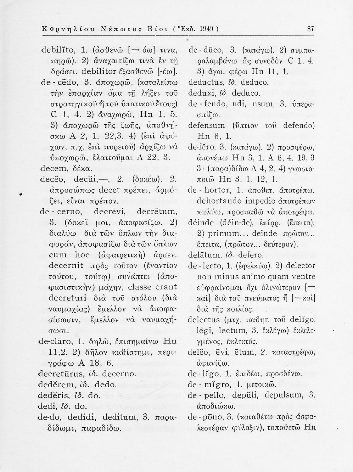 Σχολικό εγχειρίδιο Λατινικών Δ΄ Γυμνασίου που περιέχει σύντομο βιογραφικό σημείωμα του Νέπωτα, αποσπάσματα από τα έργα Αμίλκας, Αννίβας, Κάτων και Αττικός, ιστορικό και γεωγραφικό πίνακα και λεξιλόγιο. Ο συγγραφέας ήταν καθηγητής της Λατινικής Φιλολογίας στο Πανεπιστήμιο Αθηνών