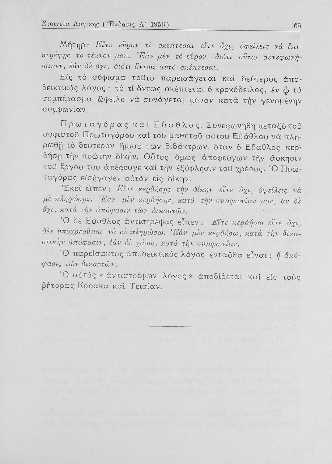 Σχολικό εγχειρίδιο Λογικής που χωρίζεται σε τρία τμήματα: την τυπική λογική, την μεθοδολογία και τη γνωσιολογία. Περιέχει ασκήσεις λογικής.