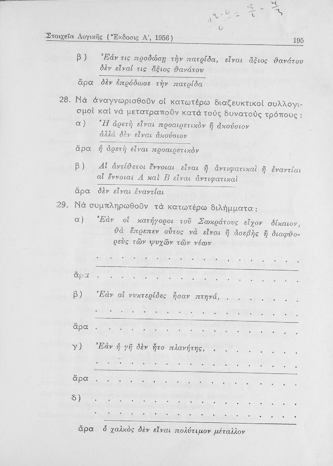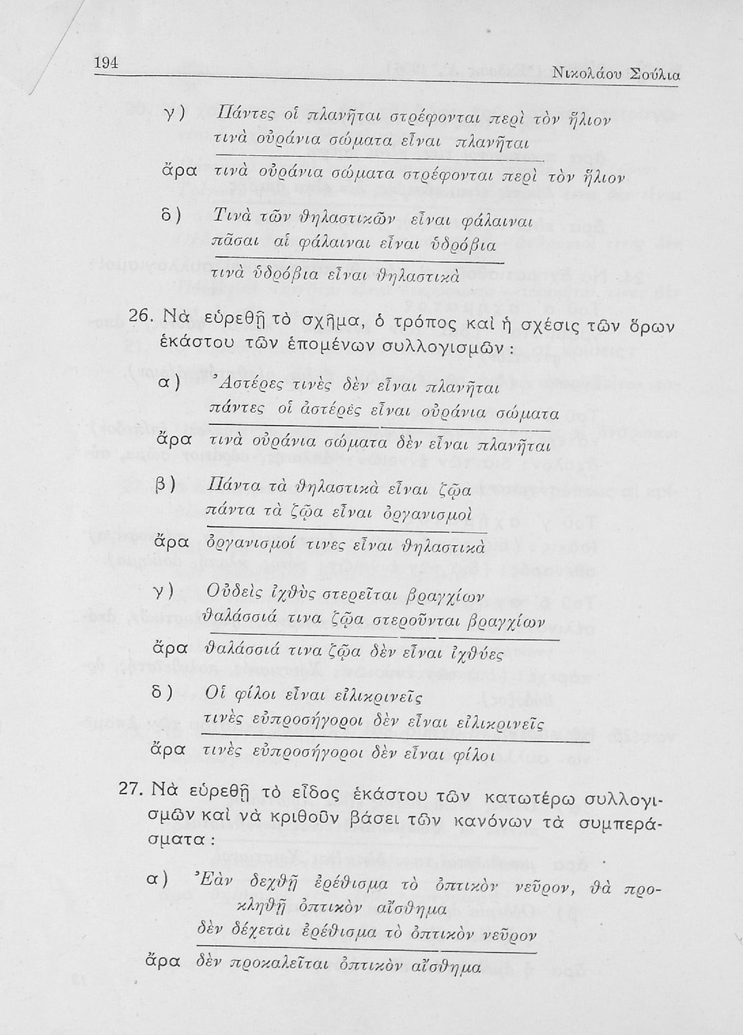 Βαθμίδα εκπαίδευσης: Δευτεροβάθμια Μάθημα: Λογική Γλώσσα: Απλή καθαρεύουσα Παρουσίαση περιεχομένου: Σχολικό εγχειρίδιο Λογικής που χωρίζεται σε τρία τμήματα: την τυπική λογική, την μεθοδολογία και τη γνωσιολογία. Περιέχει ασκήσεις λογικής. |