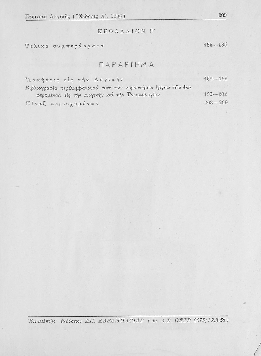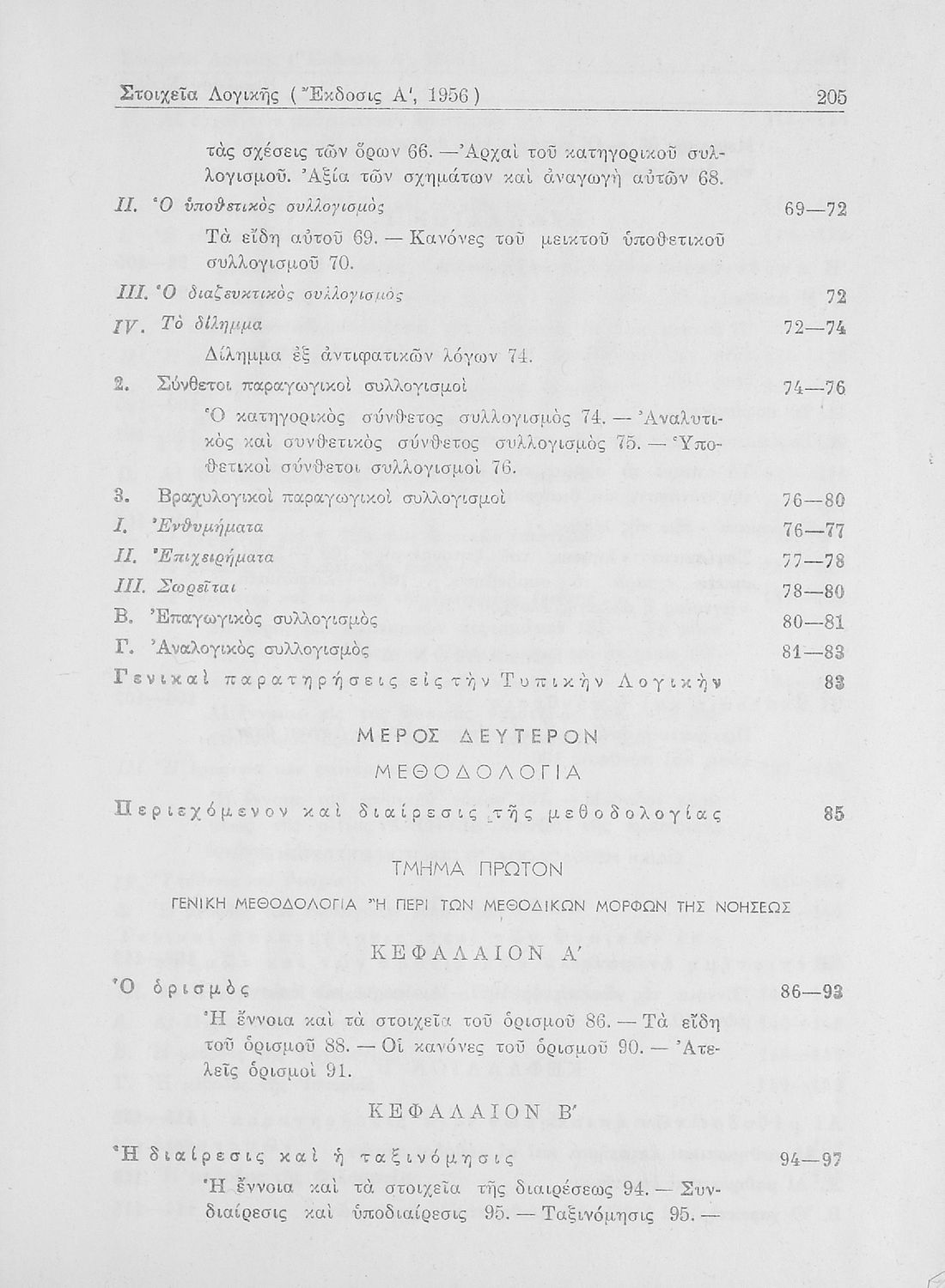 Σχολικό εγχειρίδιο Λογικής που χωρίζεται σε τρία τμήματα: την τυπική λογική, την μεθοδολογία και τη γνωσιολογία. Περιέχει ασκήσεις λογικής.