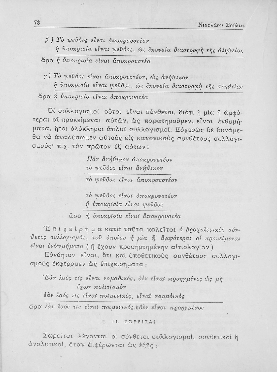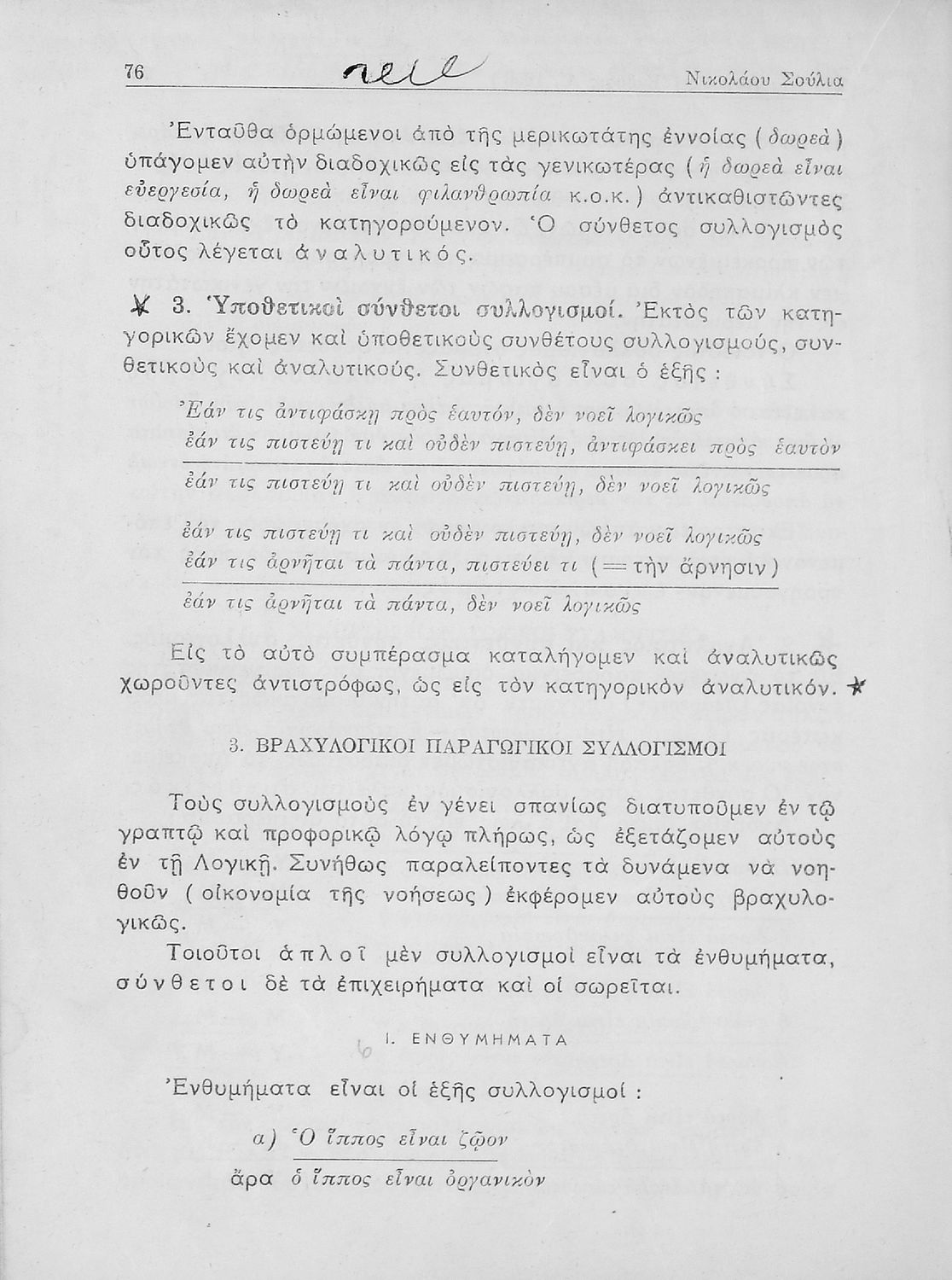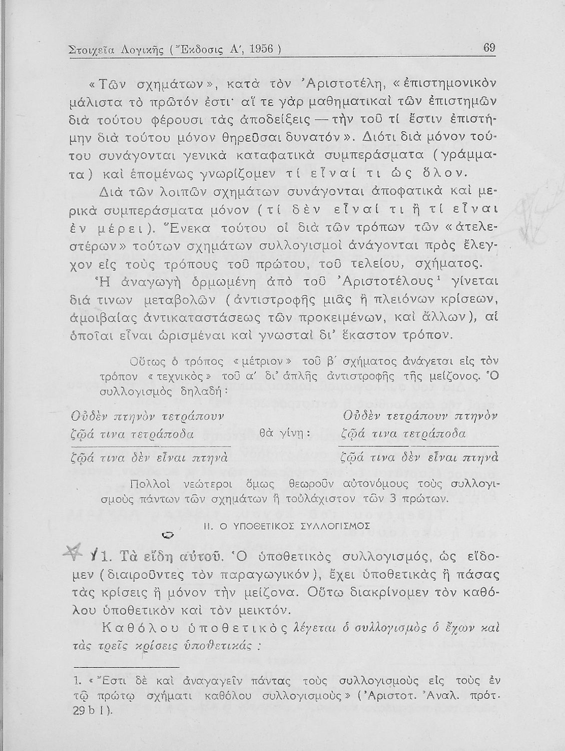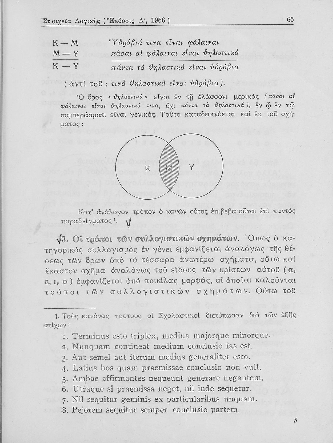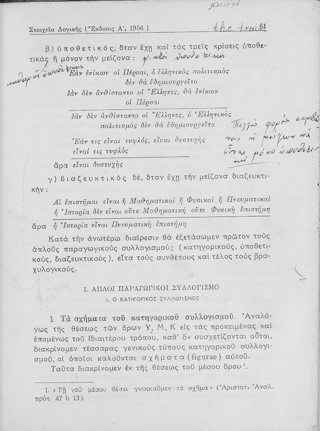 Σχολικό εγχειρίδιο Λογικής που χωρίζεται σε τρία τμήματα: την τυπική λογική, την μεθοδολογία και τη γνωσιολογία. Περιέχει ασκήσεις λογικής.