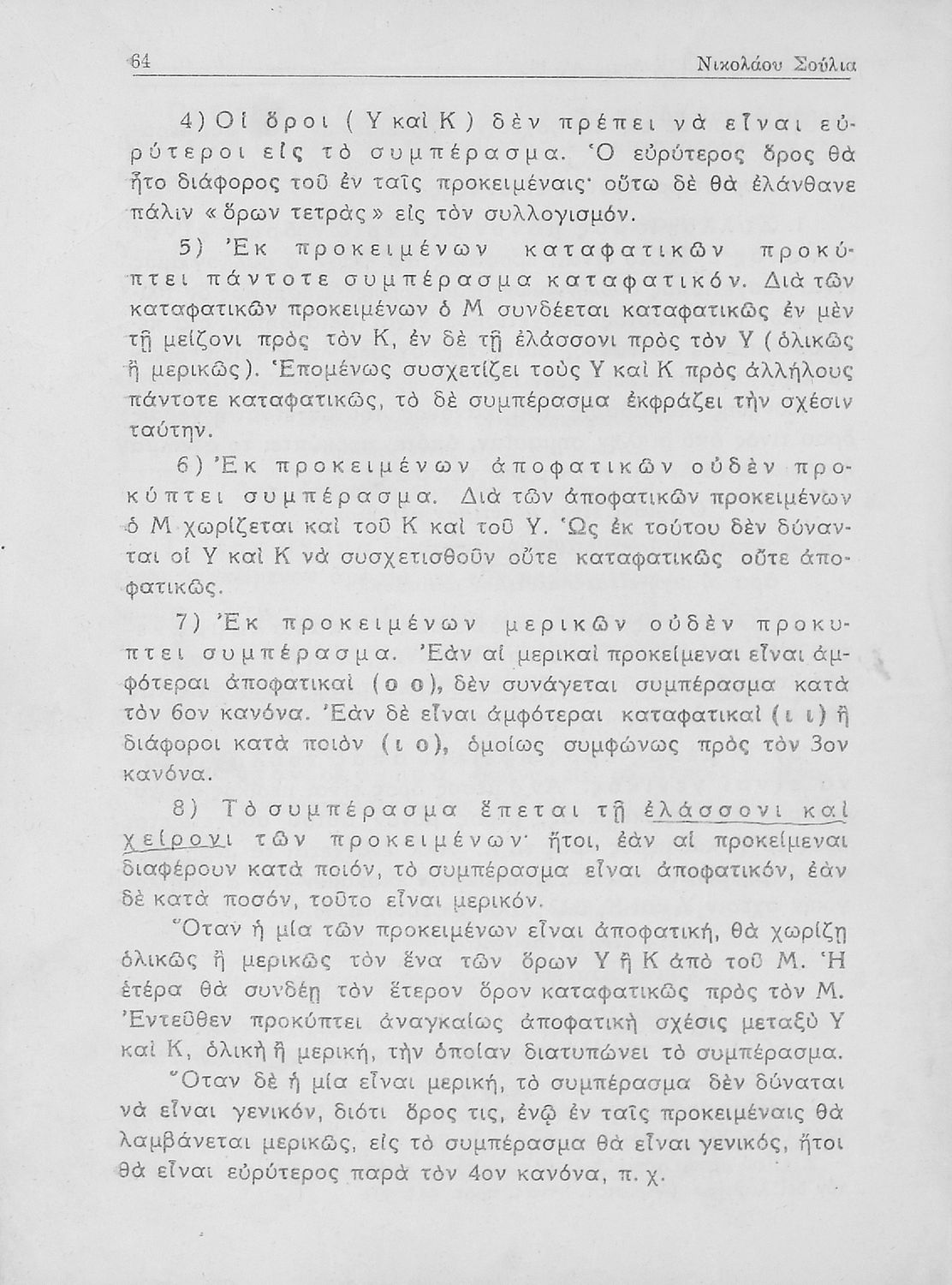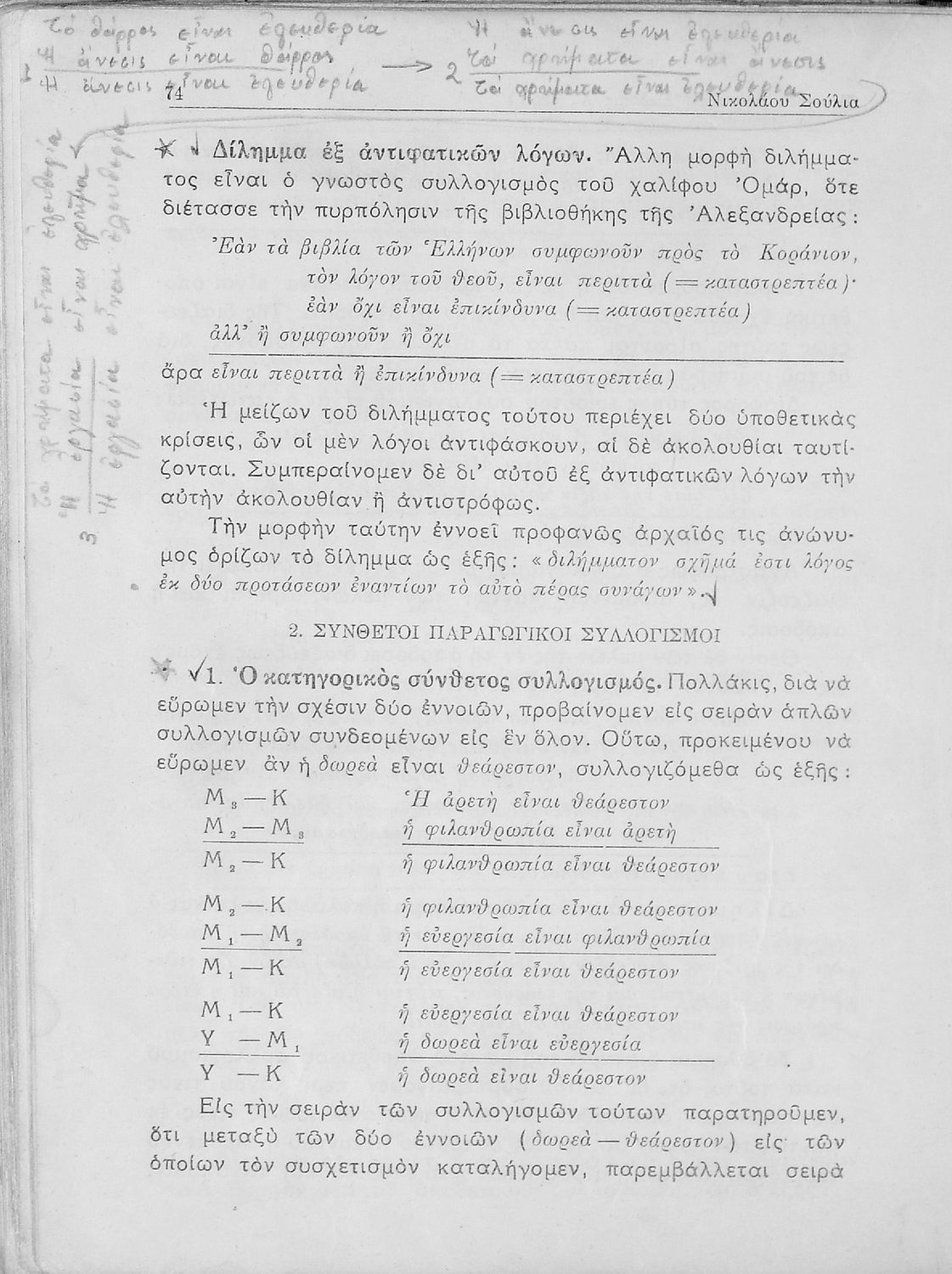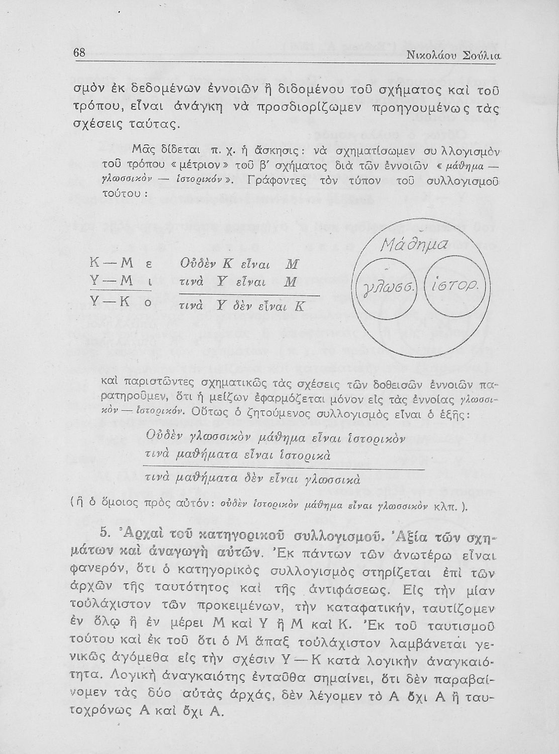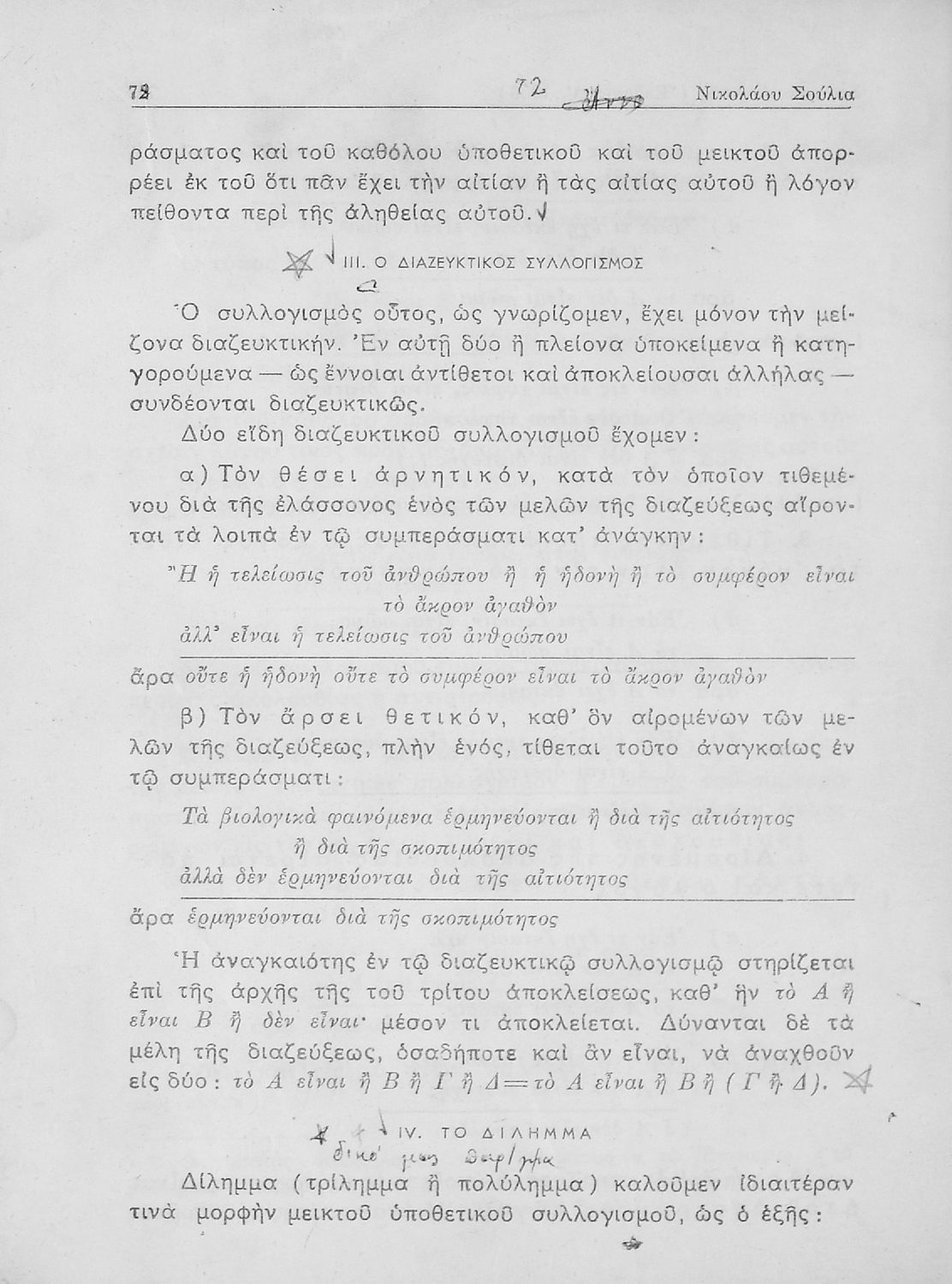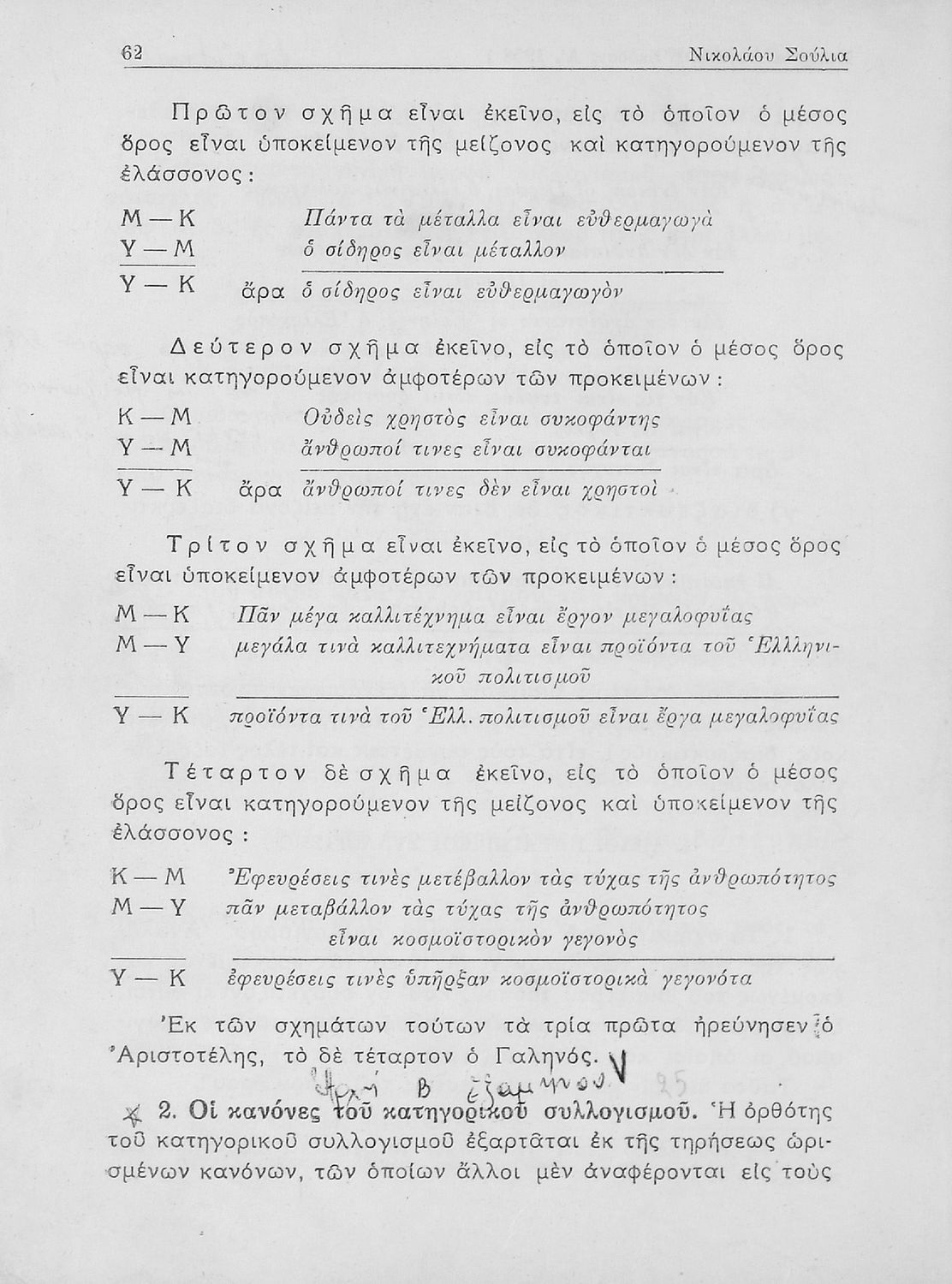 Σχολικό εγχειρίδιο Λογικής που χωρίζεται σε τρία τμήματα: την τυπική λογική, την μεθοδολογία και τη γνωσιολογία. Περιέχει ασκήσεις λογικής.
