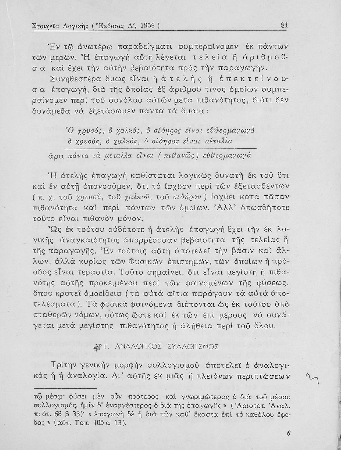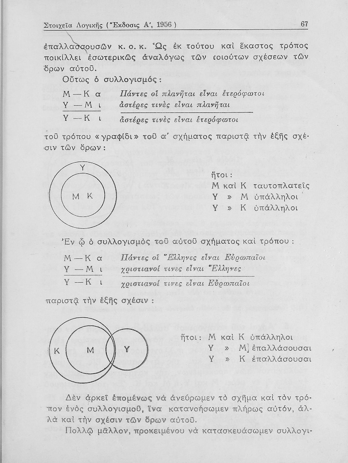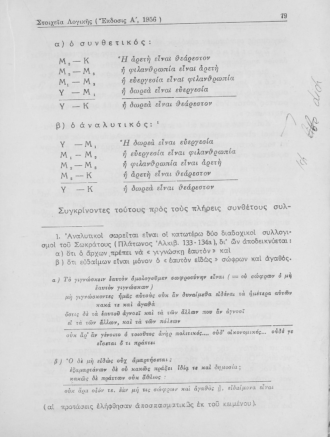 Σχολικό εγχειρίδιο Λογικής για τη ΣΤ΄ Γυμνασίου που είναι χωρισμένο σε στοιχειολογία ή τυπική λογική, μεθοδολογία και γνωσιολογία. Περιέχει ασκήσεις λογικής.
