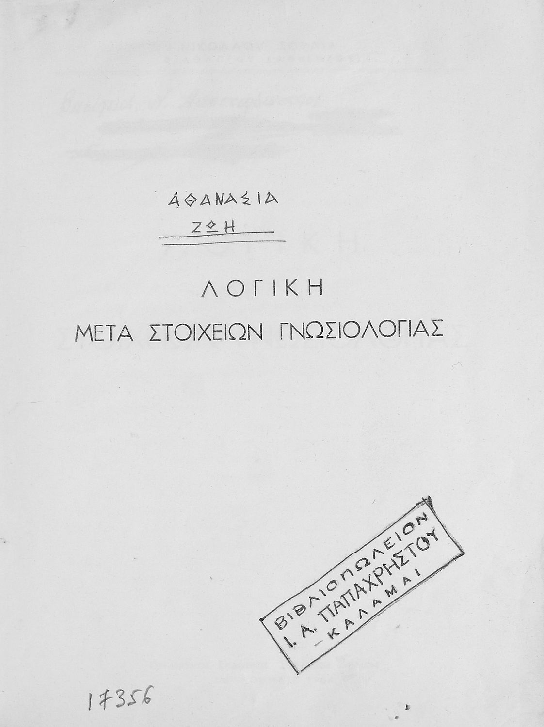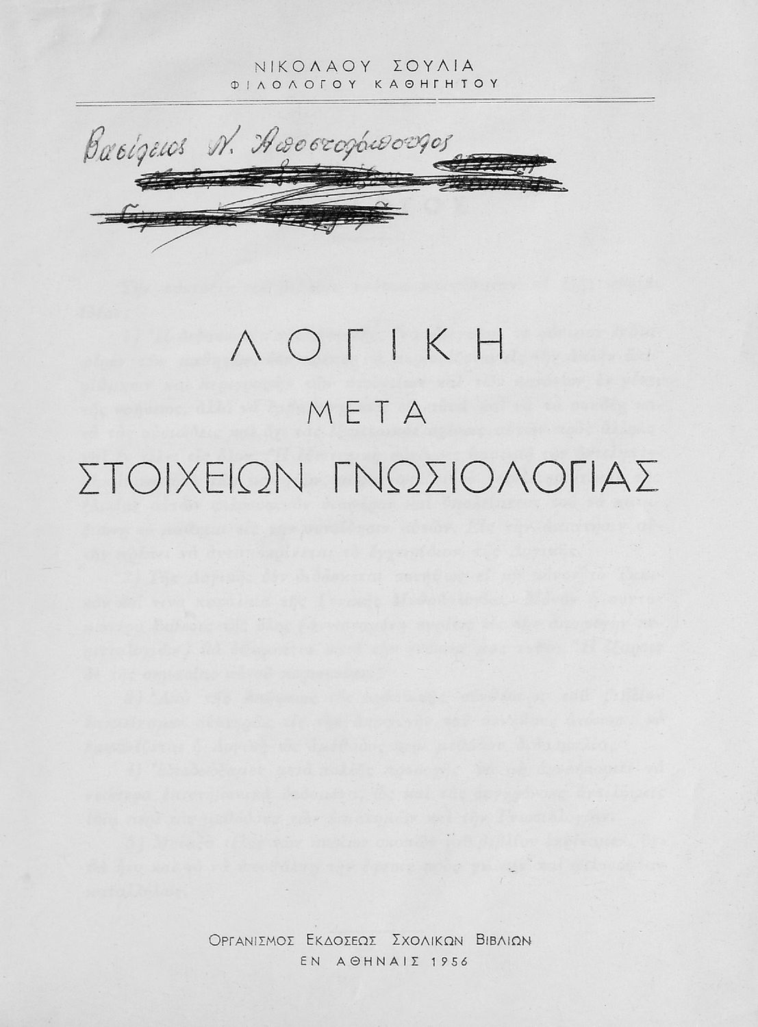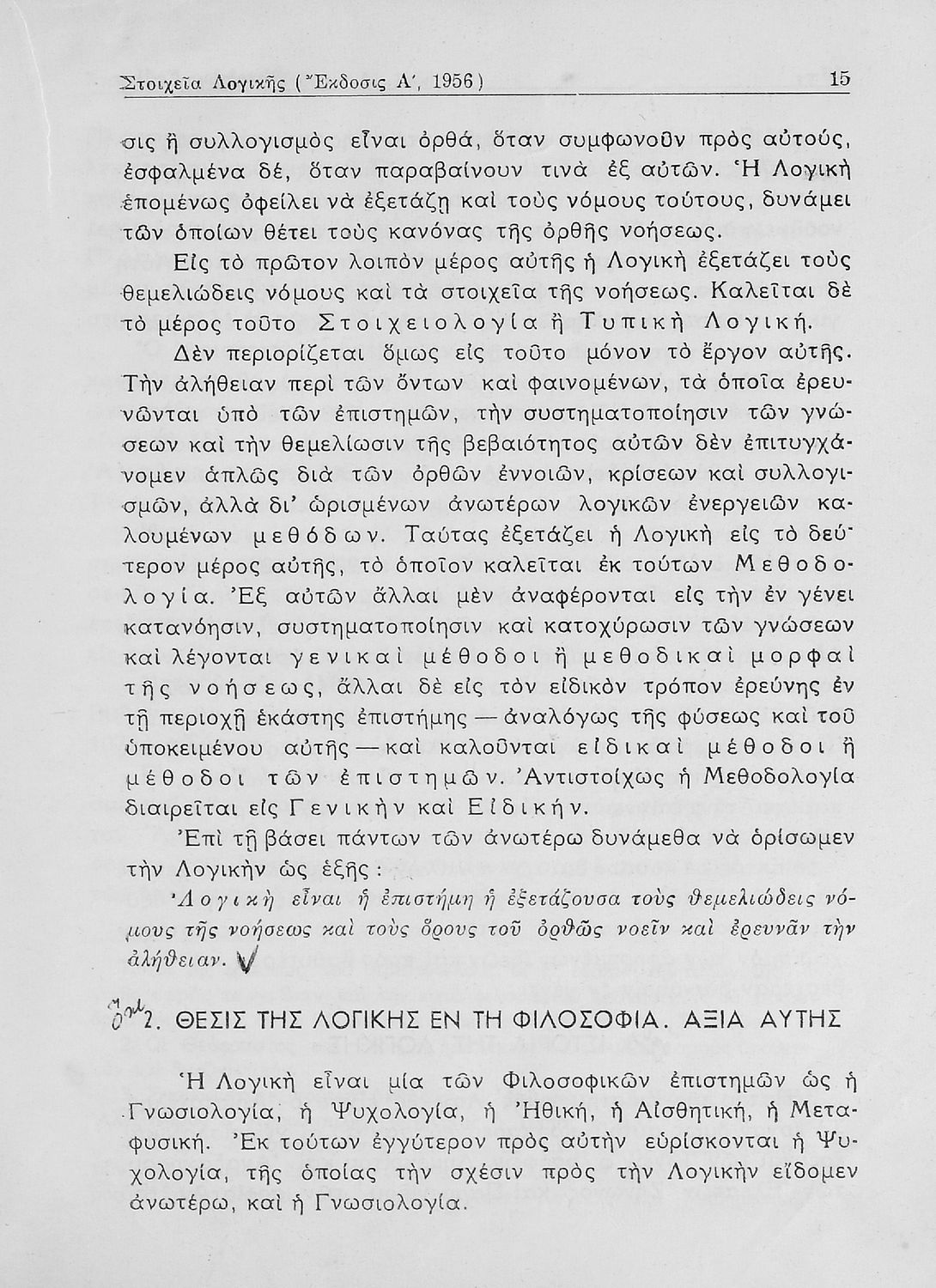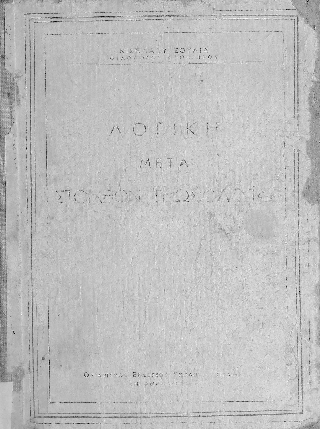 Σχολικό εγχειρίδιο Λογικής που χωρίζεται σε τρία τμήματα: την τυπική λογική, την μεθοδολογία και τη γνωσιολογία. Περιέχει ασκήσεις λογικής.