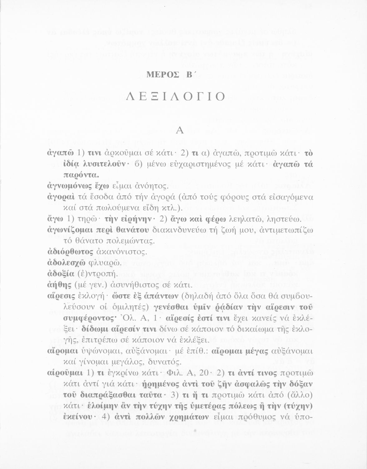 Σχολικό εγχειρίδιο Αρχαίων Ελληνικών. Α΄ Λυκείου που περιλαμβάνει εισαγωγή στη ζωή και το έργο του Δημοσθένη, τους Λόγους Α΄ και Β΄ Ολυνθιακός και Α΄ και Β΄ κατά Φιλίππου και ερμηνευτικές σημειώσεις.
