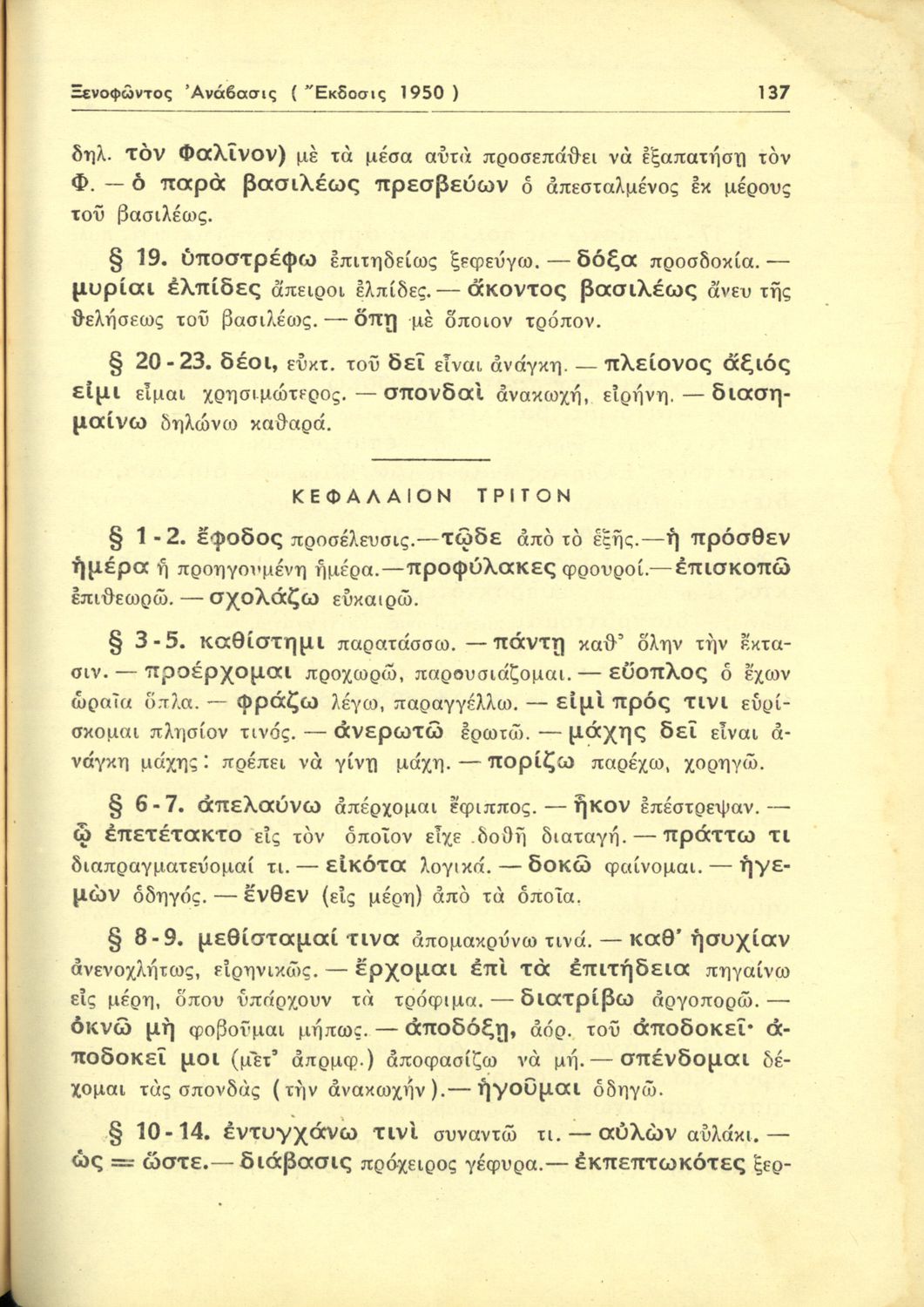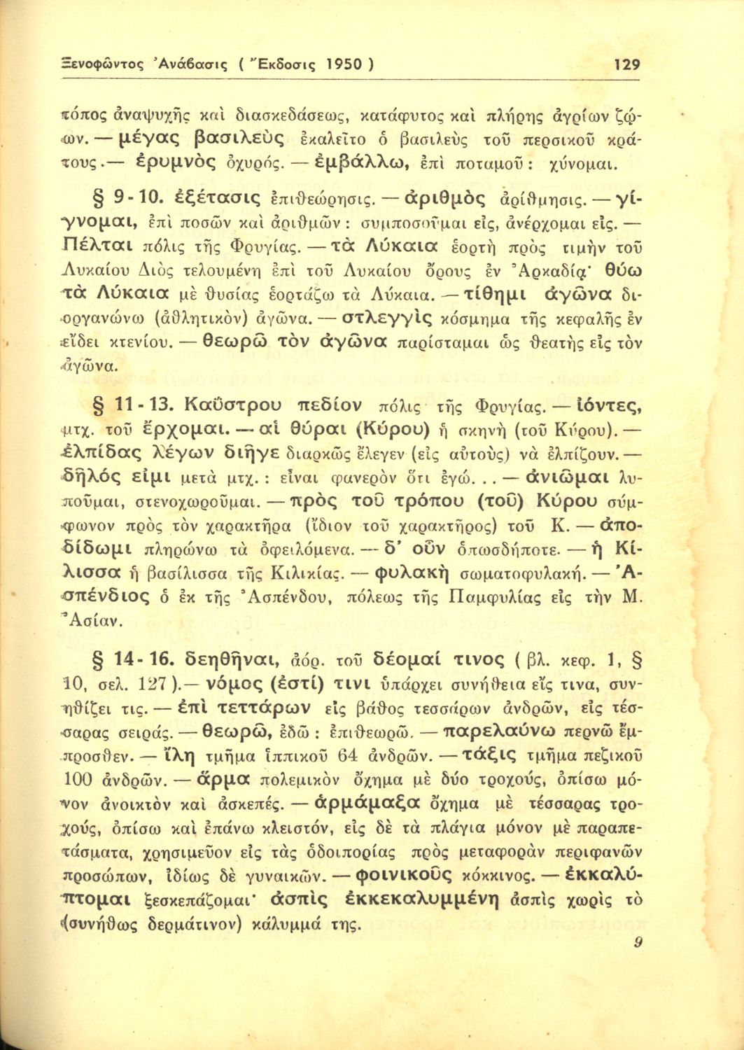 Σχολικό εγχειρίδιο της Γ΄ Γυμνασίου για το μάθημα των Αρχαίων. Περιέχει αποσπάσματα από το έργο του Ξενοφώντα, ερμηνευτικά και πραγματολογικά σχόλια και λεξιλογικές παρατηρήσεις.