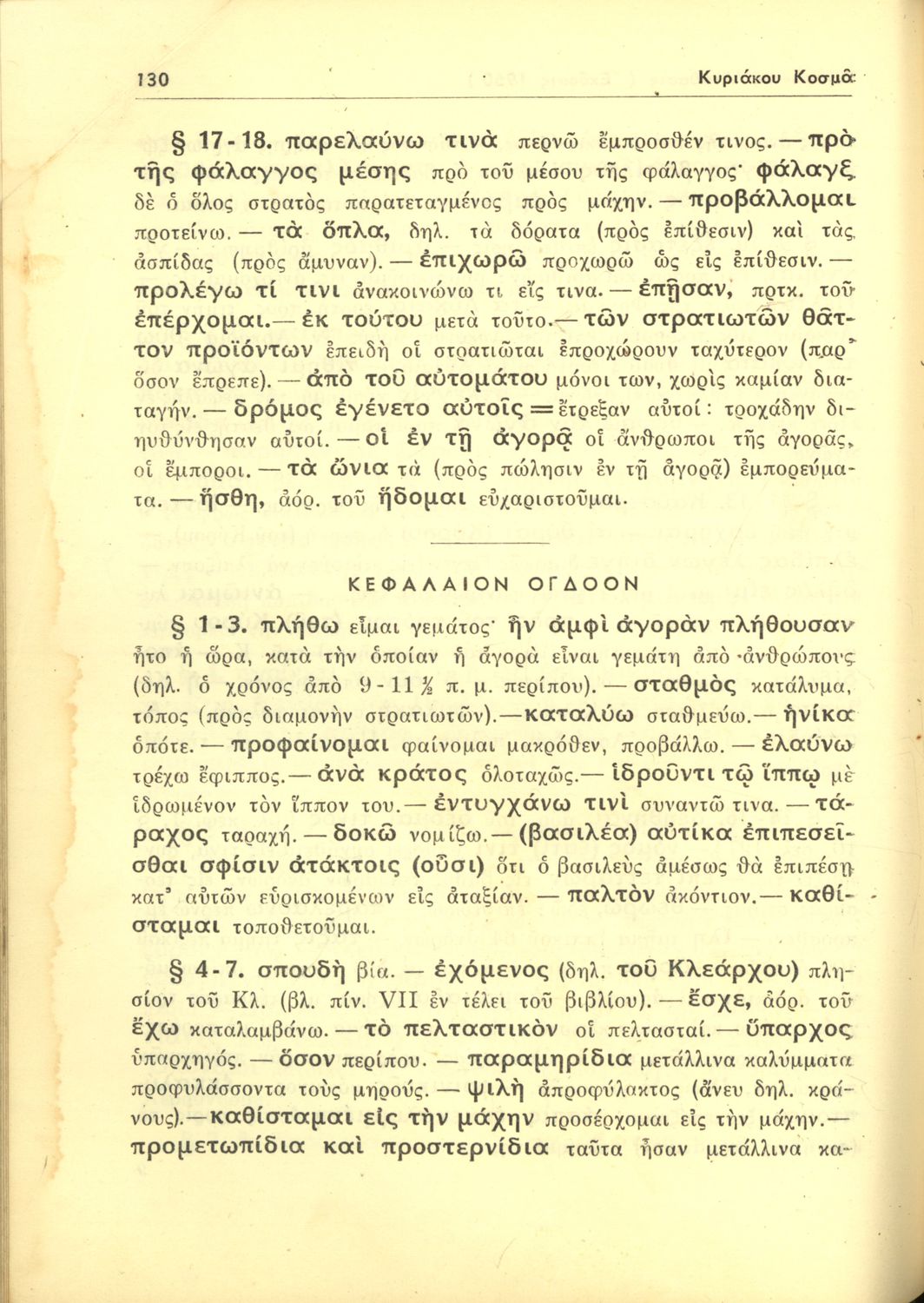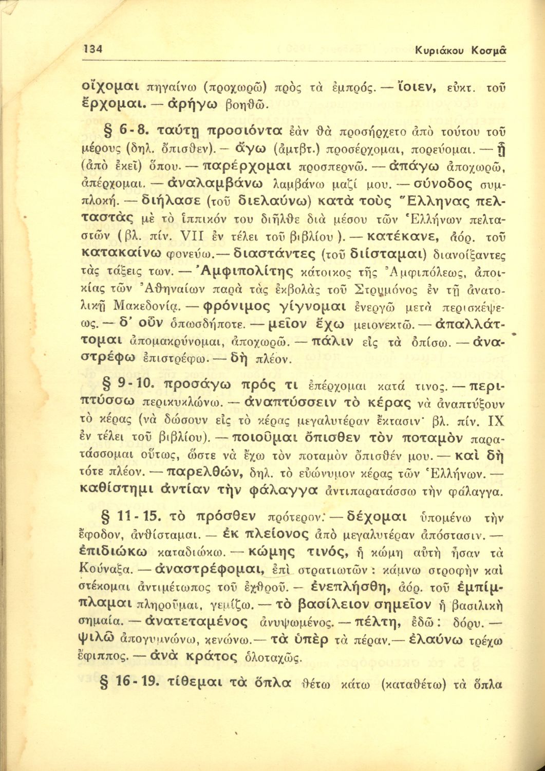 Σχολικό εγχειρίδιο Αρχαίων Ελληνικών Β΄ Γυμνασίου που περιέχει αποσπάσματα από το έργο Κύρου Ανάβασις του Ξενοφώντα, λεξιλογικές παρατηρήσεις, ερμηνευτικά, πραγματολογικά σχόλια και γραμματικές παρατηρήσεις.