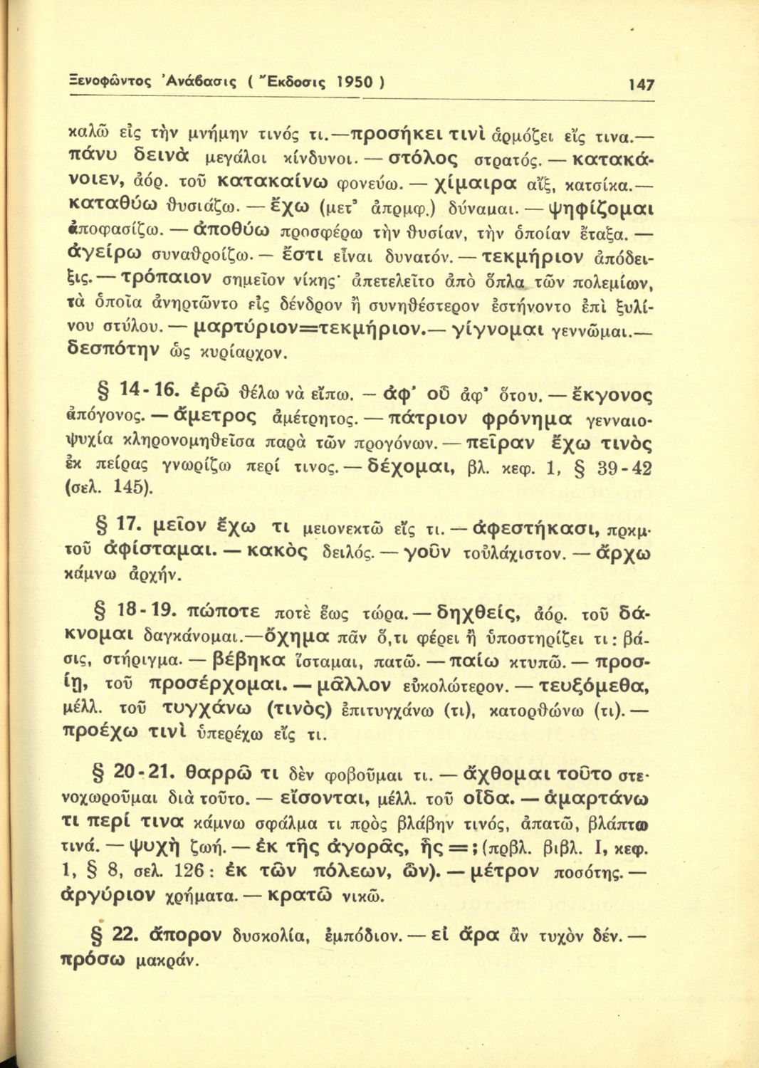 Σχολικό εγχειρίδιο της Γ΄ Γυμνασίου για το μάθημα των Αρχαίων. Περιέχει αποσπάσματα από το έργο του Ξενοφώντα, ερμηνευτικά και πραγματολογικά σχόλια και λεξιλογικές παρατηρήσεις.
