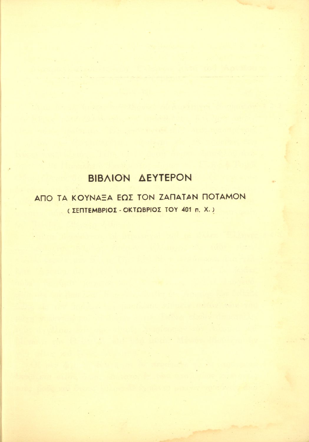 Σχολικό Εγχειρίδιο Αρχαίων Ελληνικών της Β' Γυμνασίου. Το βιβλίο αναφέρεται στο σύγγραμμα του Ξενοφώντα για την εκστρατεία του Κύρου κατά του Αρταξέρξη και κυρίως την κάθοδο ( επιστροφή) των Μυρίων. Στο ...