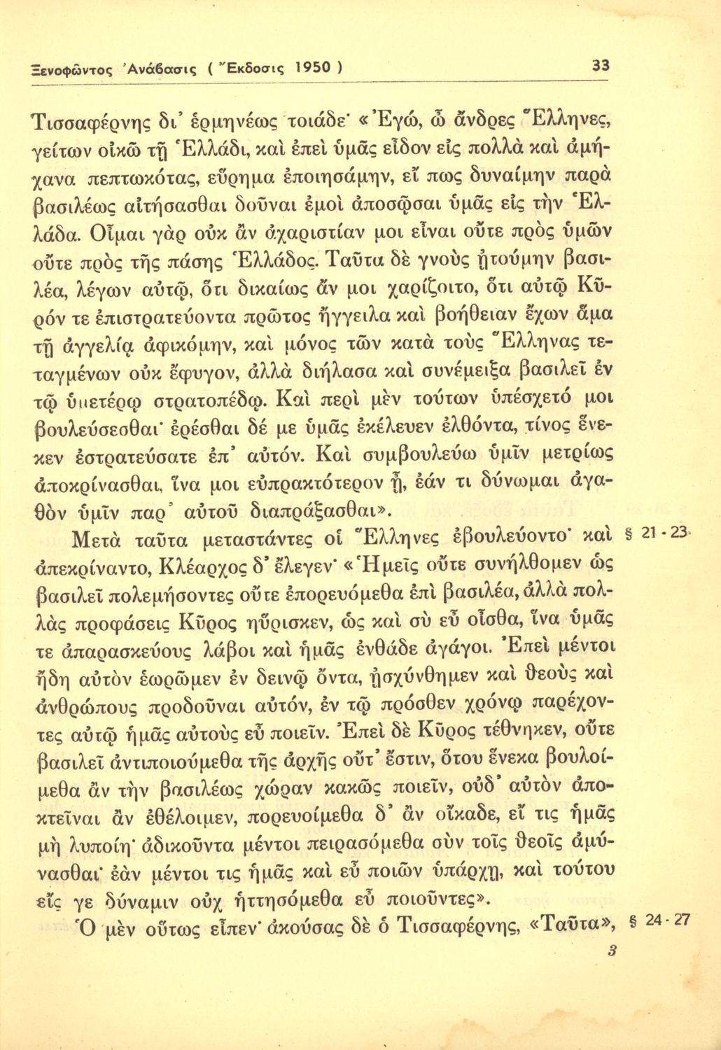 Σχολικό εγχειρίδιο της Γ΄ Γυμνασίου για το μάθημα των Αρχαίων. Περιέχει αποσπάσματα από το έργο του Ξενοφώντα, ερμηνευτικά και πραγματολογικά σχόλια και λεξιλογικές παρατηρήσεις.