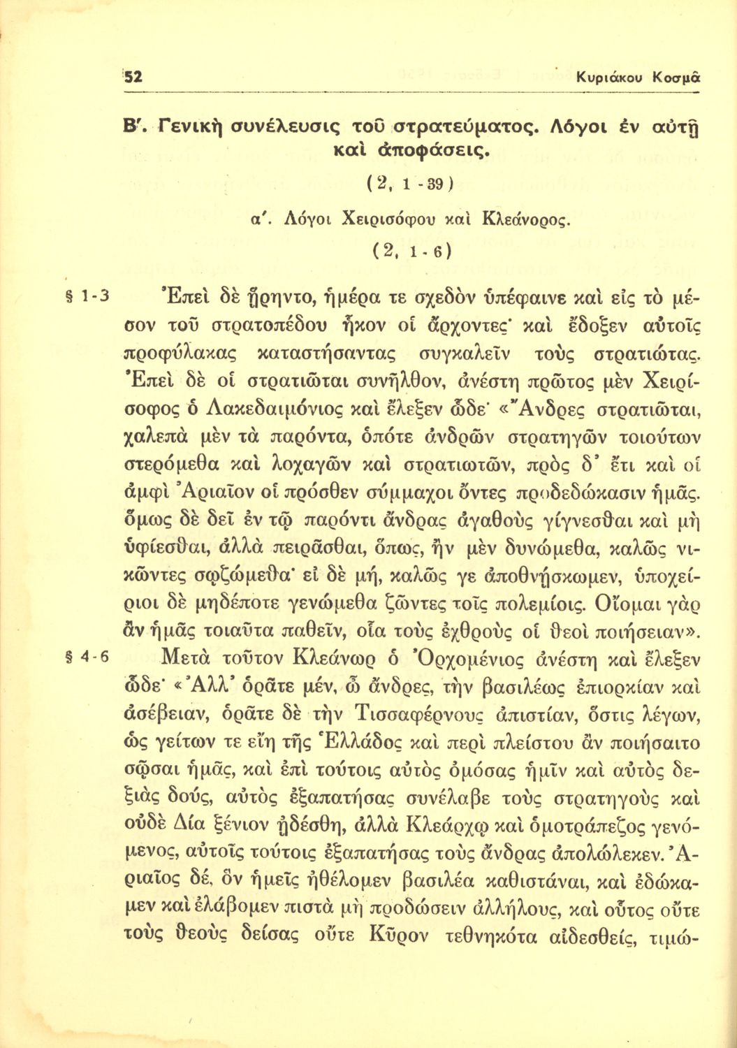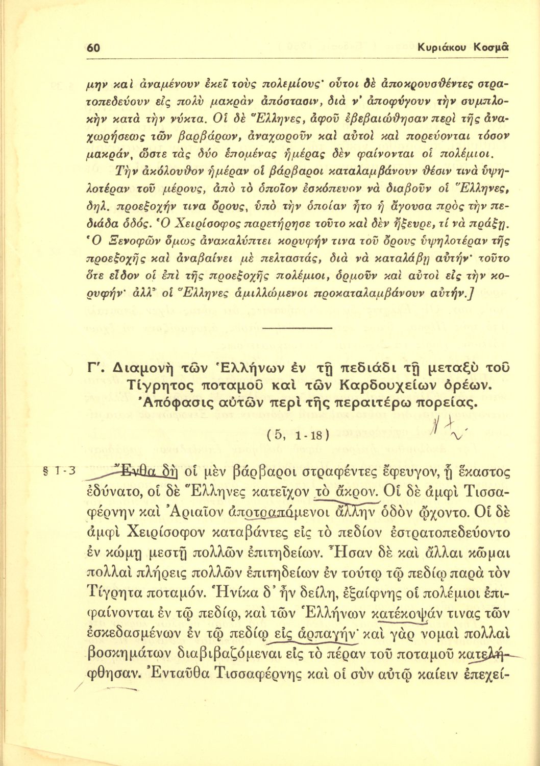 Ξενοφών, Κυριάκος Κοσμάς (σχόλια)