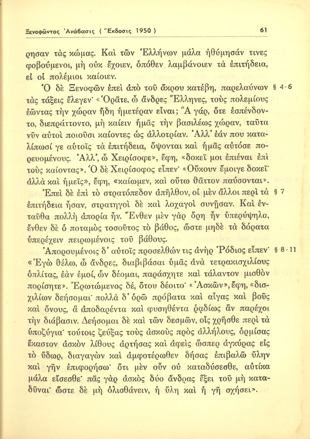 Σχολικό εγχειρίδιο της Γ΄ Γυμνασίου για το μάθημα των Αρχαίων. Περιέχει αποσπάσματα από το έργο του Ξενοφώντα, ερμηνευτικά και πραγματολογικά σχόλια και λεξιλογικές παρατηρήσεις.