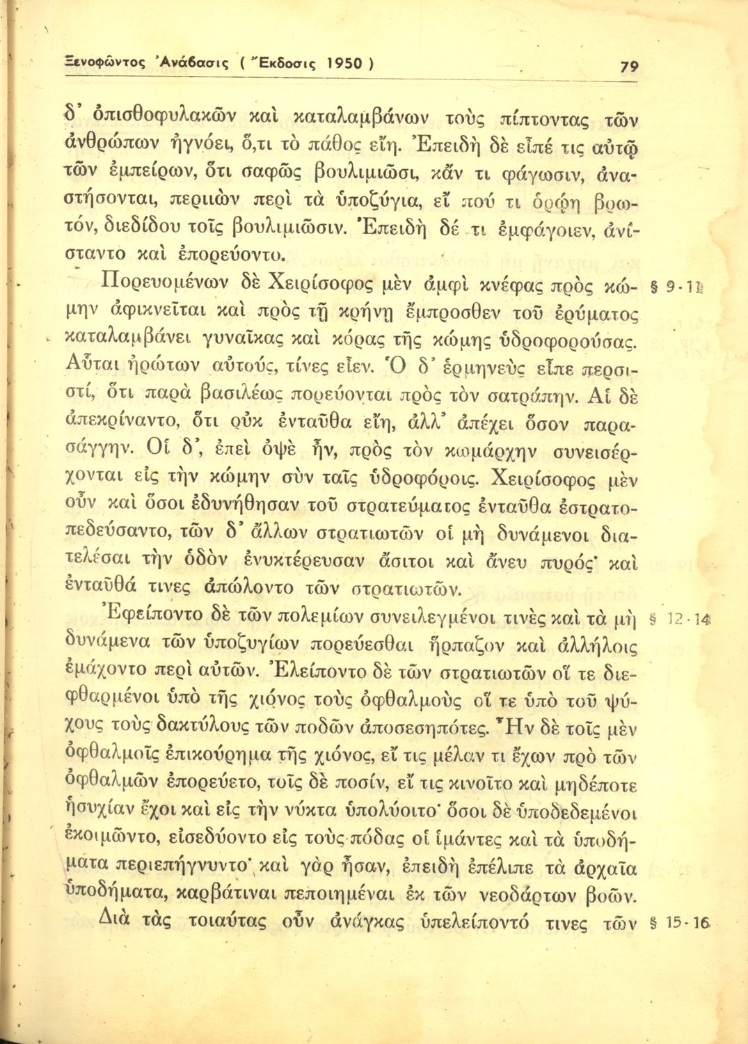 Σχολικό εγχειρίδιο της Γ΄ Γυμνασίου για το μάθημα των Αρχαίων. Περιέχει αποσπάσματα από το έργο του Ξενοφώντα, ερμηνευτικά και πραγματολογικά σχόλια και λεξιλογικές παρατηρήσεις.