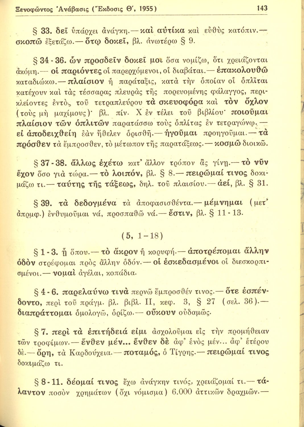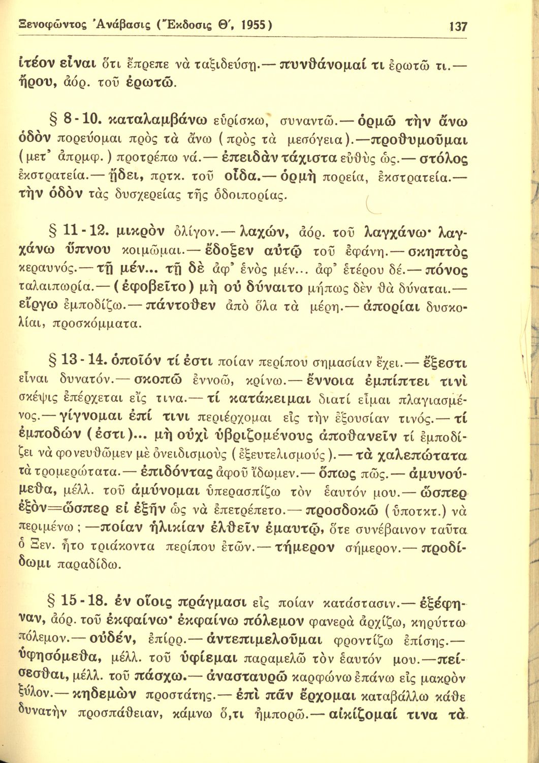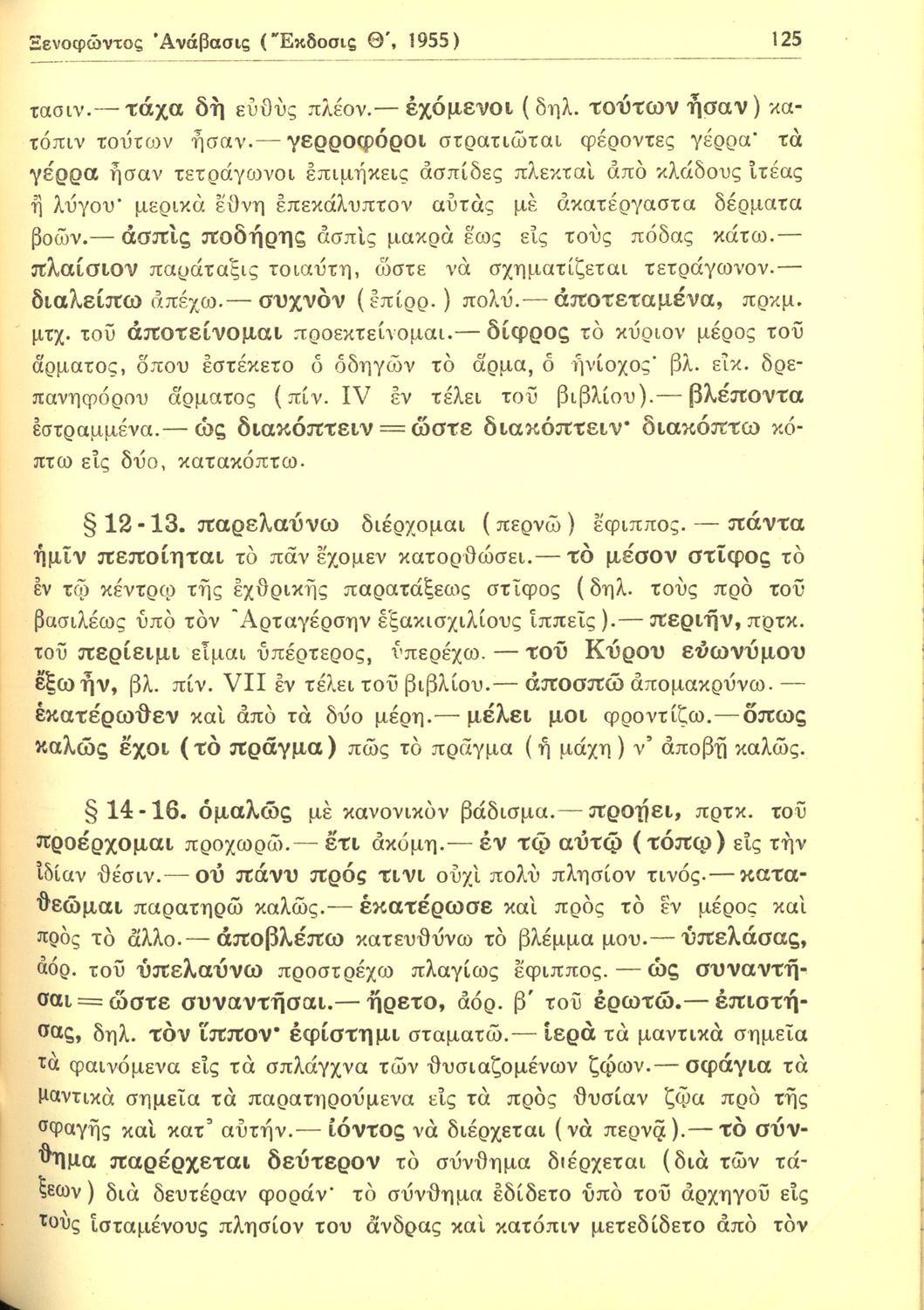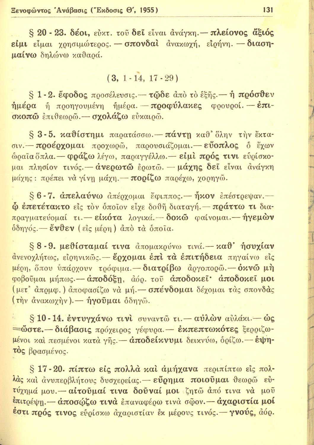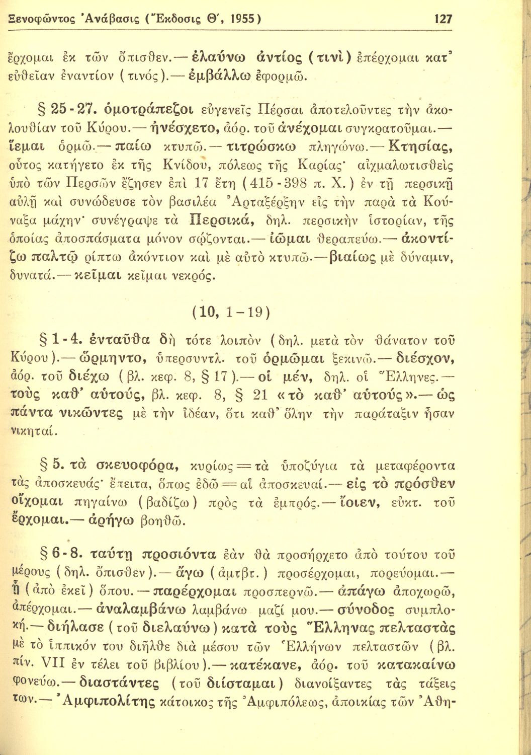 Σχολικό εγχειρίδιο Αρχαίων Ελληνικών για τη Γ' Γυμνασίου που περιέχει αποσπάσματα από την Ανάβαση του Ξενοφώντα και ερμηνευτικά και ετυμολογικά σχόλια.