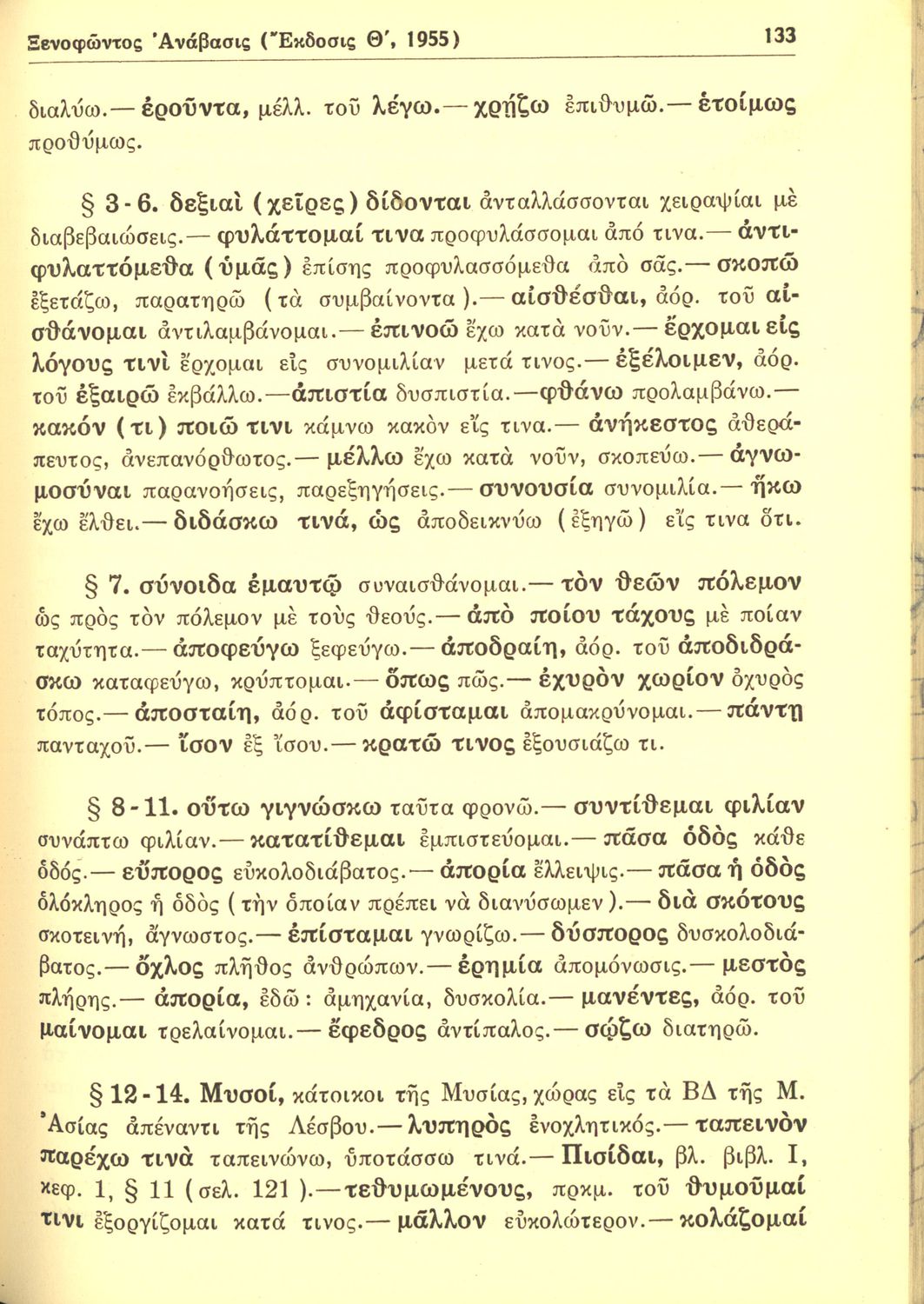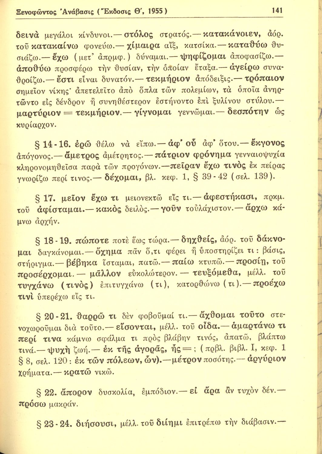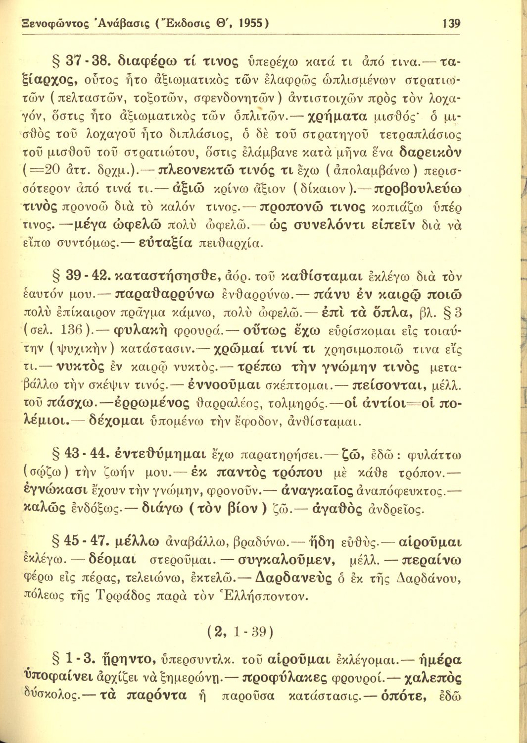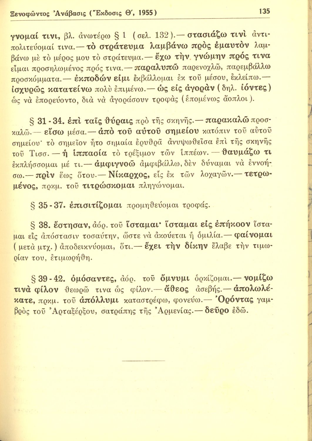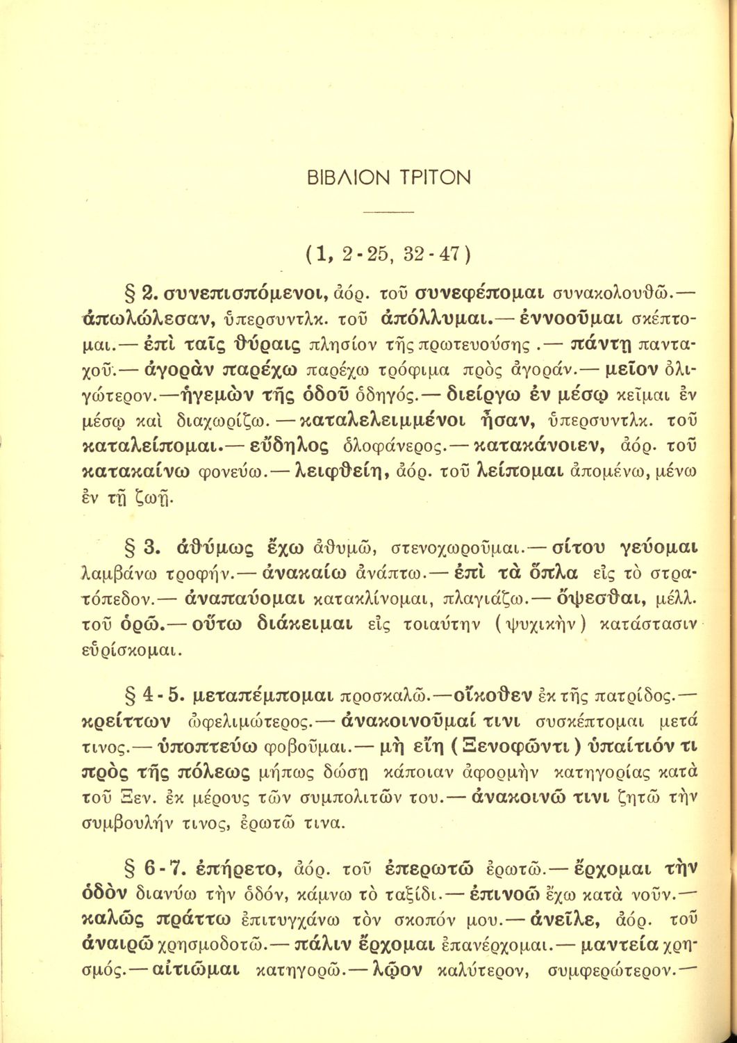 Σχολικό εγχειρίδιο Αρχαίων Ελληνικών για τη Γ' Γυμνασίου που περιέχει αποσπάσματα από την Ανάβαση του Ξενοφώντα και ερμηνευτικά και ετυμολογικά σχόλια.