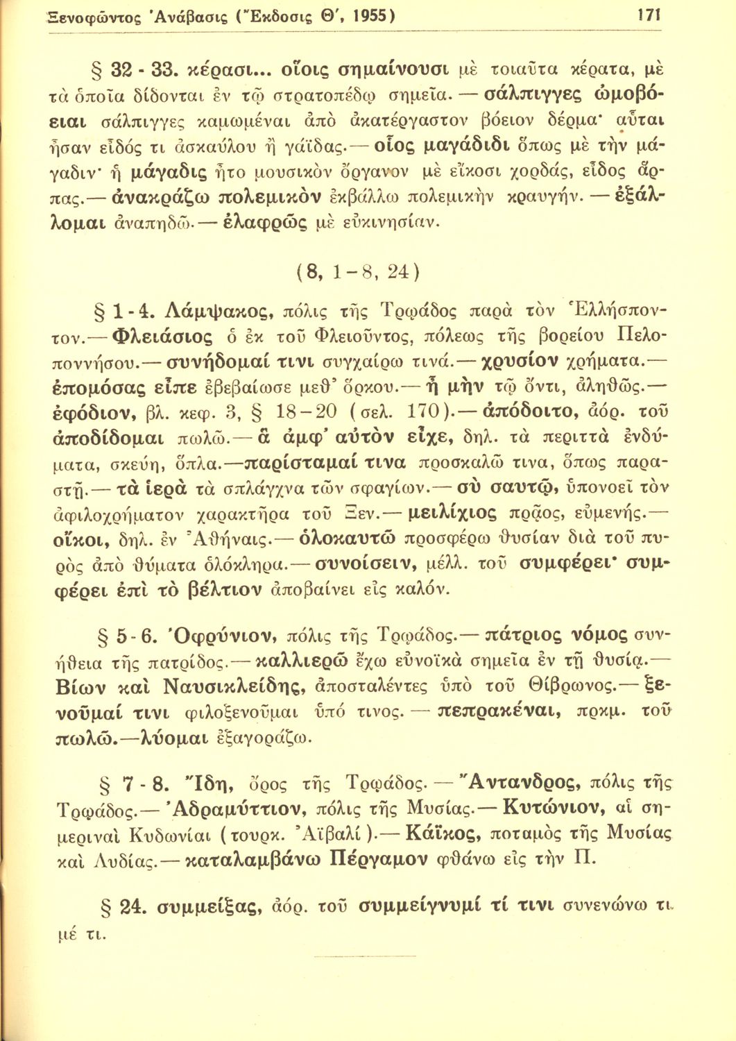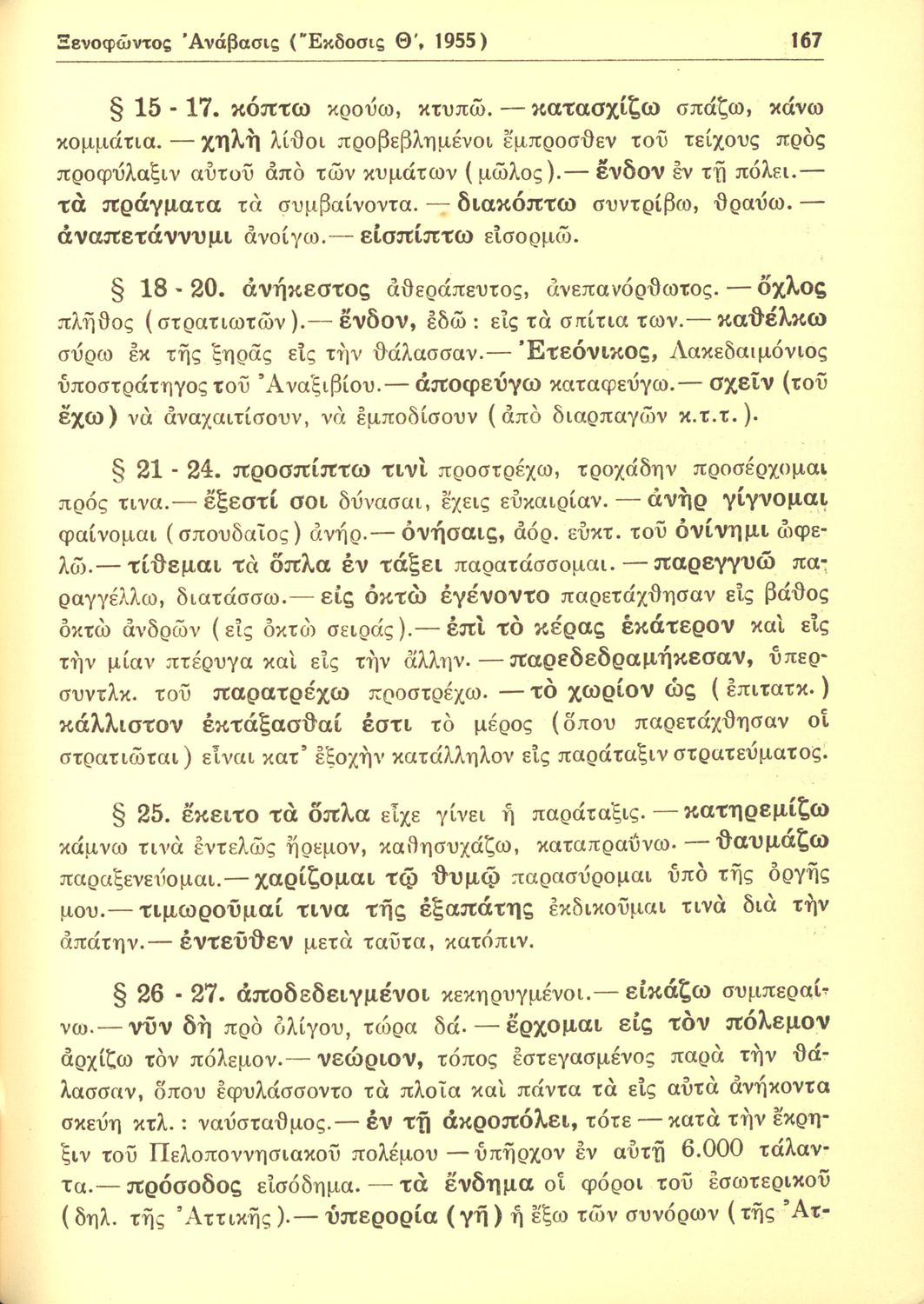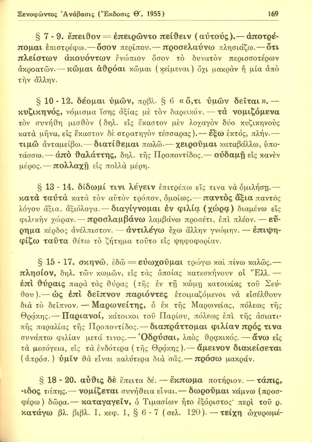 Σχολικό εγχειρίδιο Αρχαίων Ελληνικών για τη Γ' Γυμνασίου που περιέχει αποσπάσματα από την Ανάβαση του Ξενοφώντα και ερμηνευτικά και ετυμολογικά σχόλια.
