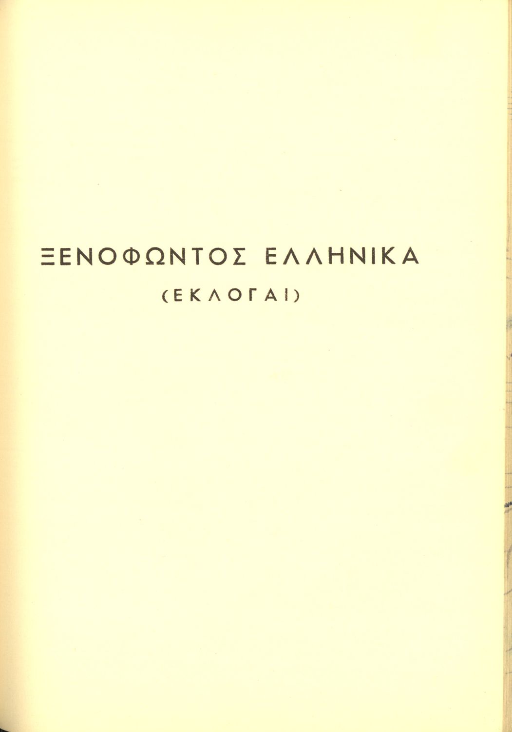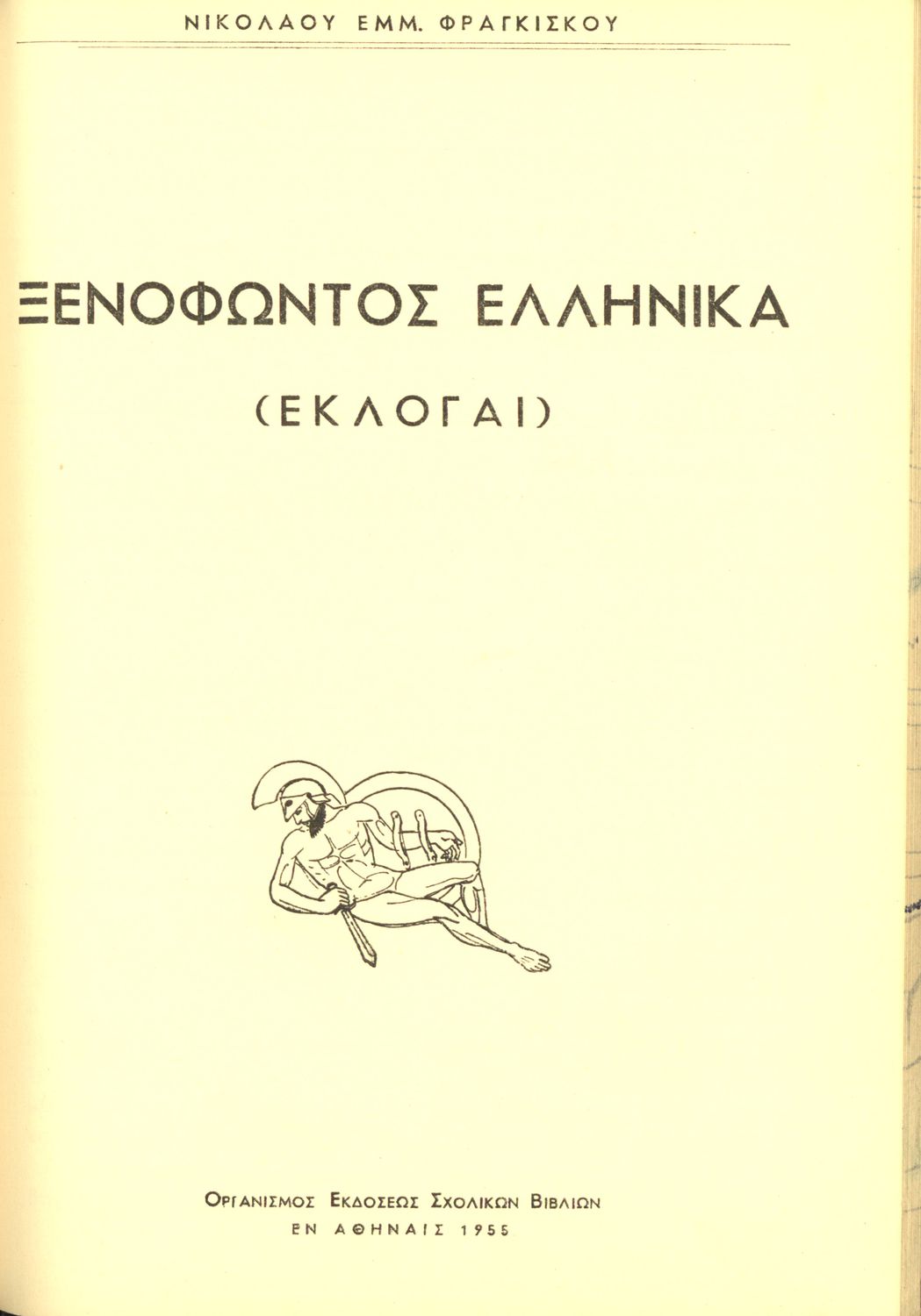 Σχολικό εγχειρίδιο Αρχαίων Ελληνικών για τη Β΄ Γυμνασίου. Πρόκειται για βιβλίο αρχαίων σε μετάφραση από το έργο του Ξενοφώντα. Στο βιβλίο απεικονίζεται το σύμβολο της επταετίας.