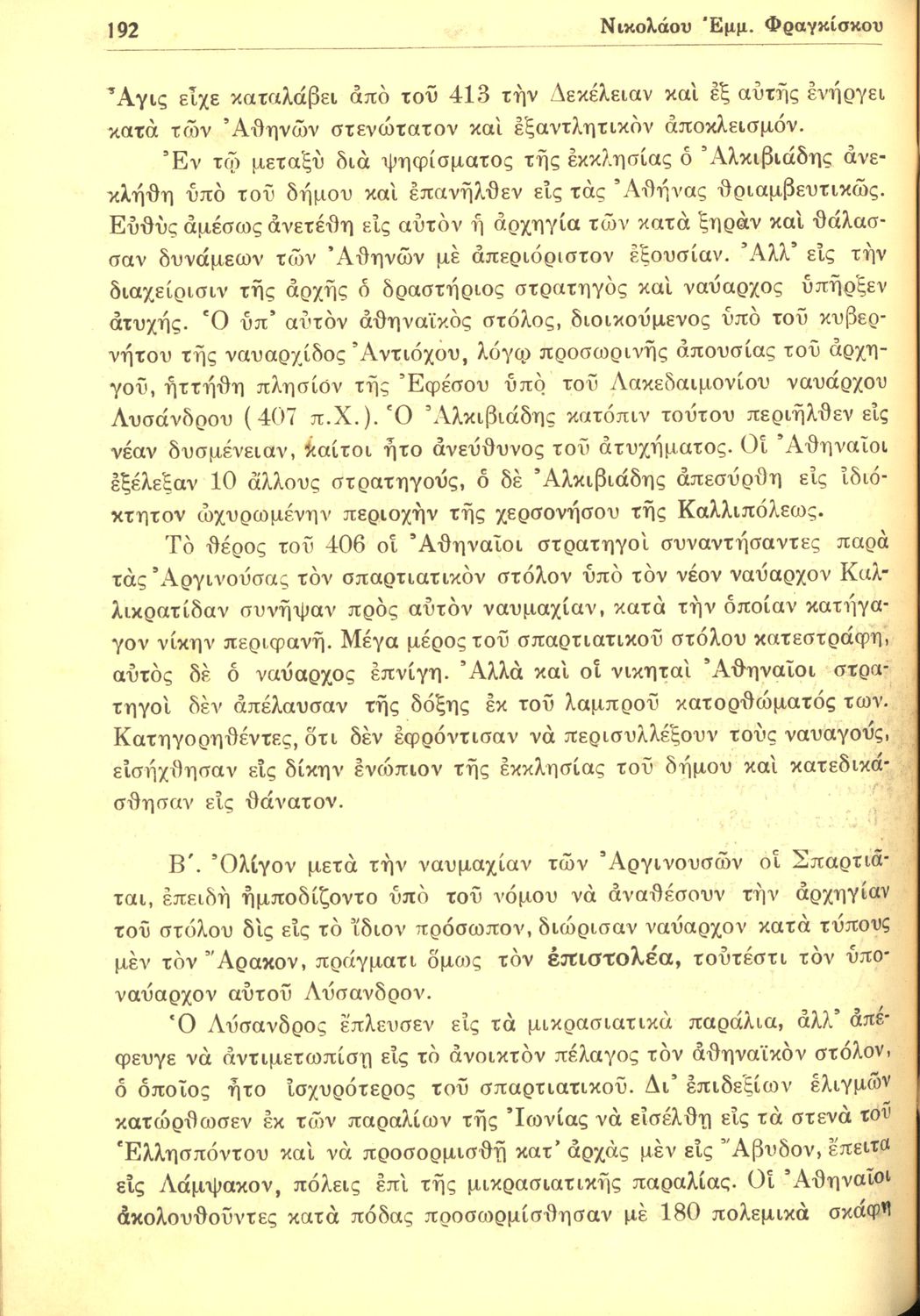 Ξενοφών, Κυριάκος Κοσμάς, Νικόλαος Φραγκίσκος (σχόλια)