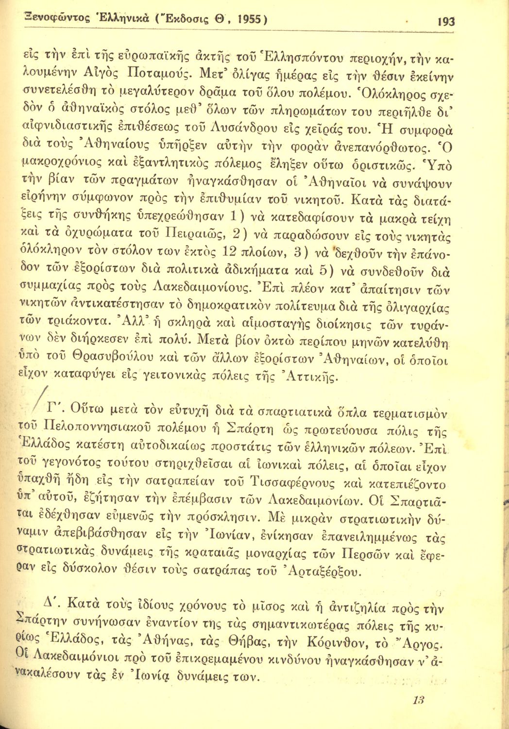 Σχολικό εγχειρίδιο Αρχαίων Ελληνικών Β΄ Γυμνασίου που περιέχει αποσπάσματα από τα έργα του Ξενοφώντα Ελληνικά και Κύρου Ανάβασις, λεξιλογικές παρατηρήσεις, ερμηνευτικά, πραγματολογικά σχόλια και γραμματικές παρατηρήσεις.