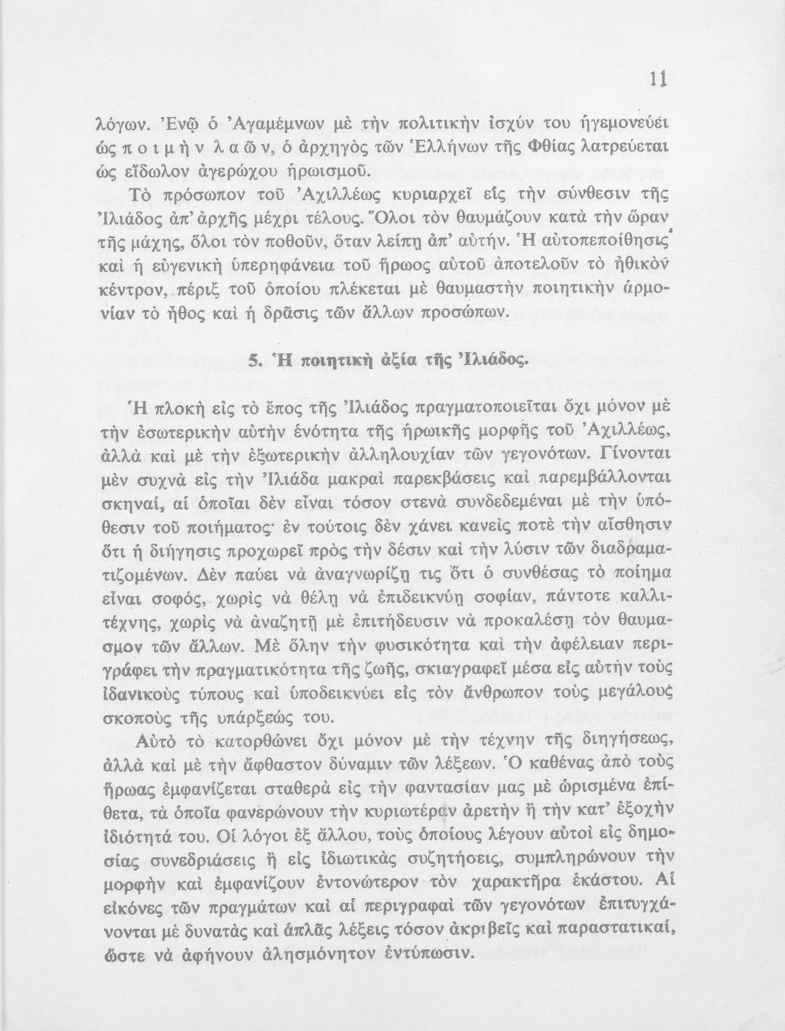 Σχολικό εγχειρίδιο Αρχαίων Ελληνικών Ε΄ Γυμνασίου που περιλαμβάνει αποσπάσματα από την Ιλιάδα, εισαγωγή και ασκήσεις. Περιέχει και παράρτημα εικόνων.
