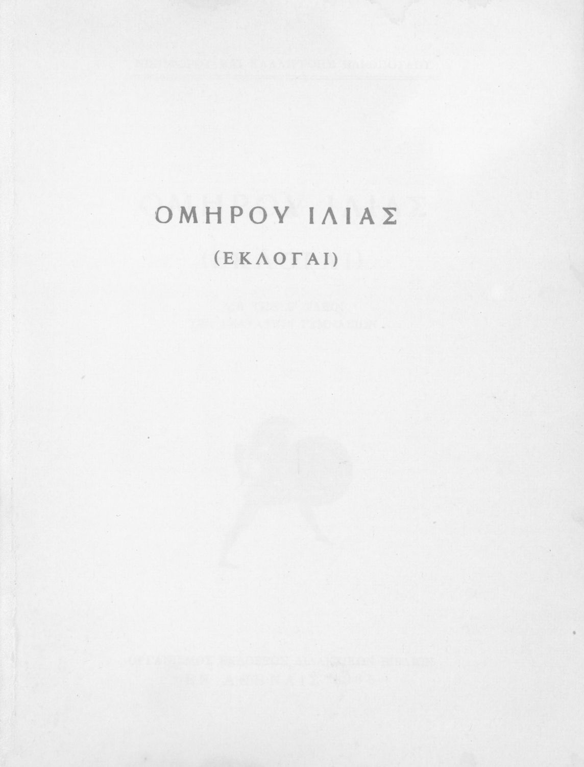 Τίτλος: Ομήρου Ιλιάς Εκλογαί δια την Ε΄ τάξιν των Εξαταξίων Γυμνασίων