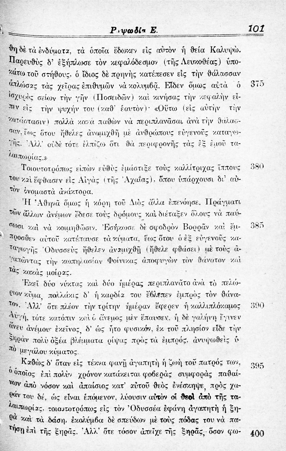 Σχολικό εγχειρίδιο της Α΄, Β΄, Γ΄ Γυμνασίου για το μάθημα των Αρχαίων Ελληνικών. Περιέχει τις ραψωδίες της Οδύσσειας, μετάφραση, ερμηνευτικά και πραγματολογικά σχόλια, καθώς και γραμματικές παρατηρήσεις.