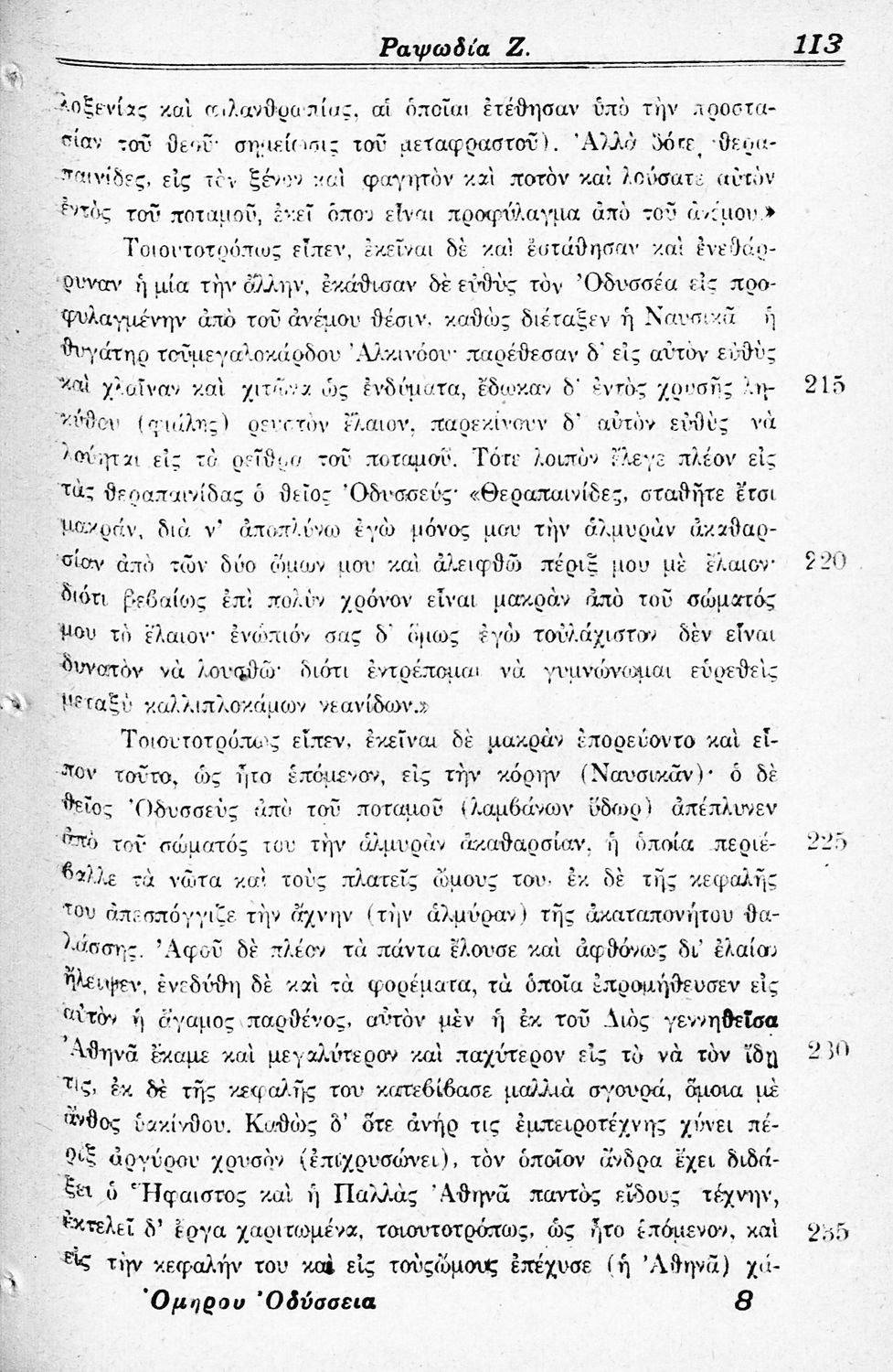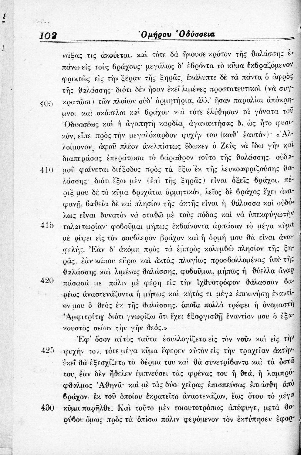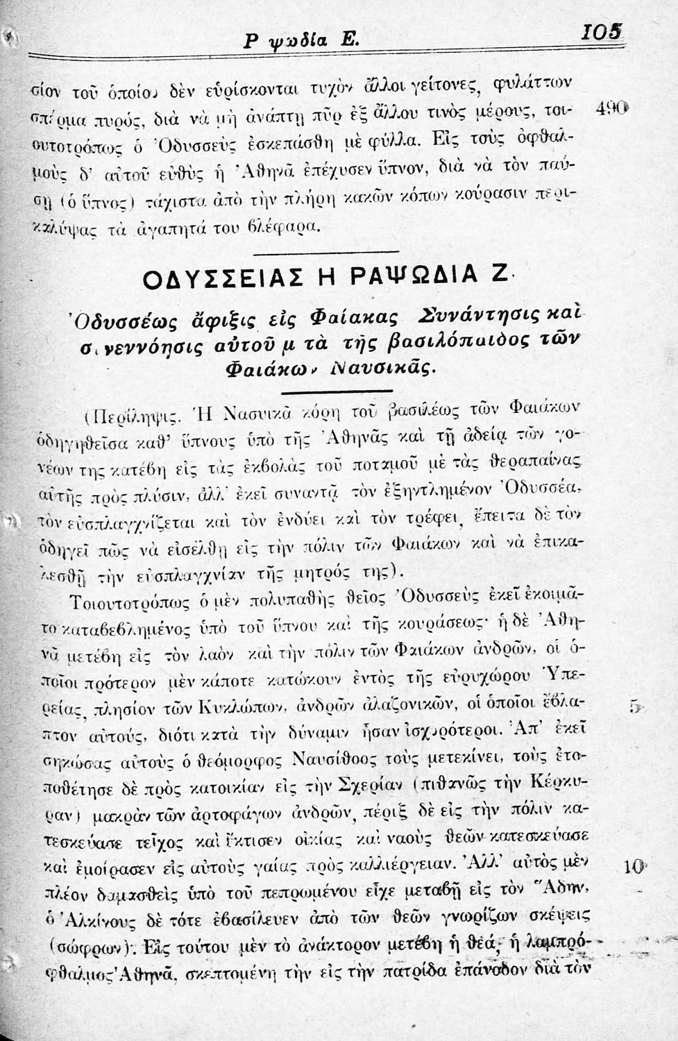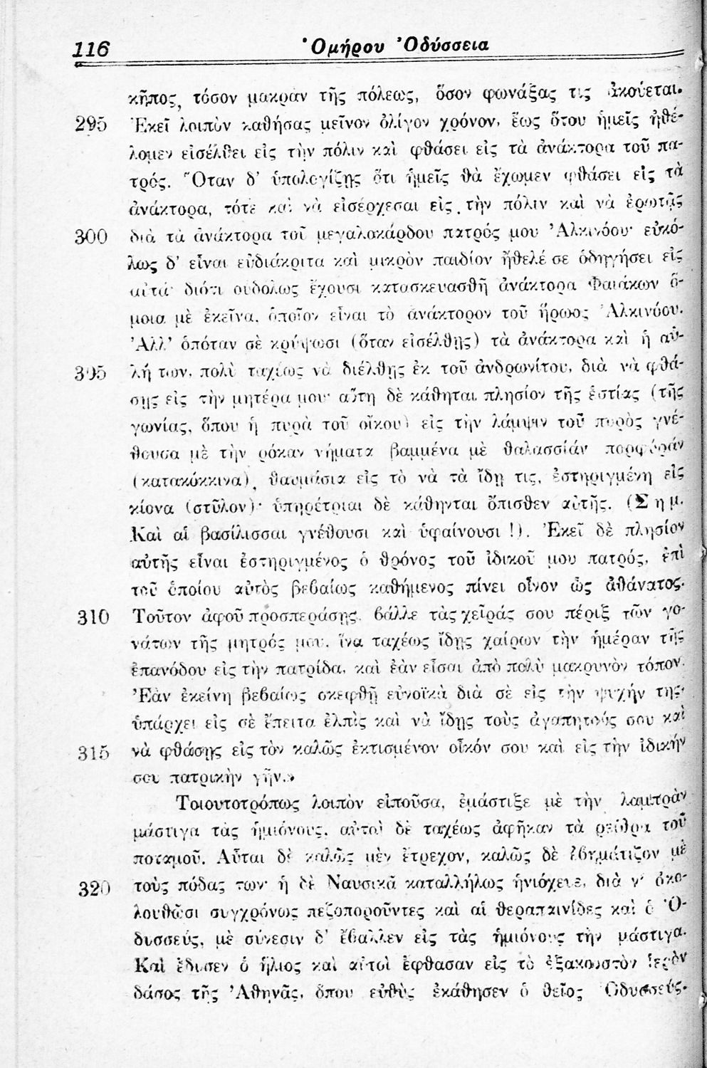 Παιδαγωγικό βοήθημα Αρχαίων Ελληνικών που περιλαμβάνει μετάφραση της Ομήρου Οδύσσειας στη νέα ελληνική, εισαγωγή στην επική ποίηση και στην Οδύσσεια, περιλήψεις και σημειώσεις.