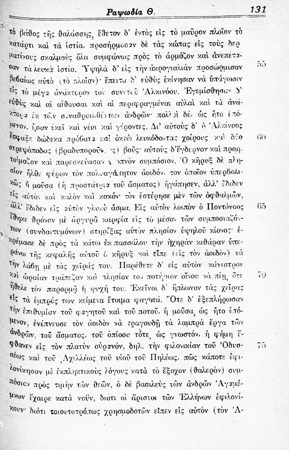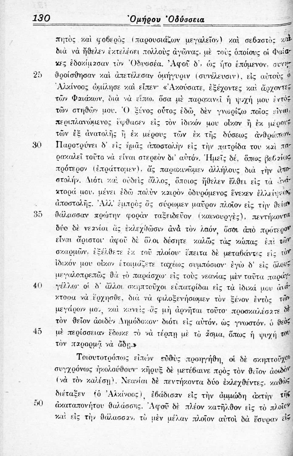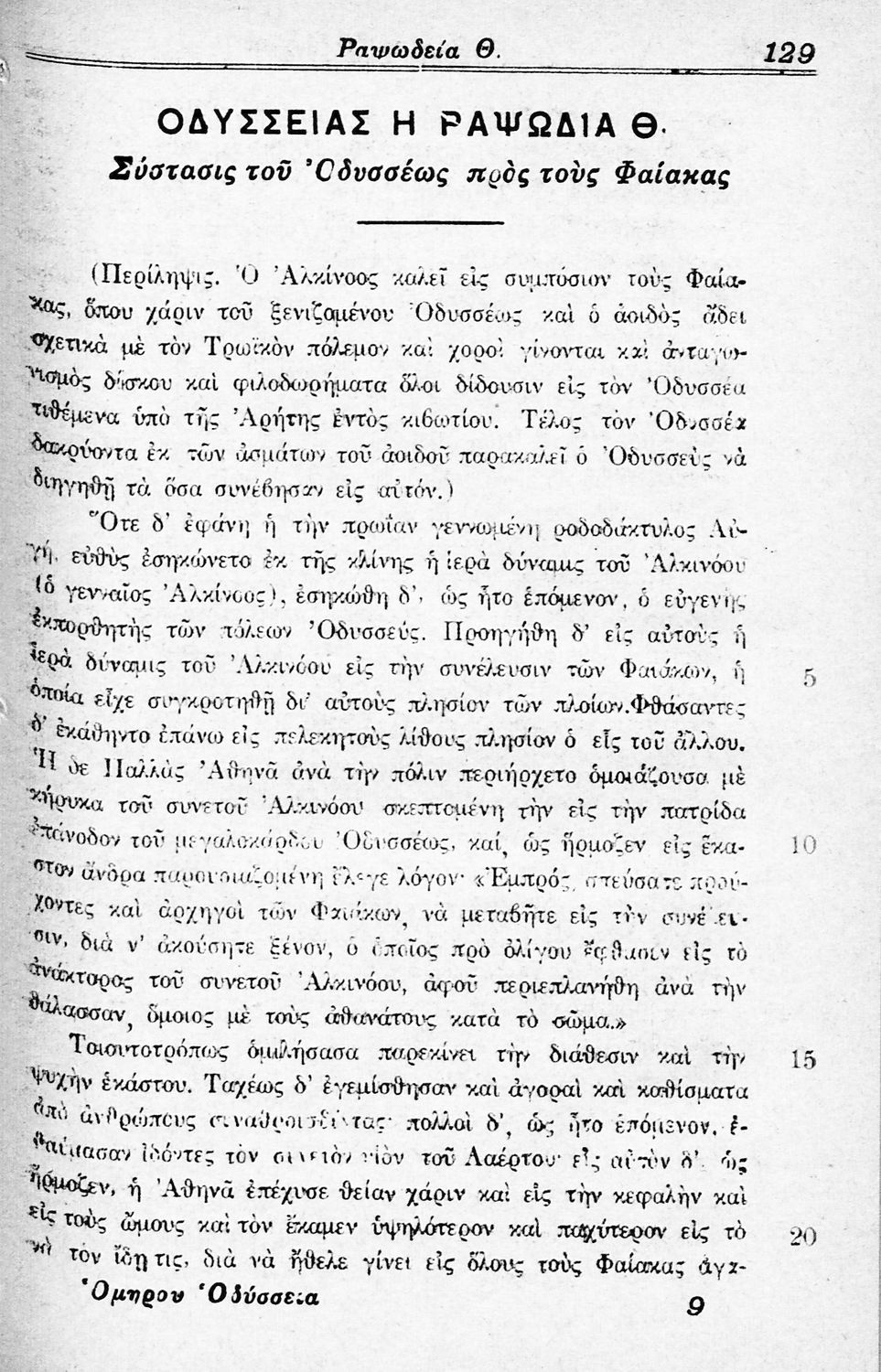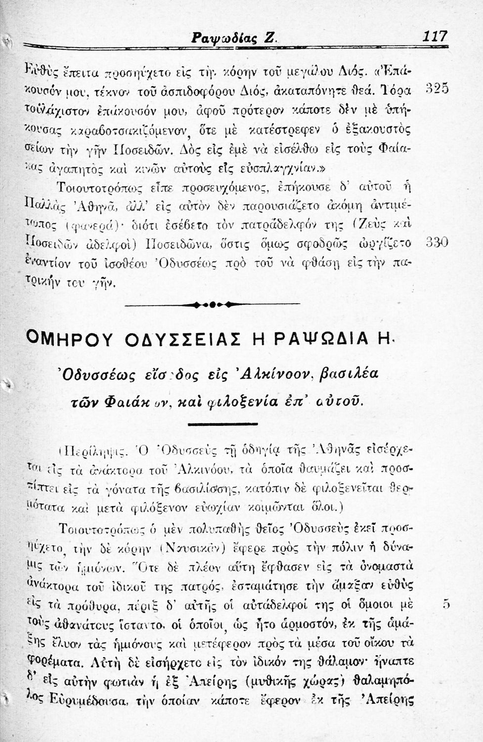 Παιδαγωγικό βοήθημα Αρχαίων Ελληνικών που περιλαμβάνει μετάφραση της Ομήρου Οδύσσειας στη νέα ελληνική, εισαγωγή στην επική ποίηση και στην Οδύσσεια, περιλήψεις και σημειώσεις.