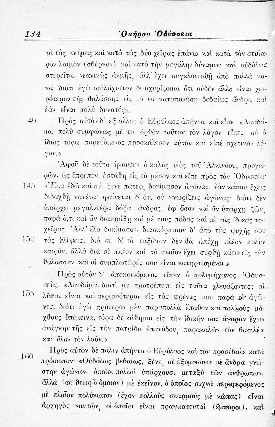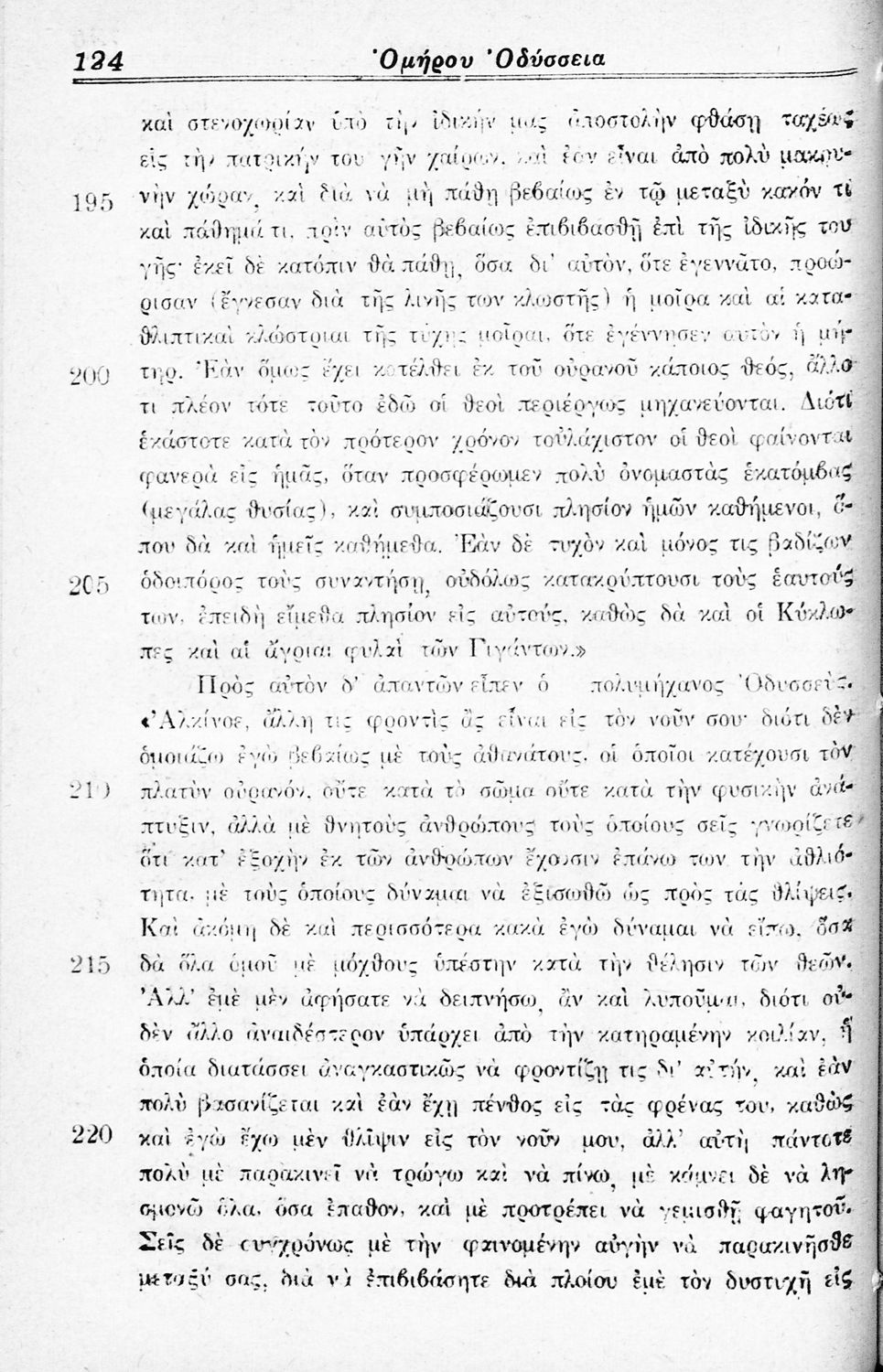 Σχολικό εγχειρίδιο της Α΄, Β΄, Γ΄ Γυμνασίου για το μάθημα των Αρχαίων Ελληνικών. Περιέχει τις ραψωδίες της Οδύσσειας, μετάφραση, ερμηνευτικά και πραγματολογικά σχόλια, καθώς και γραμματικές παρατηρήσεις.