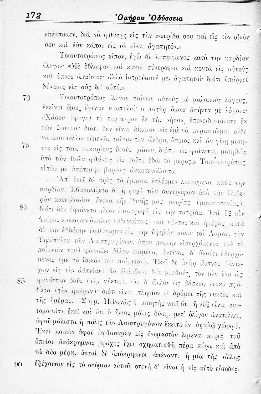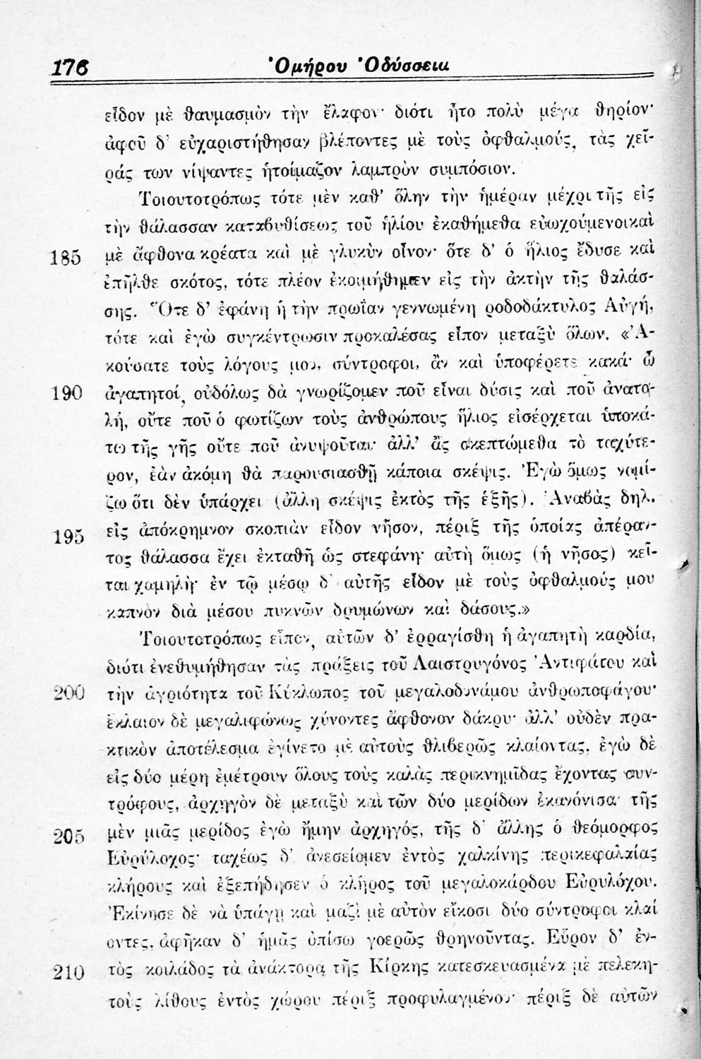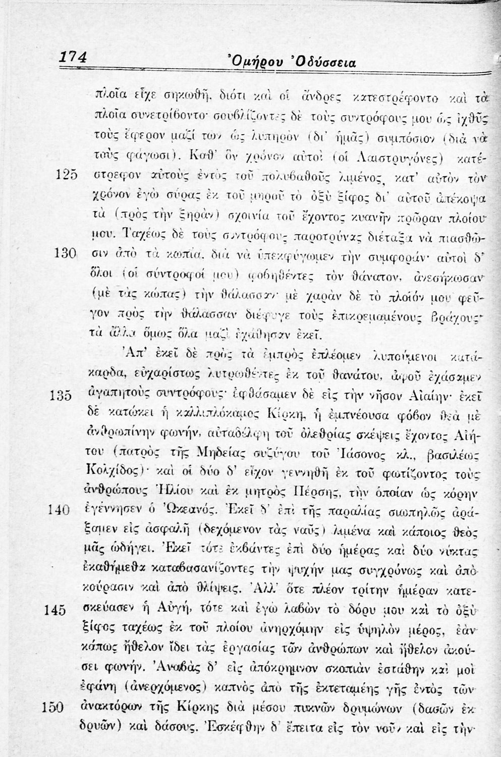 Παιδαγωγικό βοήθημα Αρχαίων Ελληνικών που περιλαμβάνει μετάφραση της Ομήρου Οδύσσειας στη νέα ελληνική, εισαγωγή στην επική ποίηση και στην Οδύσσεια, περιλήψεις και σημειώσεις.
