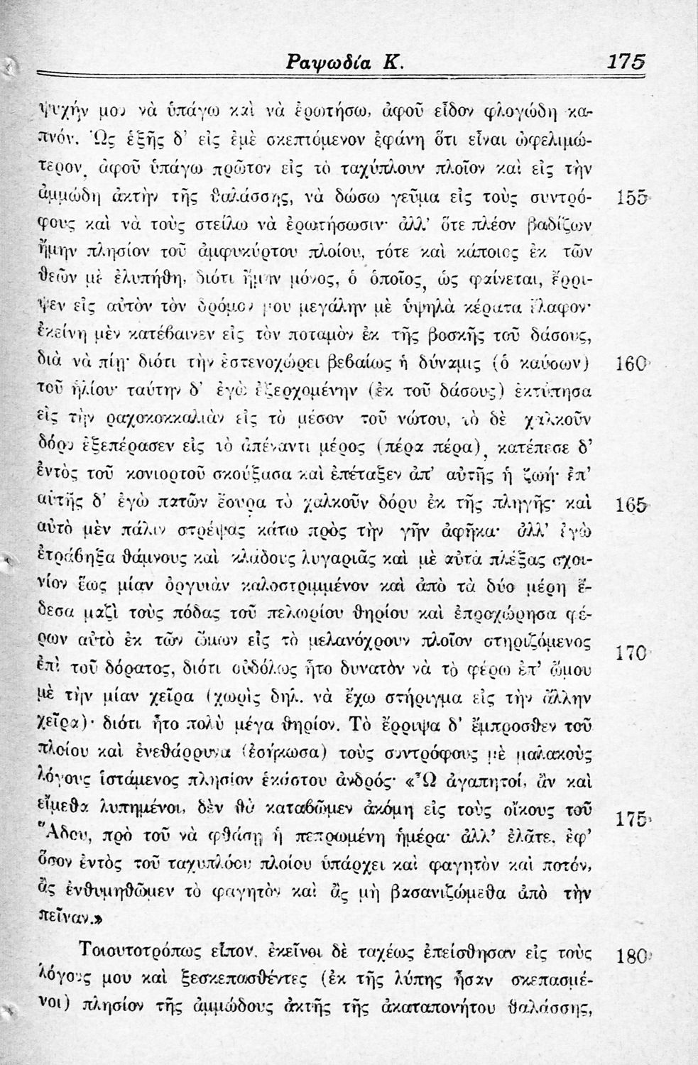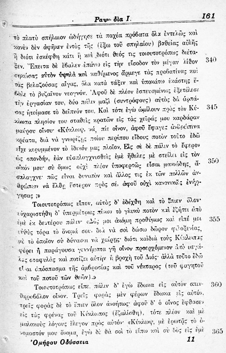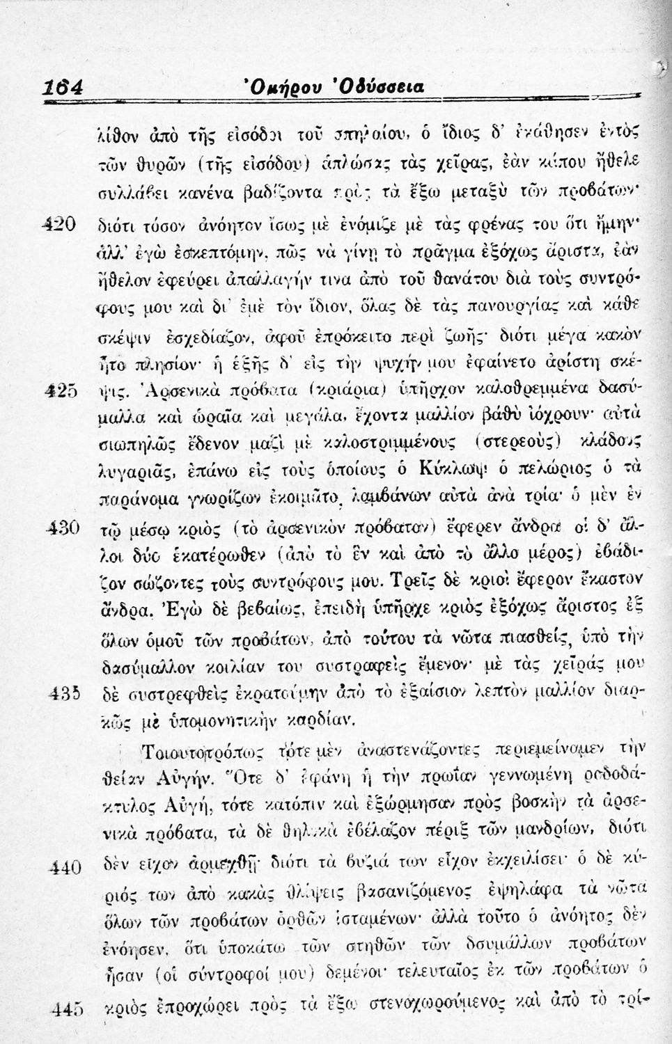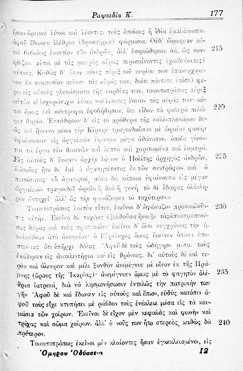 Παιδαγωγικό βοήθημα Αρχαίων Ελληνικών που περιλαμβάνει μετάφραση της Ομήρου Οδύσσειας στη νέα ελληνική, εισαγωγή στην επική ποίηση και στην Οδύσσεια, περιλήψεις και σημειώσεις.