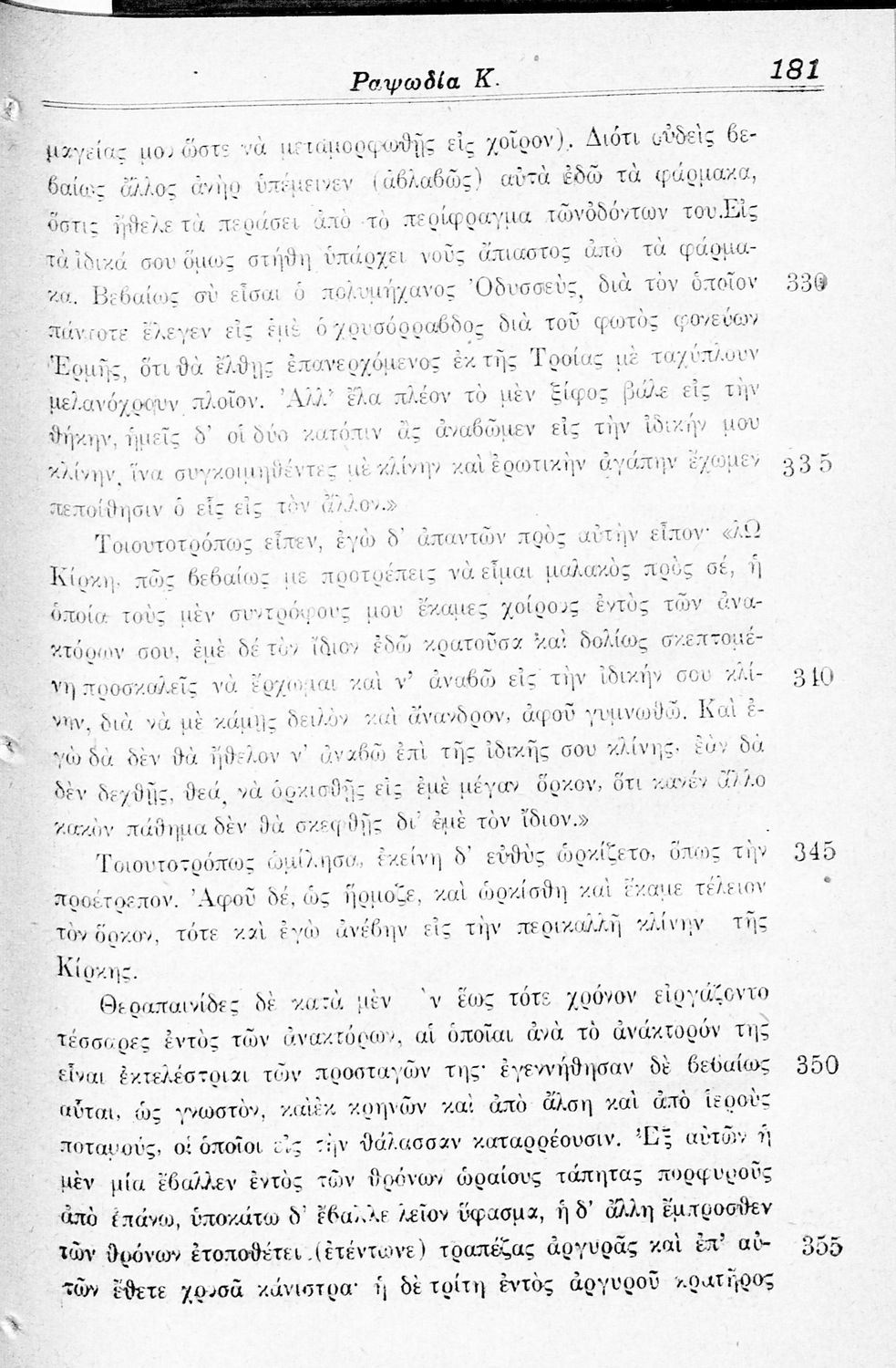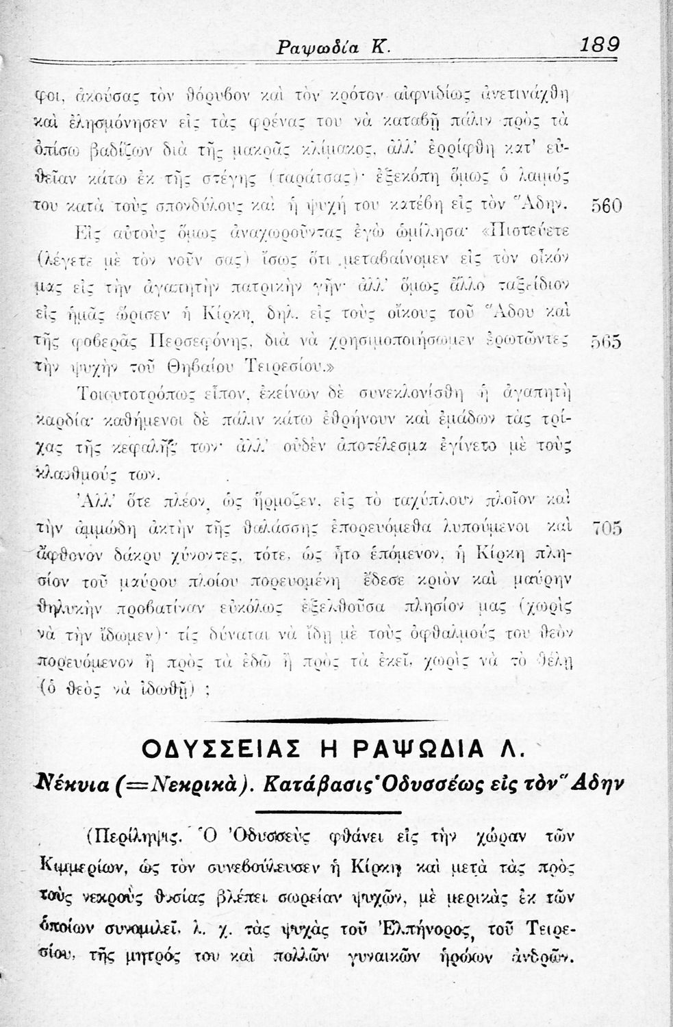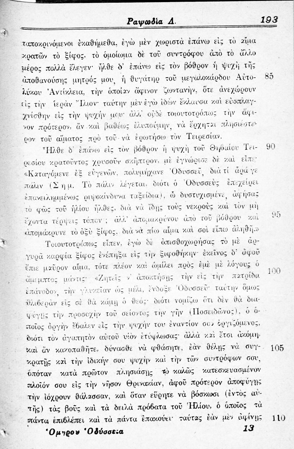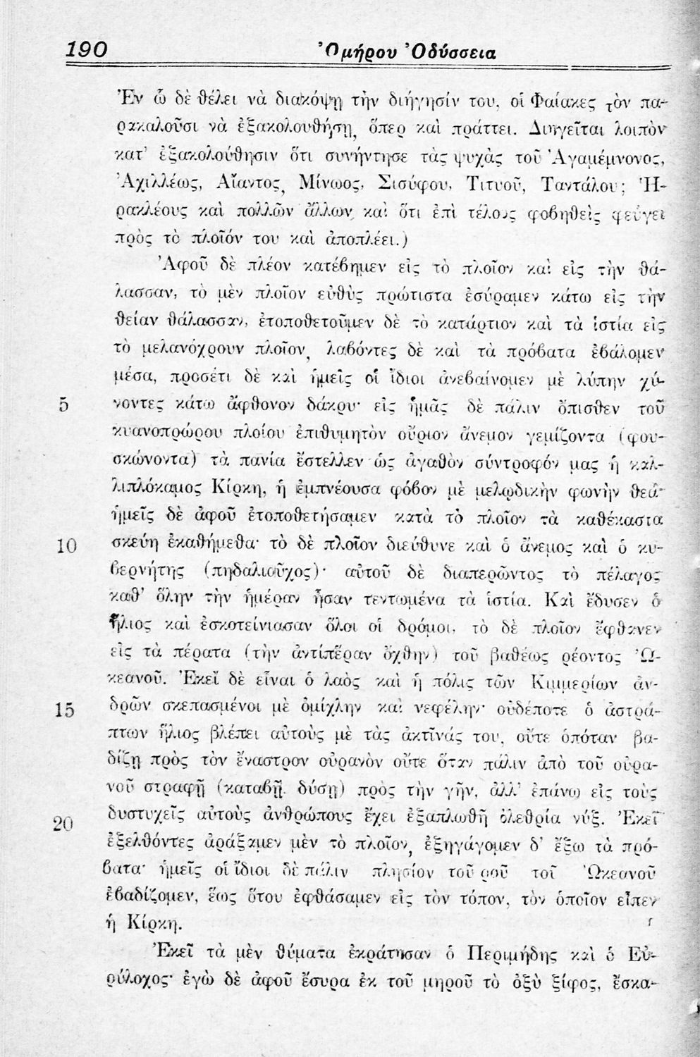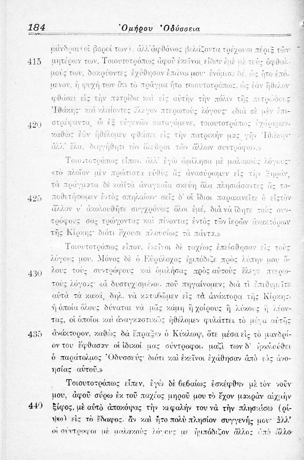 Παιδαγωγικό βοήθημα Αρχαίων Ελληνικών που περιλαμβάνει μετάφραση της Ομήρου Οδύσσειας στη νέα ελληνική, εισαγωγή στην επική ποίηση και στην Οδύσσεια, περιλήψεις και σημειώσεις.