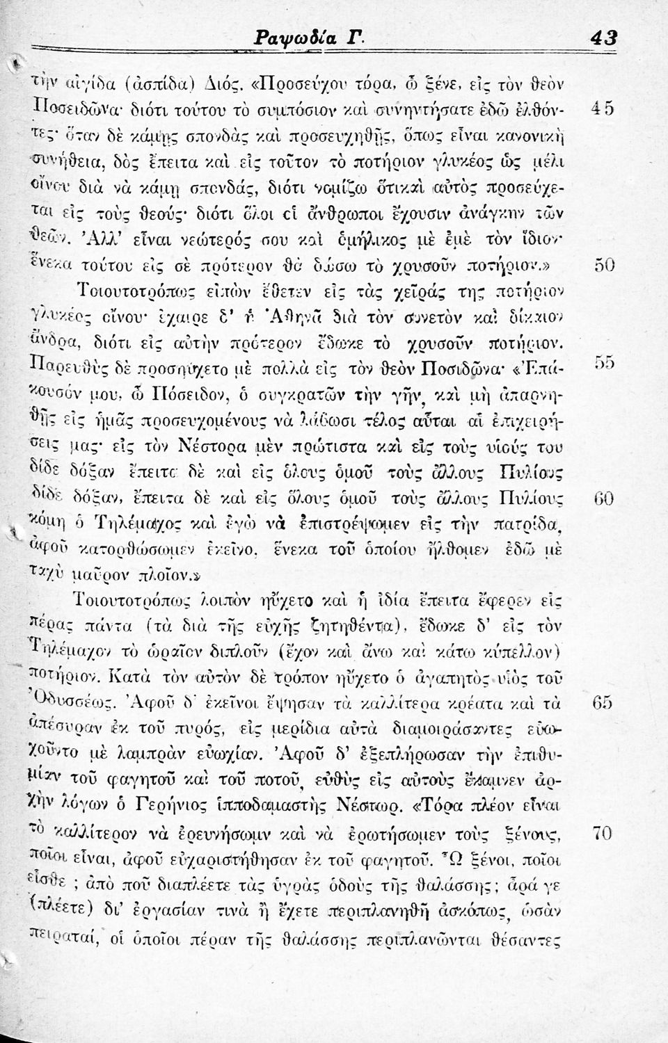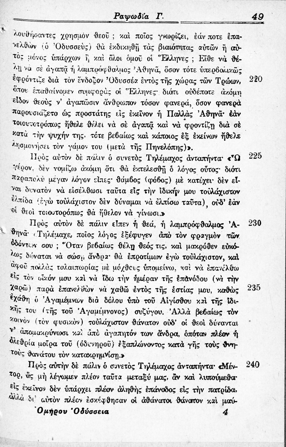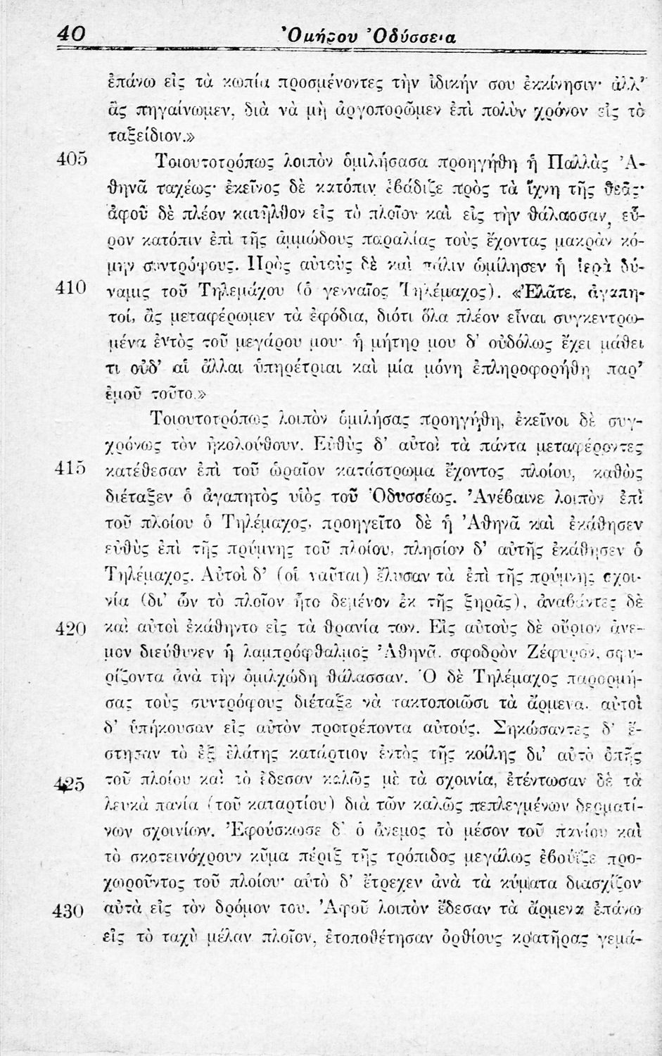 Παιδαγωγικό βοήθημα Αρχαίων Ελληνικών που περιλαμβάνει μετάφραση της Ομήρου Οδύσσειας στη νέα ελληνική, εισαγωγή στην επική ποίηση και στην Οδύσσεια, περιλήψεις και σημειώσεις.