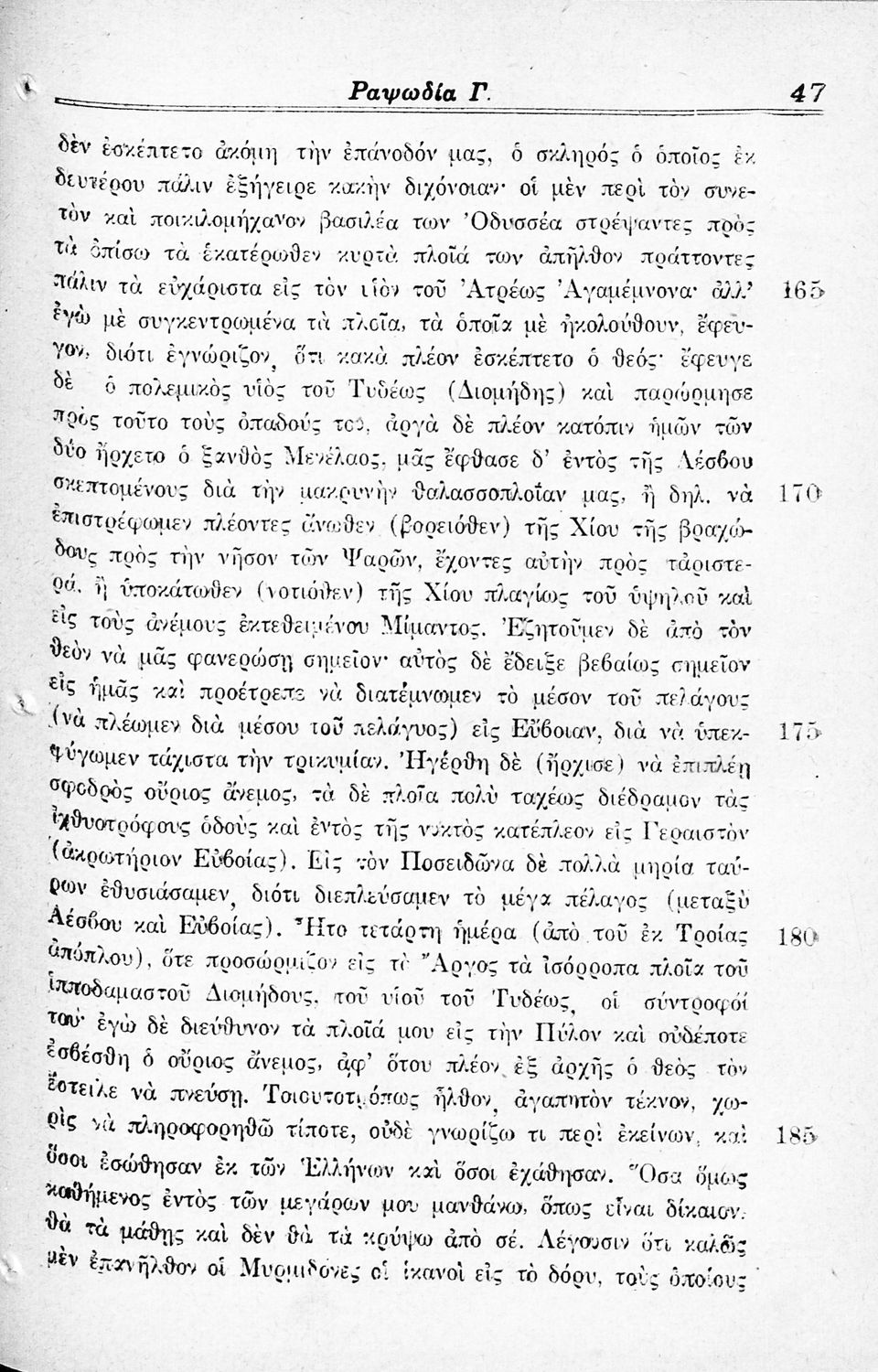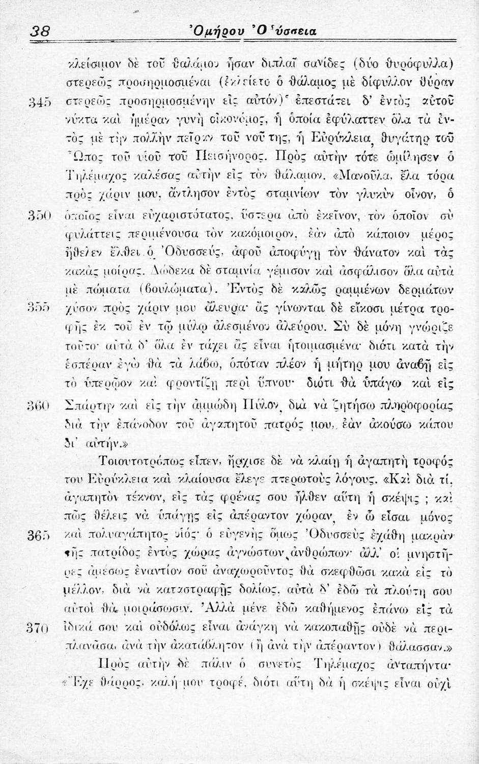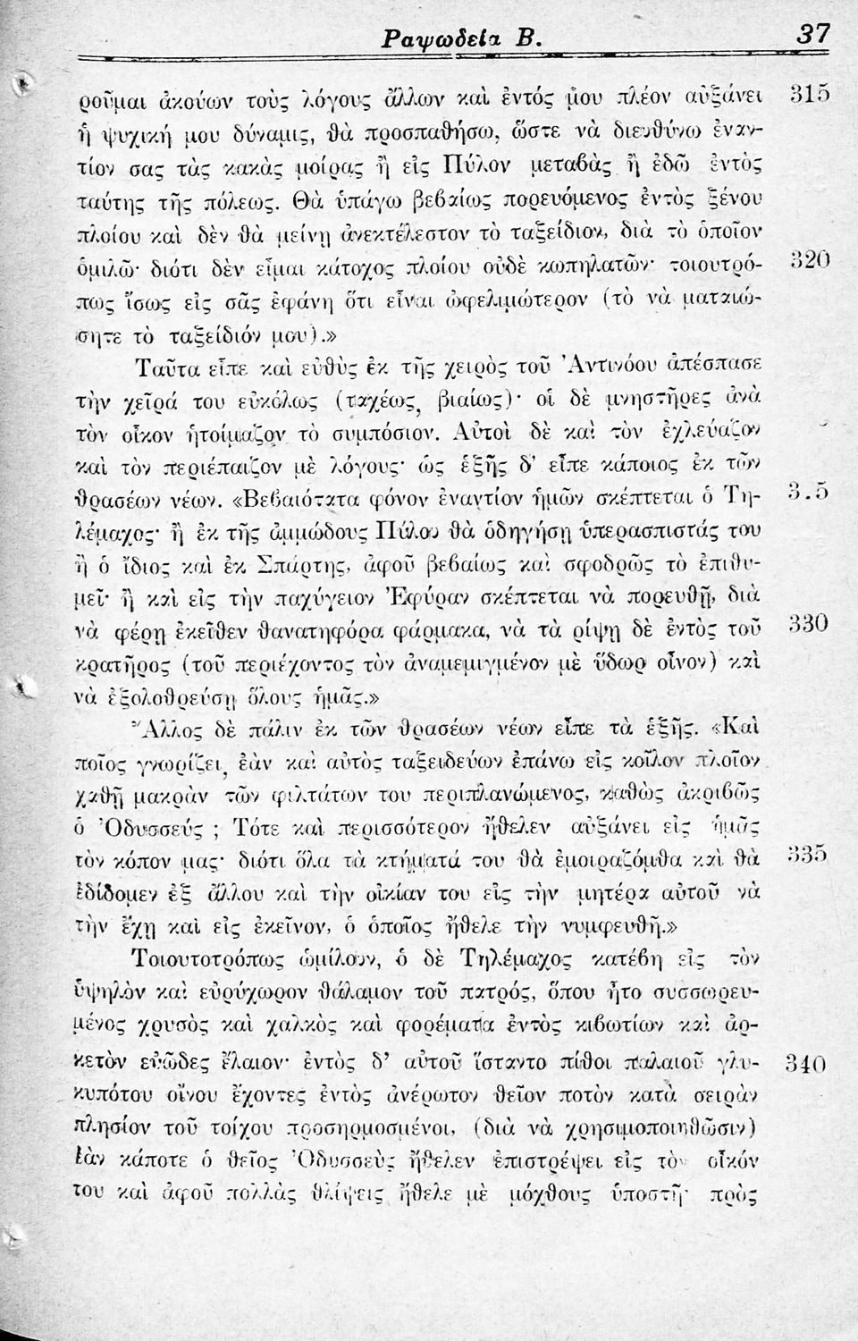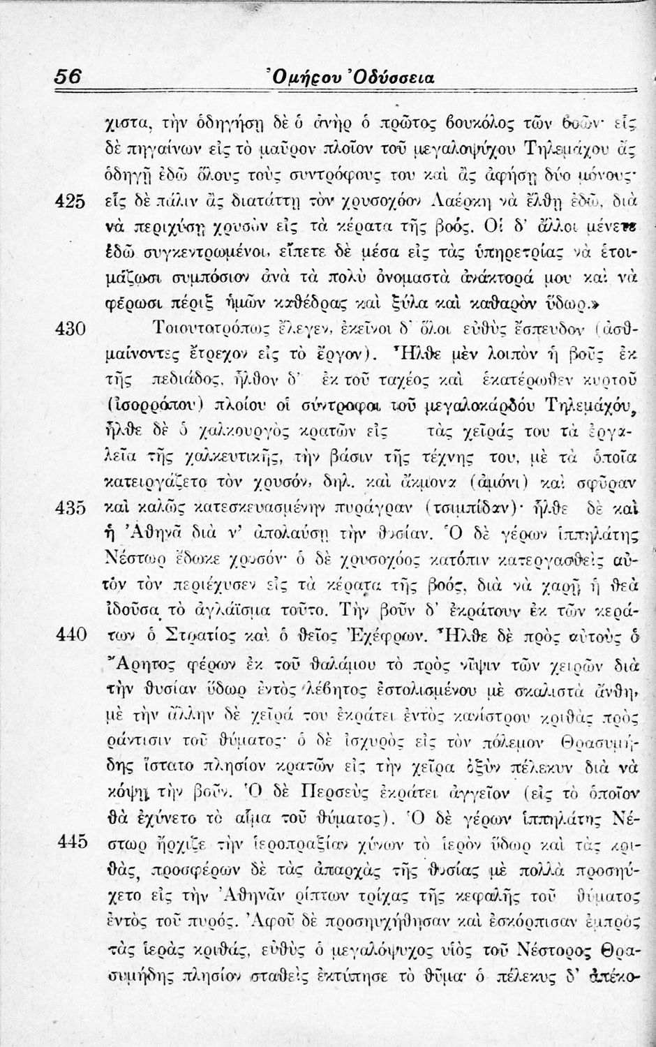 Παιδαγωγικό βοήθημα Αρχαίων Ελληνικών που περιλαμβάνει μετάφραση της Ομήρου Οδύσσειας στη νέα ελληνική, εισαγωγή στην επική ποίηση και στην Οδύσσεια, περιλήψεις και σημειώσεις.