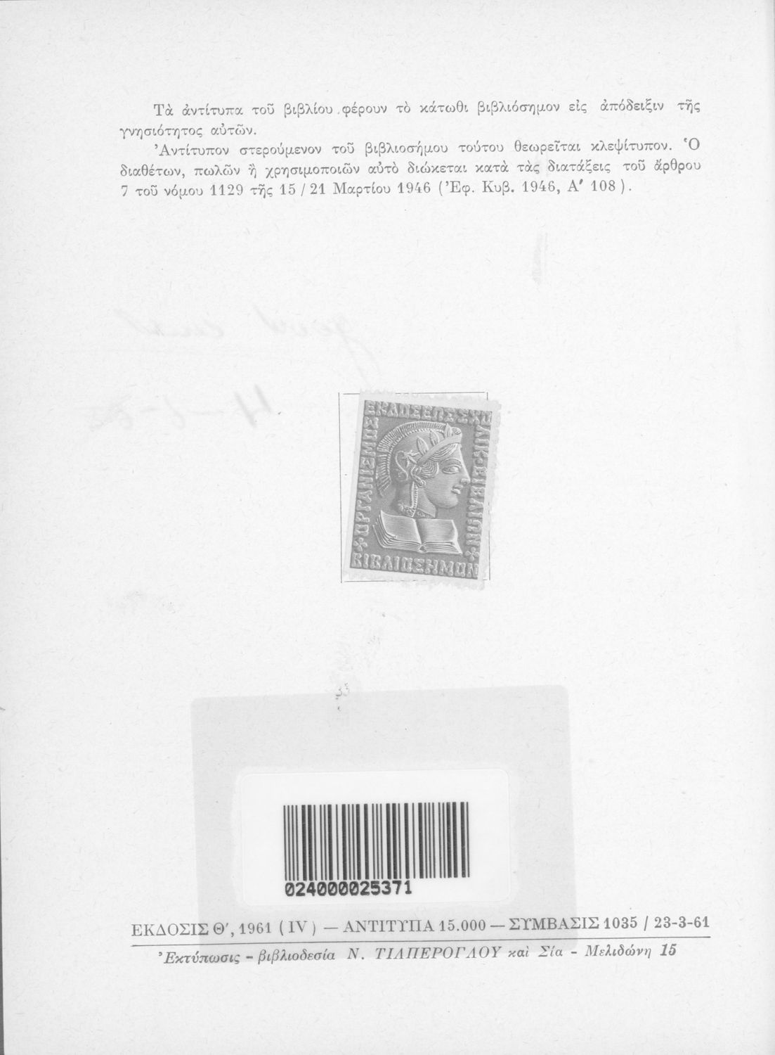 Εκδότης: Οργανισμός Εκδόσεως Σχολικών Βιβλίων Έτος έκδοσης: 1961 Τόπος έκδοσης: Αθήνα Έκδοση: 9η Υπουργική απόφαση / Σύμβαση: 1035/23-3-1961 Έτος έγκρισης: 1961 |
