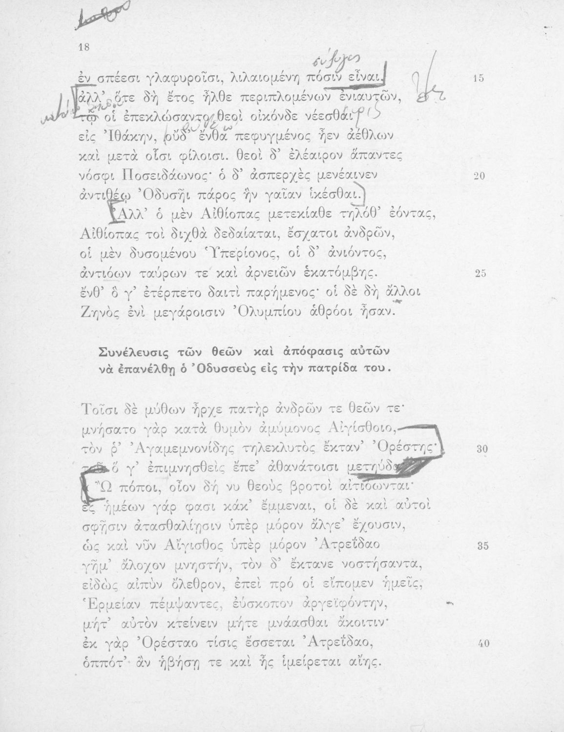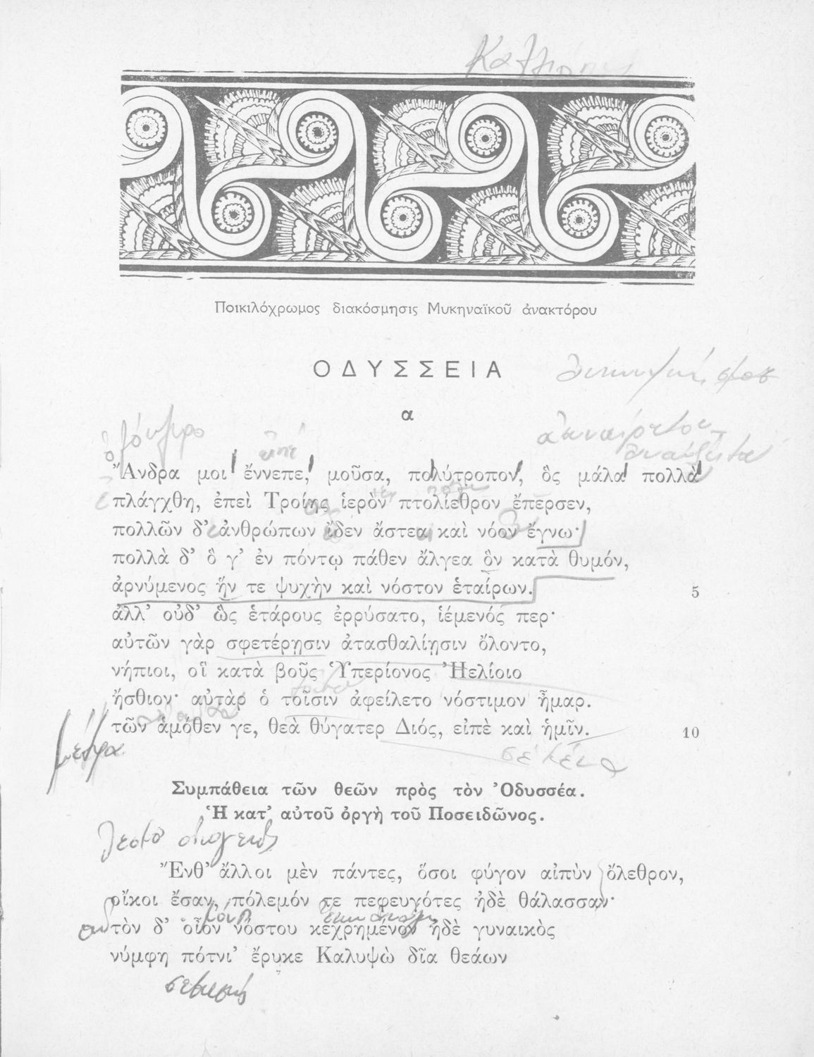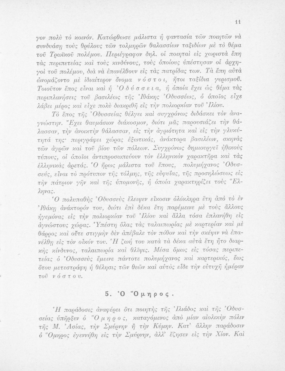 Σχολικό εγχειρίδιο Αρχαίων Ελληνικών Γυμνασίου που περιλαμβάνει αποσπάσματα από τις ραψωδίες της Οδύσσειας, ερμηνευτικά και πραγματολογικά σχόλια, και λεξιλογικές παρατηρήσεις.