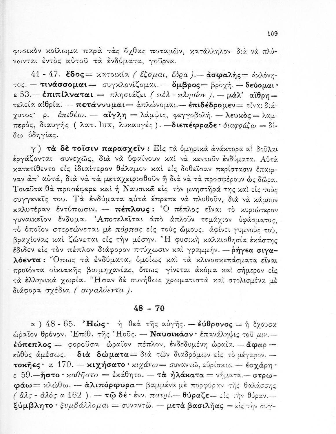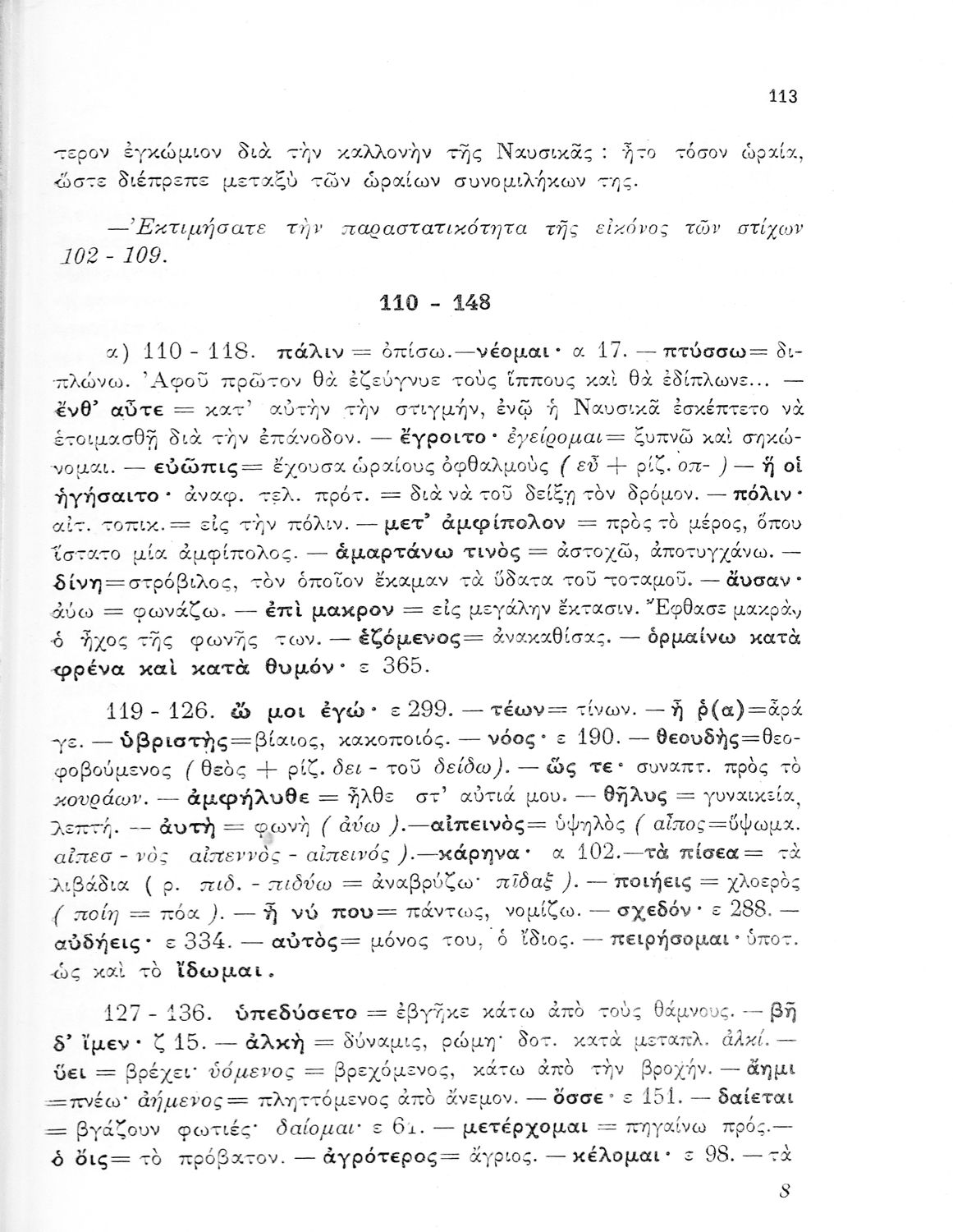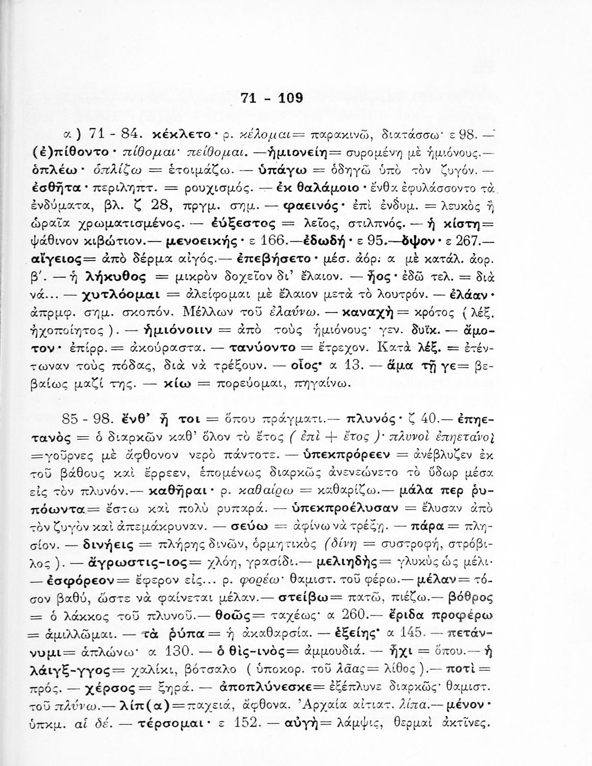 Σχολικό εγχειρίδιο Αρχαίων Ελληνικών Γυμνασίου που περιλαμβάνει μετάφραση της Οδύσσειας και λεξιλόγιο.