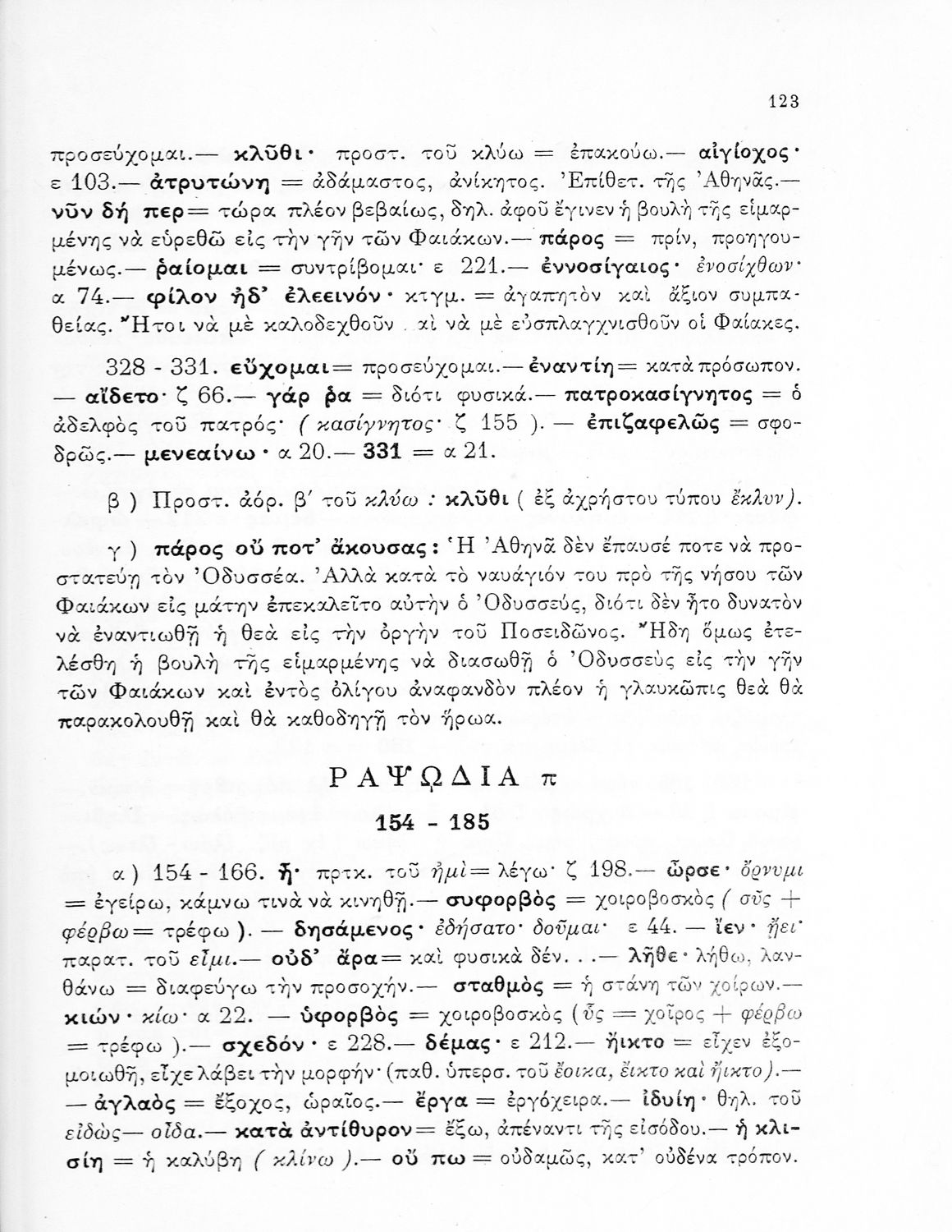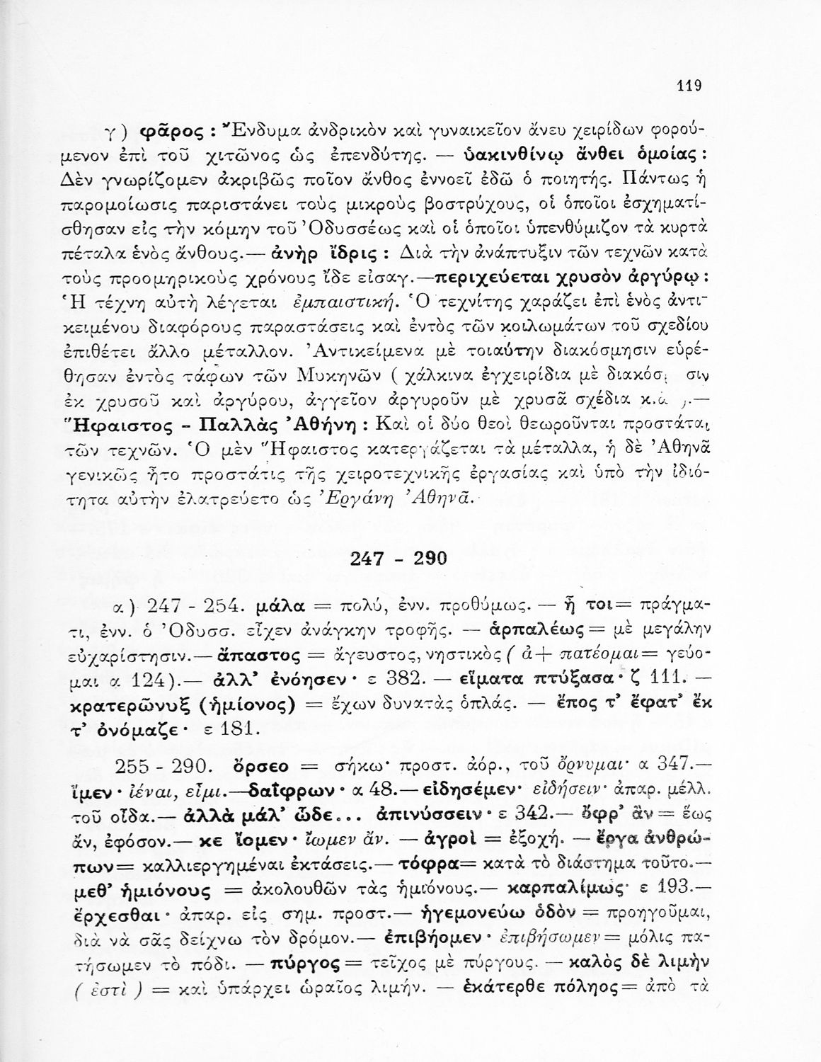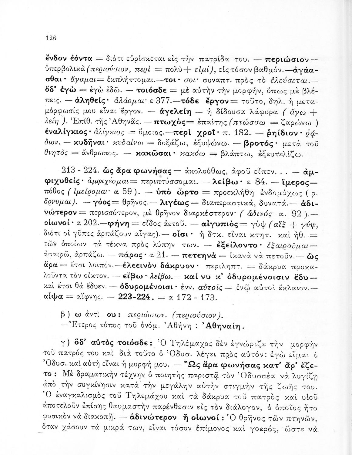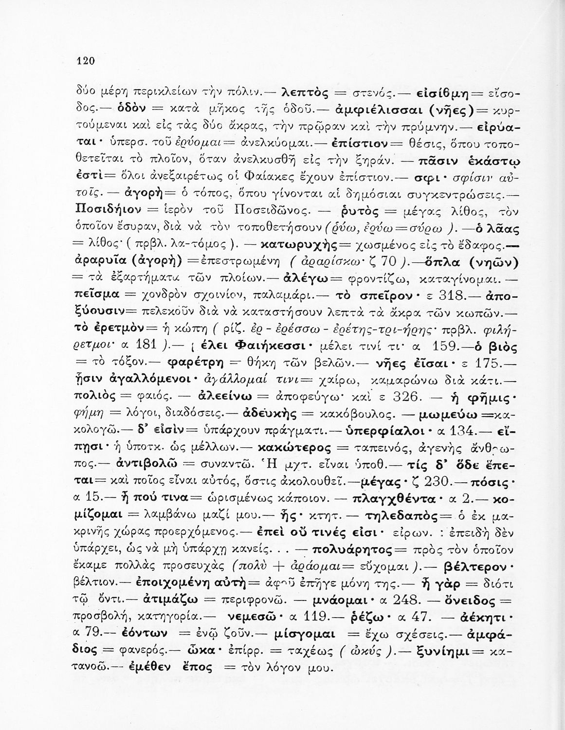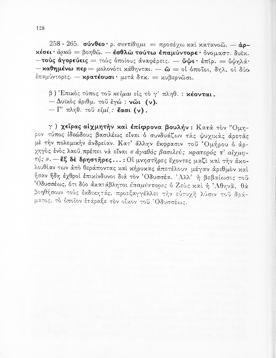 Σχολικό εγχειρίδιο Αρχαίων Ελληνικών Γυμνασίου που περιλαμβάνει μετάφραση της Οδύσσειας και λεξιλόγιο.