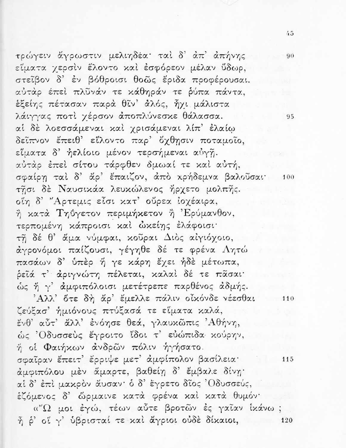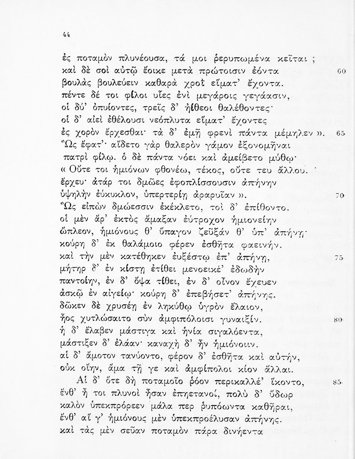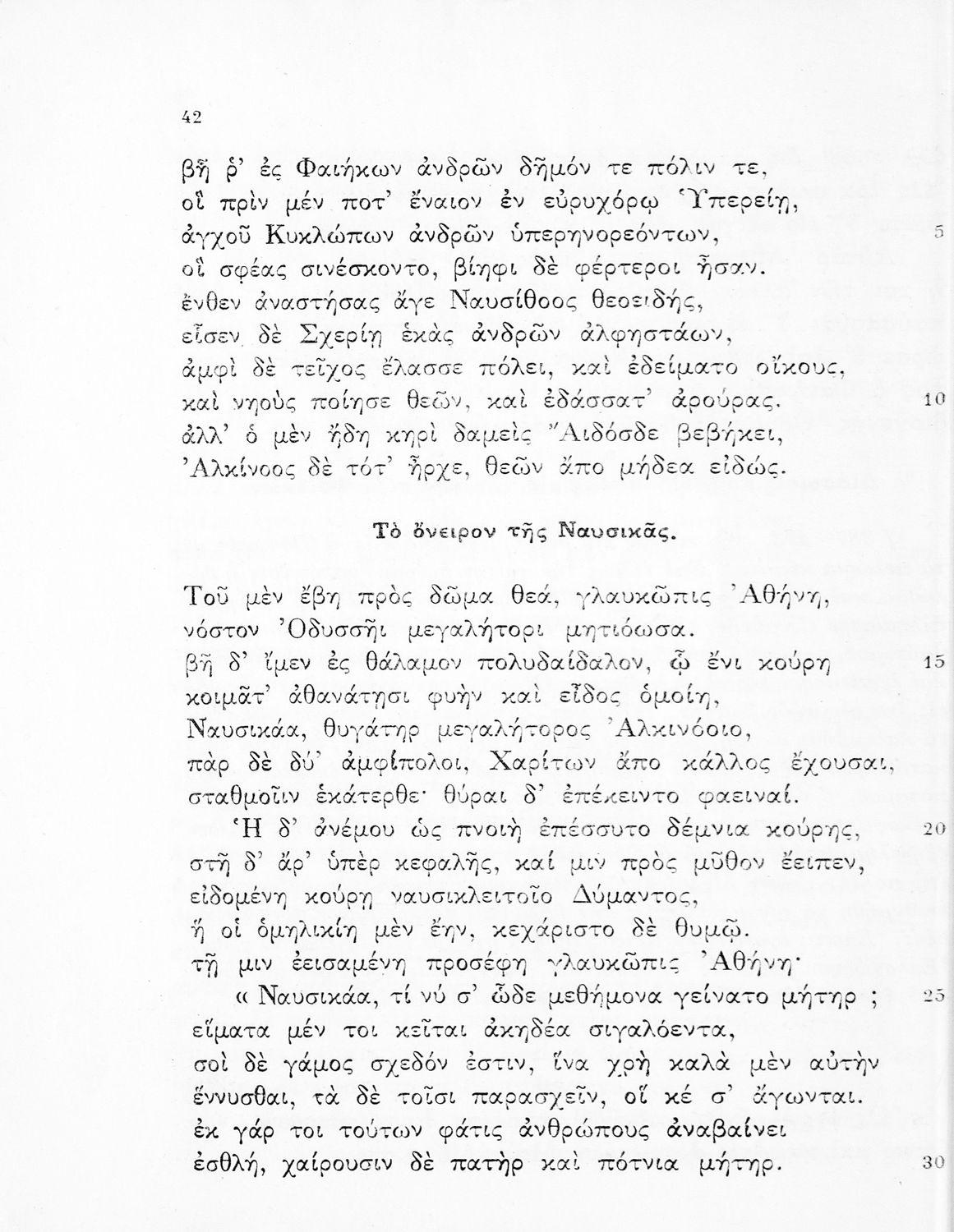 Σχολικό εγχειρίδιο της Ε΄ Γυμνασίου για το μάθημα των Αρχαίων Ελληνικών. Περιέχει αποσπάσματα από τις ραψωδίες της Οδύσσειας, ερμηνευτικά και πραγματολογικά σχόλια και τις γραμματικές παρατηρήσεις.