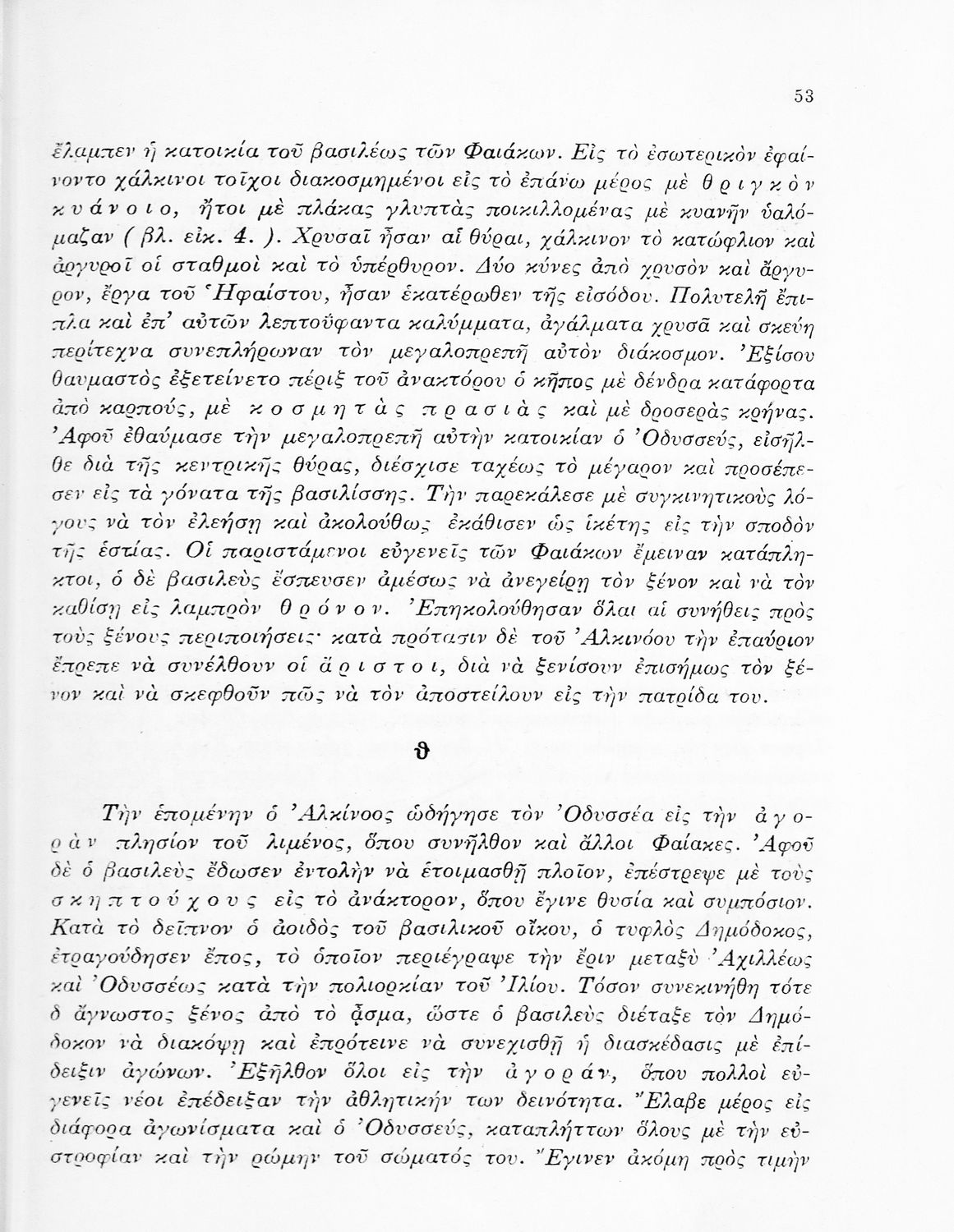 Σχολικό εγχειρίδιο Αρχαίων Ελληνικών Γυμνασίου που περιλαμβάνει αποσπάσματα από τις ραψωδίες της Οδύσσειας, ερμηνευτικά και πραγματολογικά σχόλια, και λεξιλογικές παρατηρήσεις.