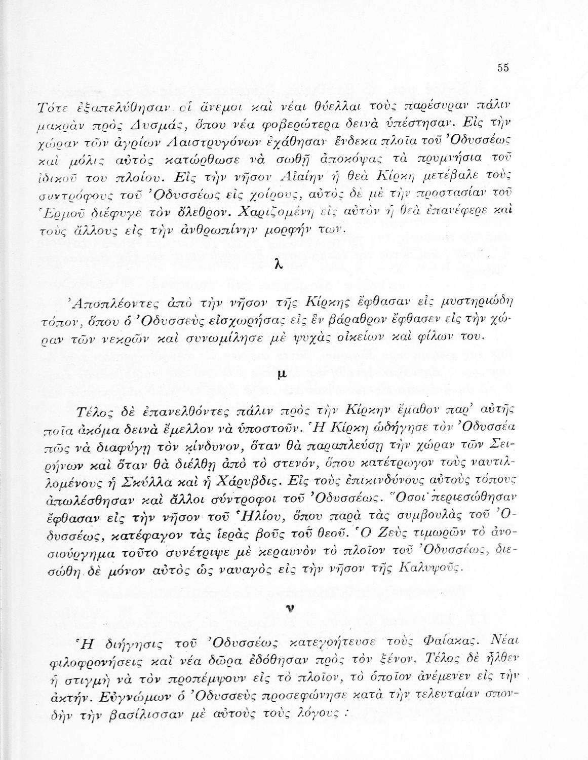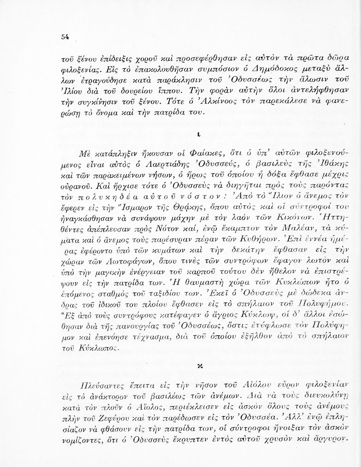 Σχολικό εγχειρίδιο Αρχαίων Ελληνικών Γυμνασίου που περιλαμβάνει μετάφραση της Οδύσσειας και λεξιλόγιο.