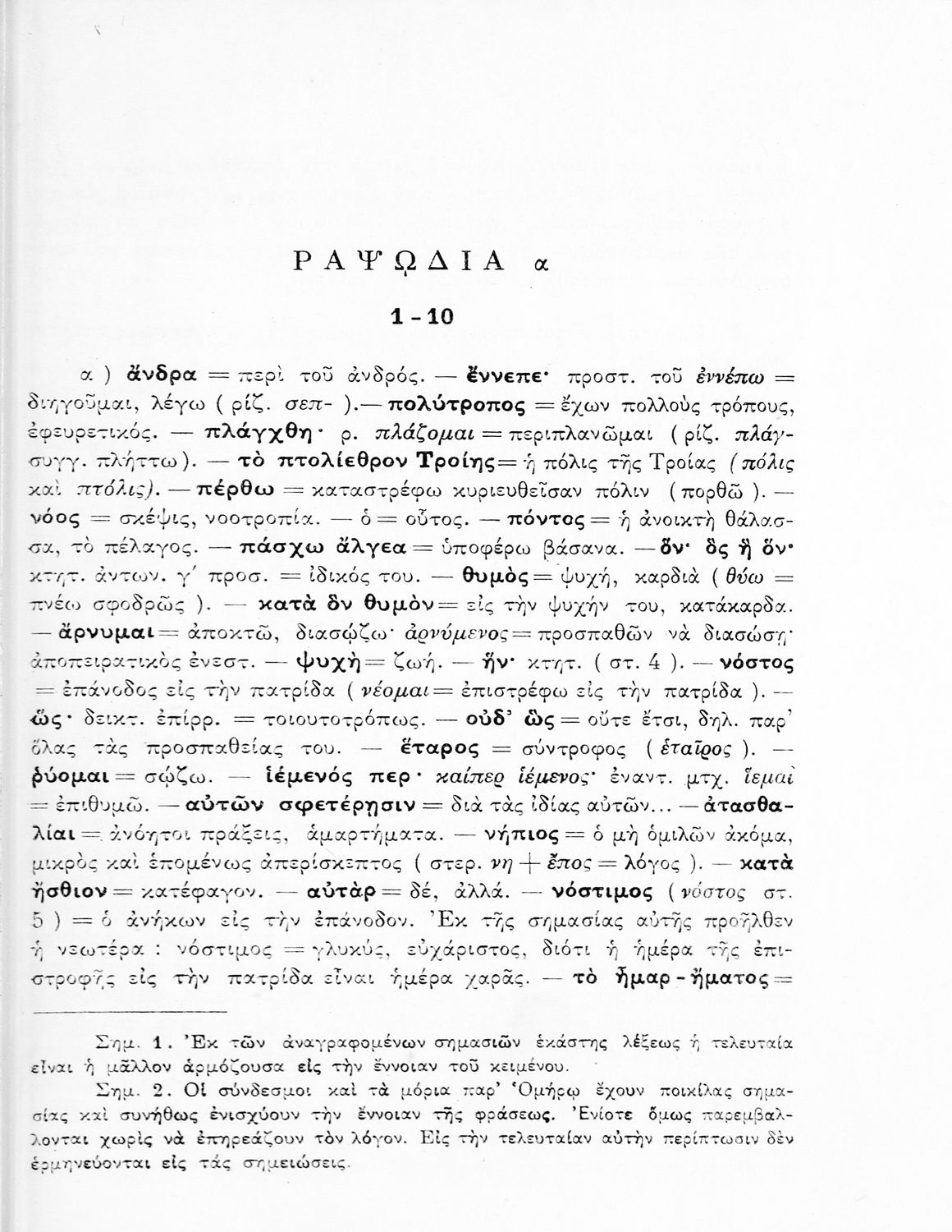 Σχολικό εγχειρίδιο Αρχαίων Ελληνικών Γυμνασίου που περιλαμβάνει αποσπάσματα από τις ραψωδίες της Οδύσσειας, ερμηνευτικά και πραγματολογικά σχόλια, και λεξιλογικές παρατηρήσεις.