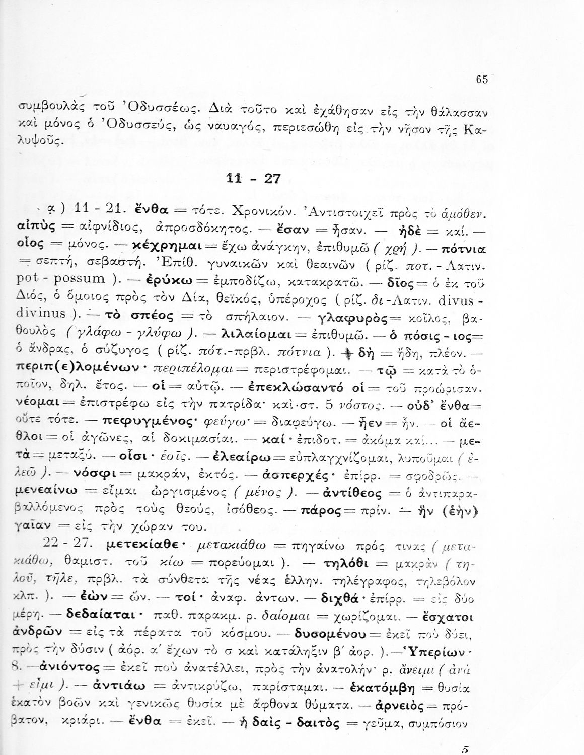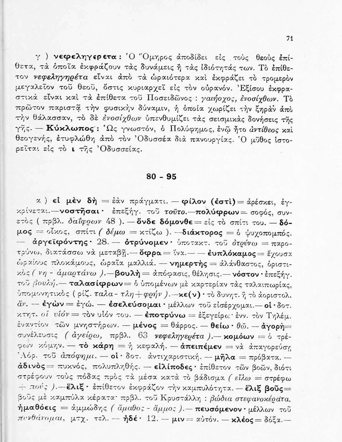 Σχολικό εγχειρίδιο Αρχαίων Ελληνικών Γυμνασίου που περιλαμβάνει μετάφραση της Οδύσσειας και λεξιλόγιο.
