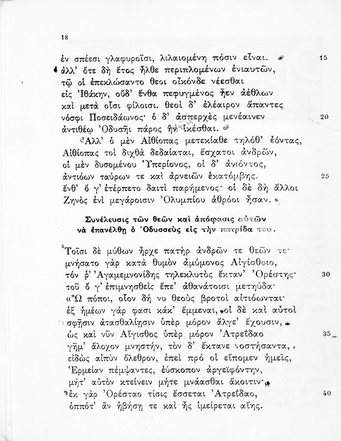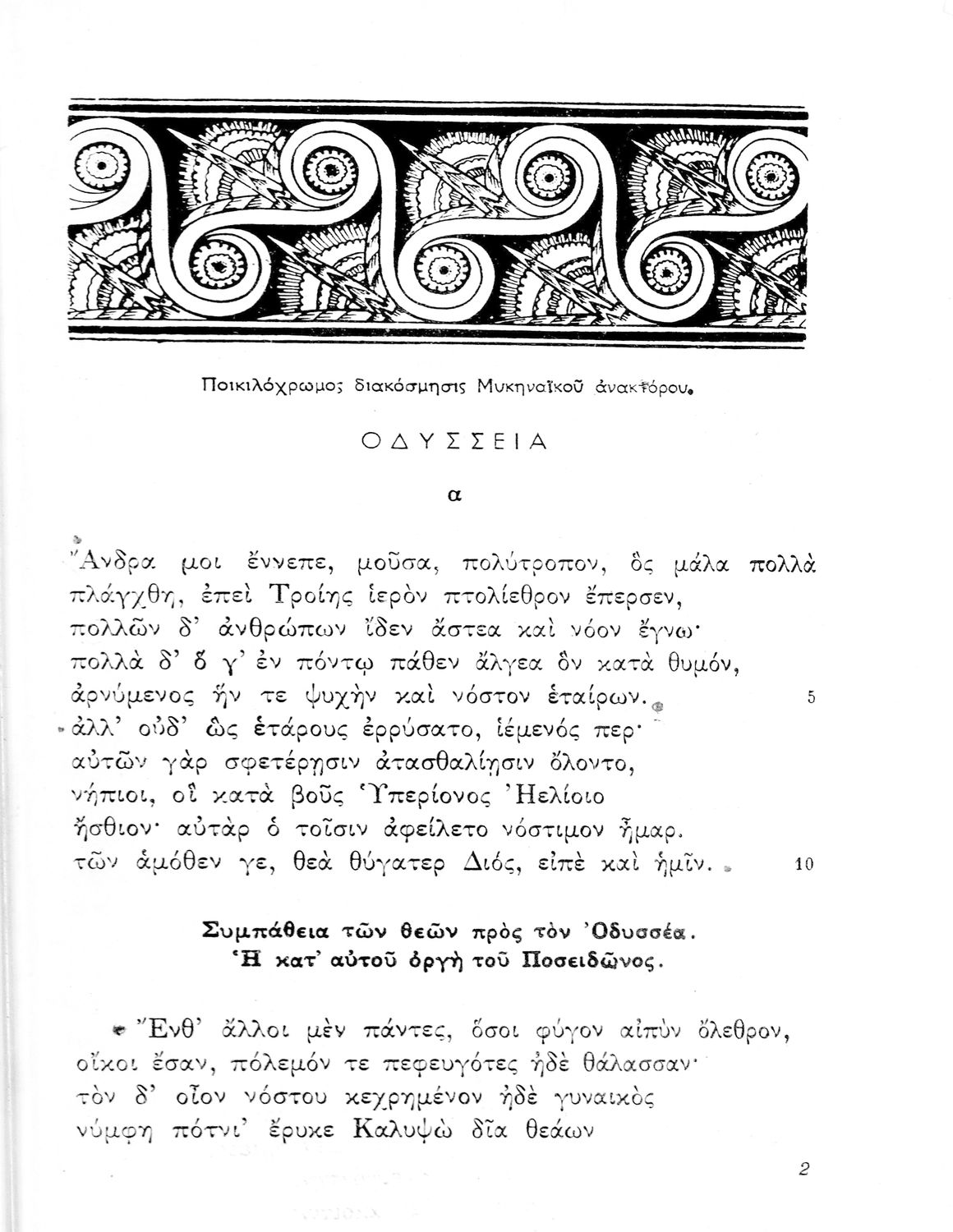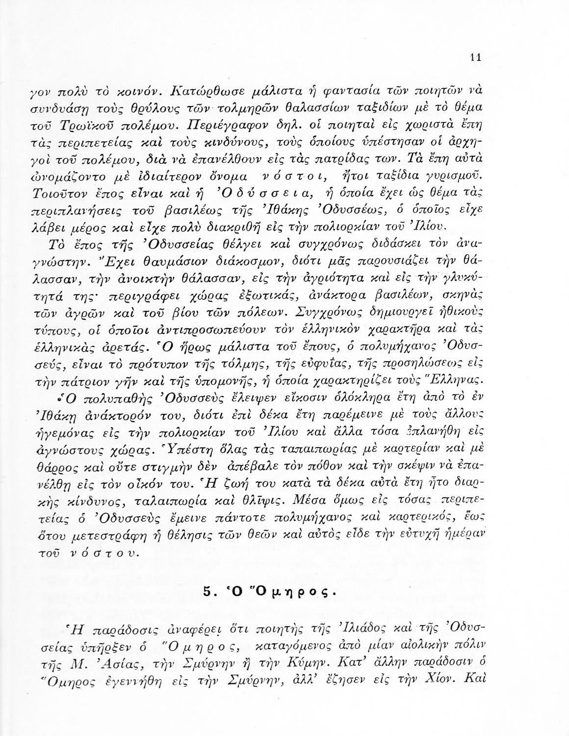 Σχολικό εγχειρίδιο της Ε΄ Γυμνασίου για το μάθημα των Αρχαίων Ελληνικών. Περιέχει αποσπάσματα από τις ραψωδίες της Οδύσσειας, ερμηνευτικά και πραγματολογικά σχόλια και τις γραμματικές παρατηρήσεις.