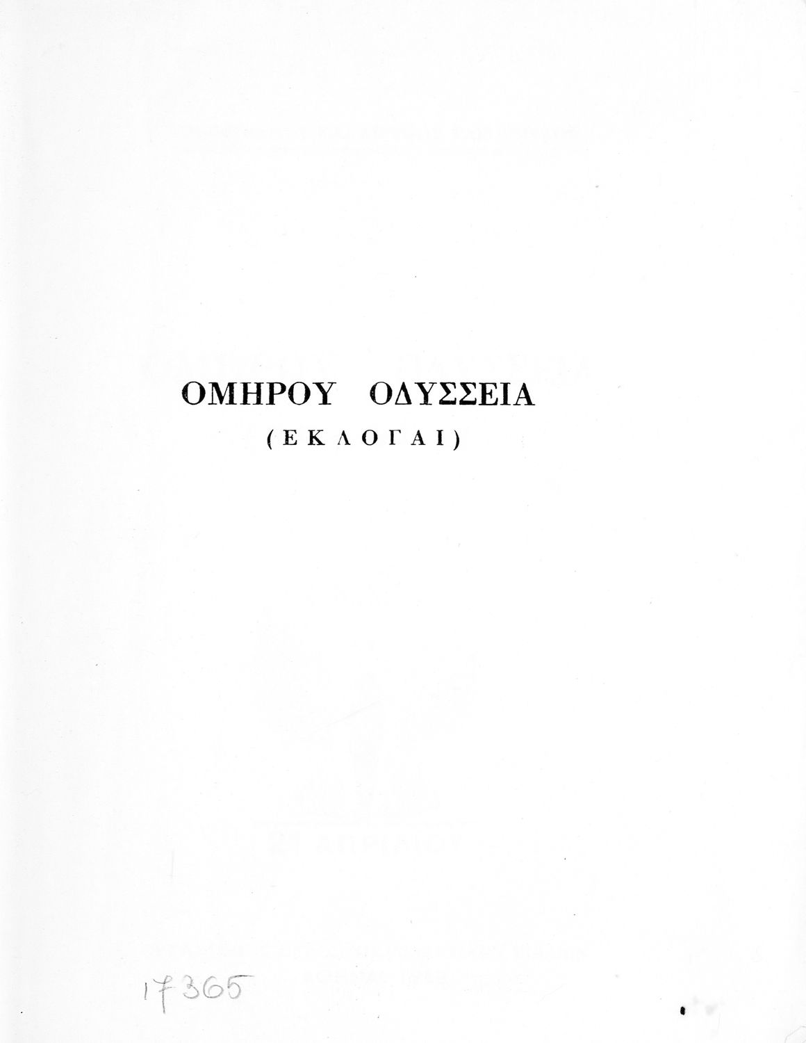 Τίτλος: Ομήρου Οδύσσεια (Εκλογαί)