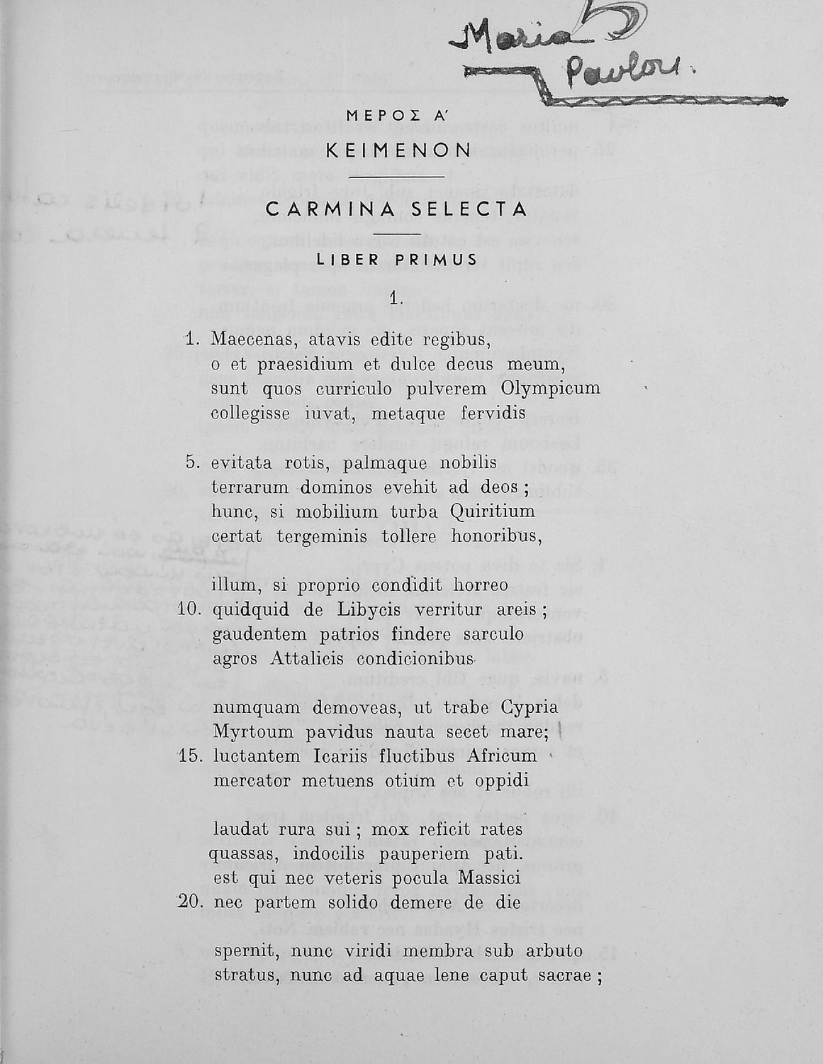 Ουεργιλίου Αινειάς (Εκλογαί), M. Tulli Ciceronis Somnium Scipionis,Οράτιου Ωδαί Τάξις ΣΤ΄