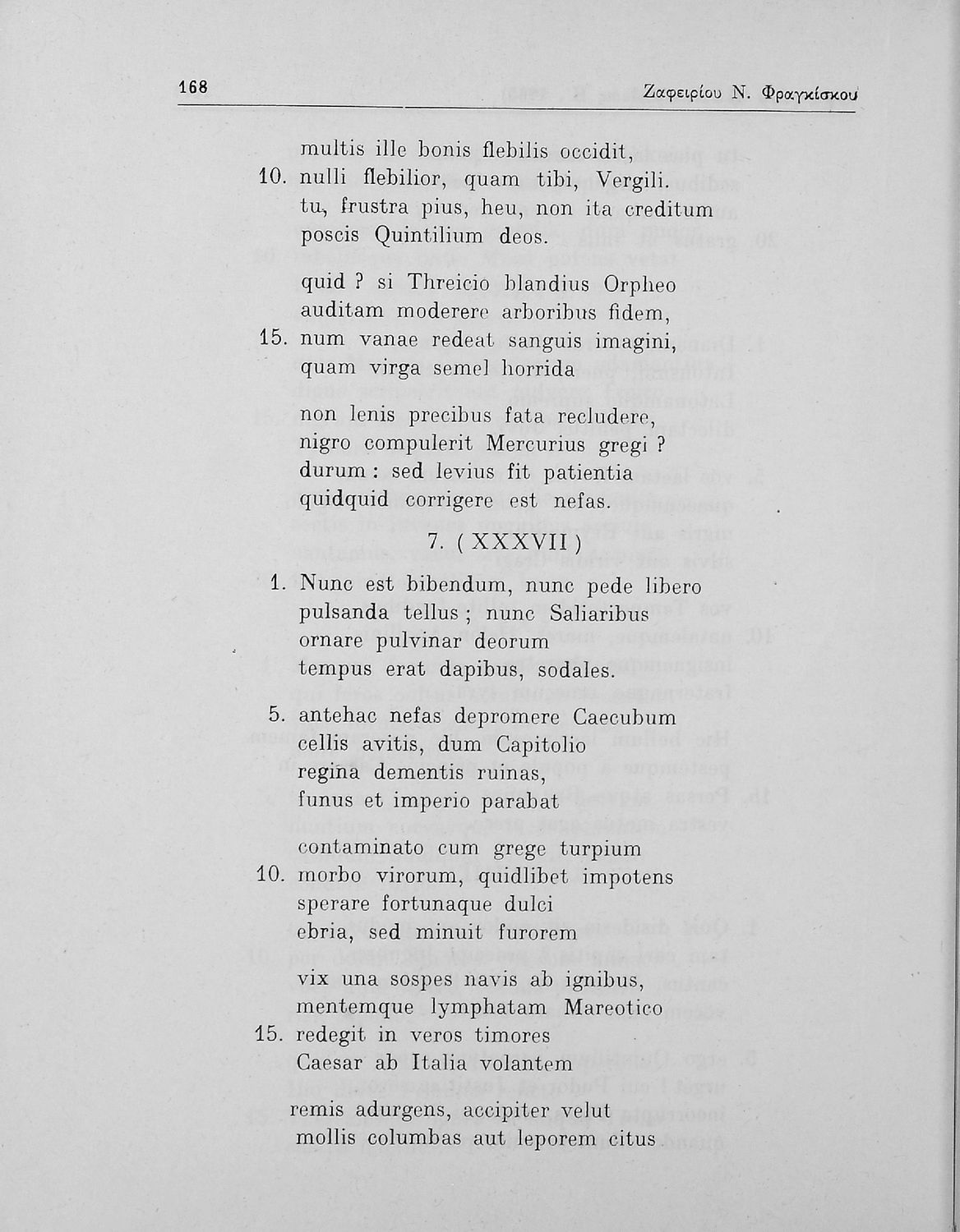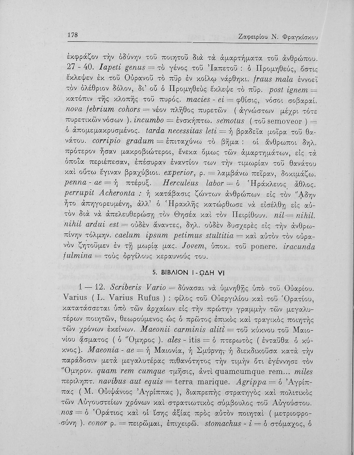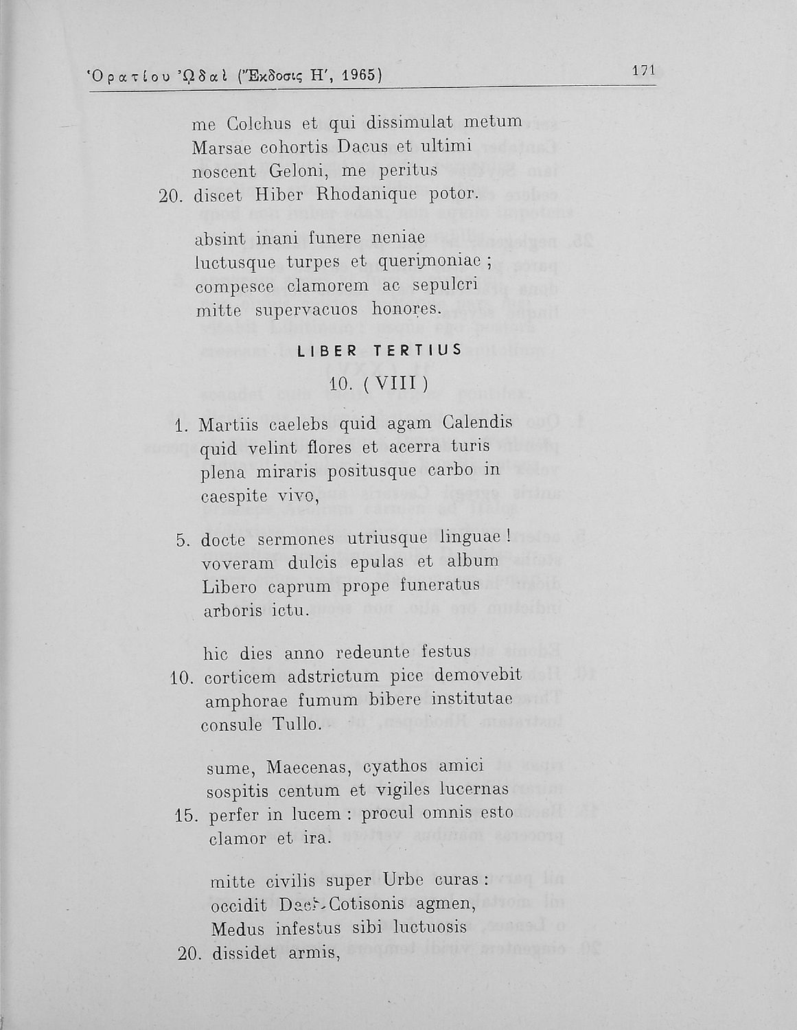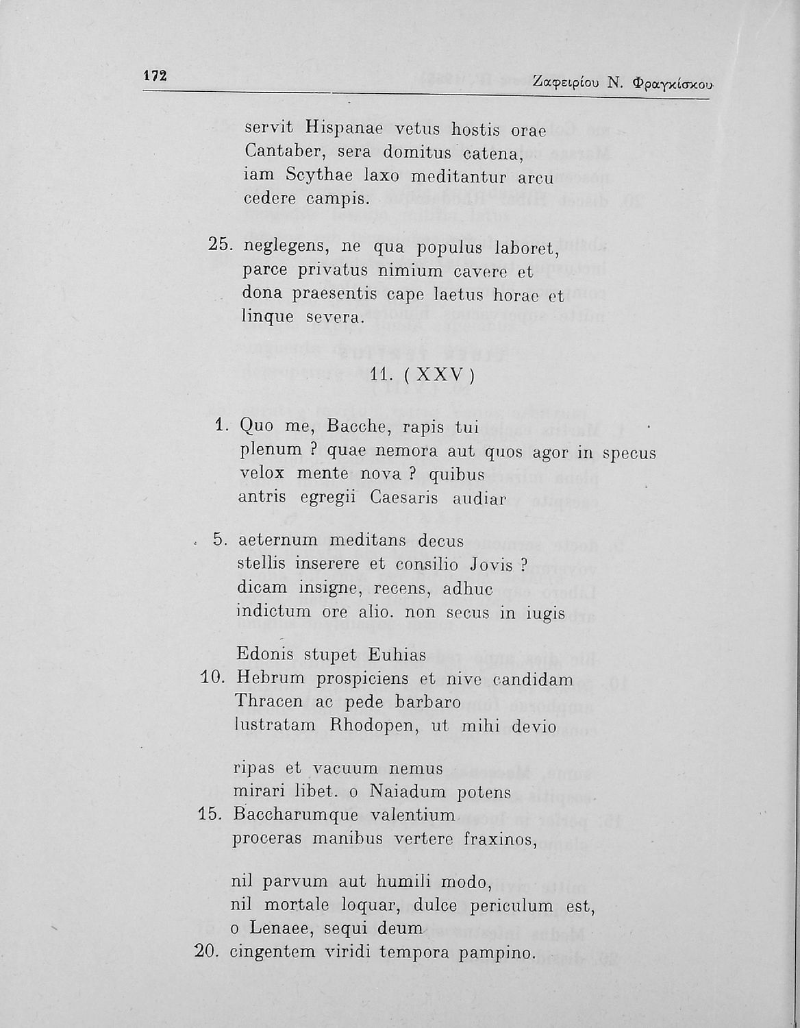 Πόπλιος Βιργίλιος Μάρων (P. Vergilius Maro), Μάρκος Τύλλιος Κικέρωνας (Marcus Tullius Ciceco), Κουίντος Οράτιος Φλάκκος (Q. Horati Flacci), Φωκίωνας Β. Βουσβούνης, Ερρίκος Σκάσσης, Ζαφείριος Ν. Φραγκίσκος (σχόλια)